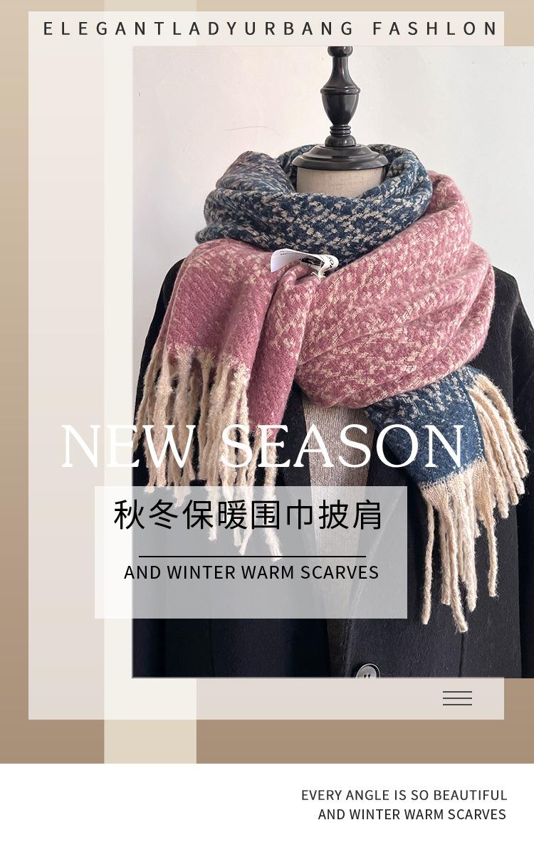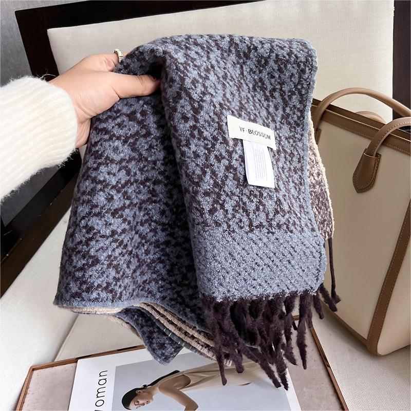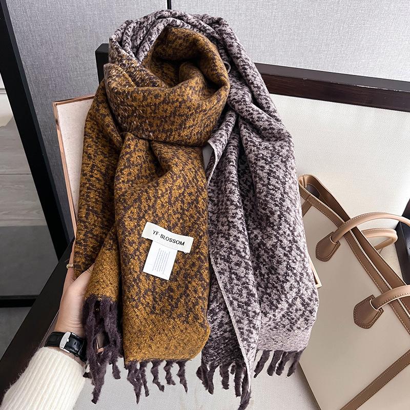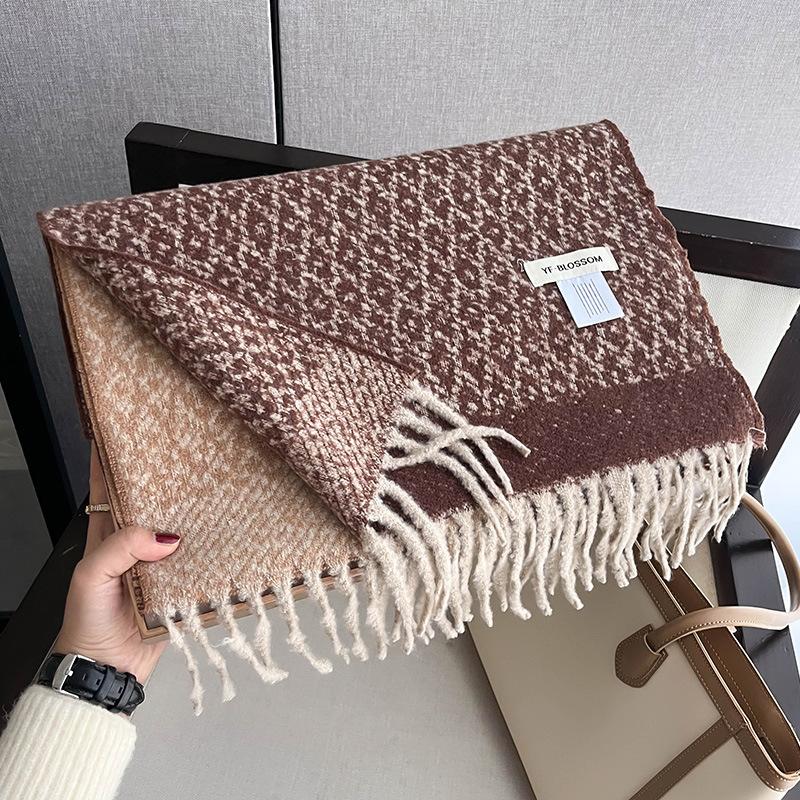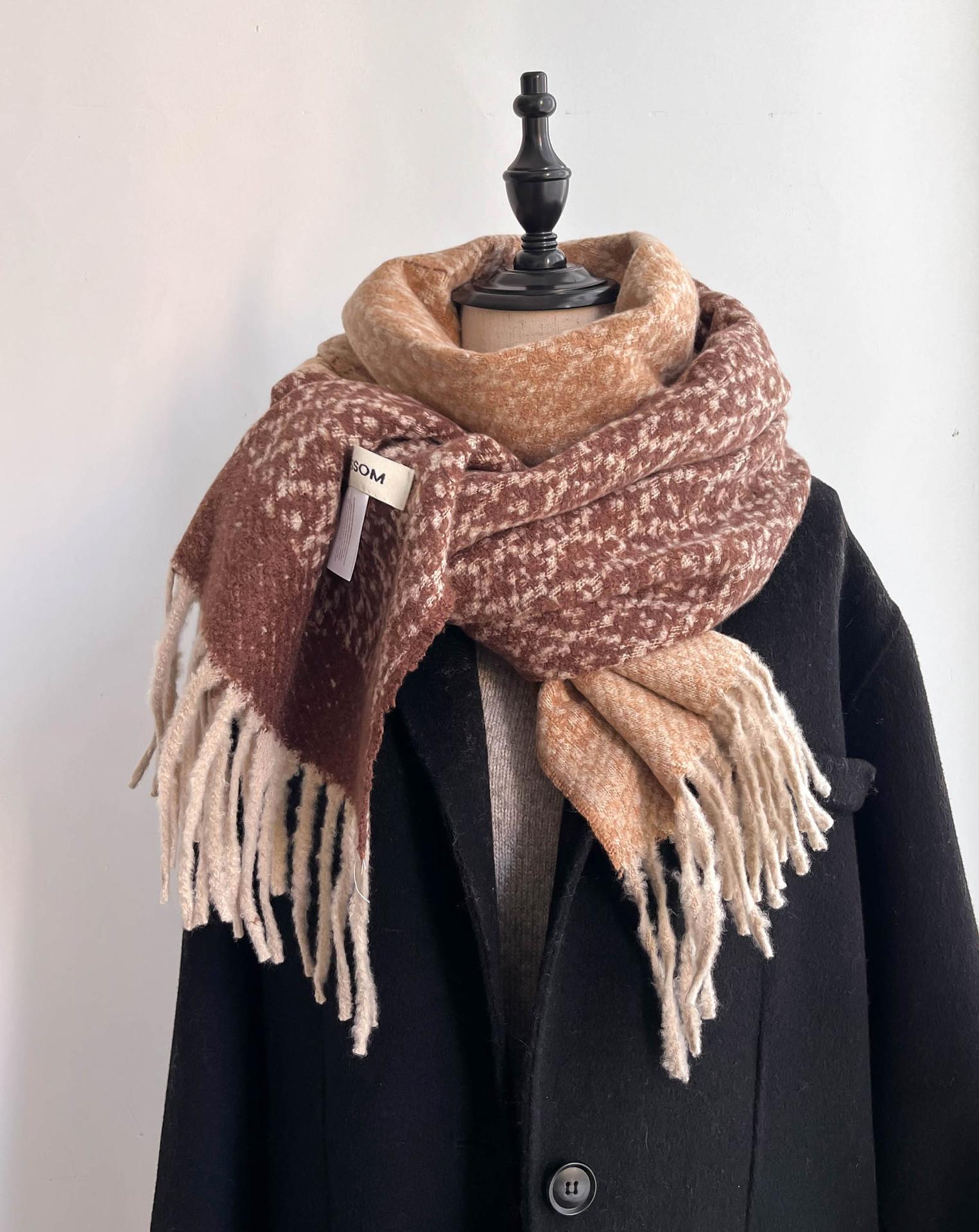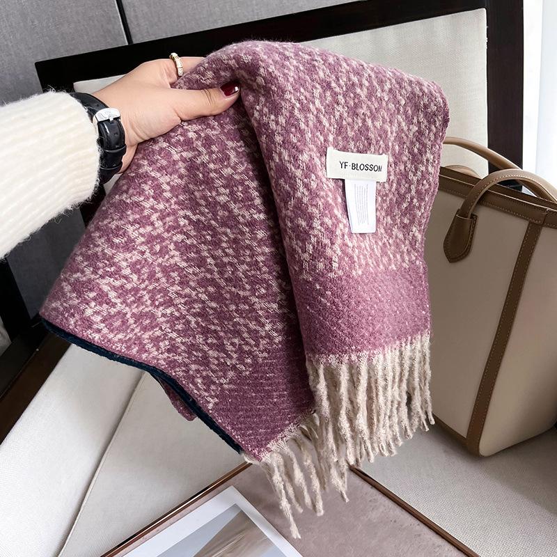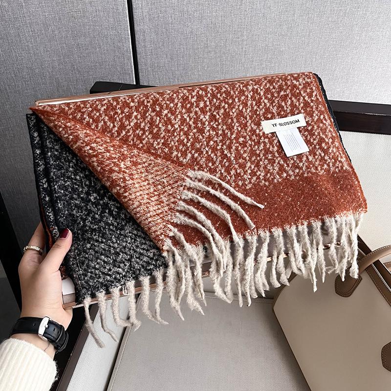 Bufanda de cachemir con copos de nieve de color contrastante, estilo coreano 2023, para mujer, de invierno, gruesa, de color gradual, para hombre