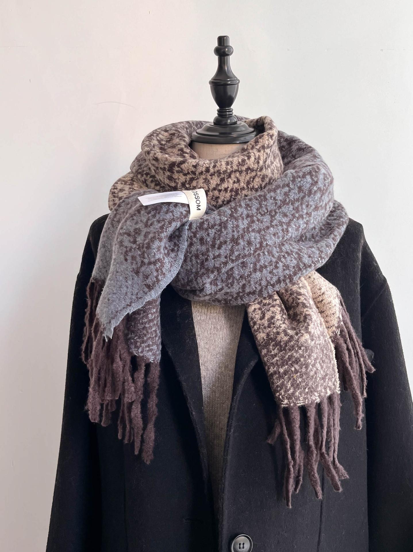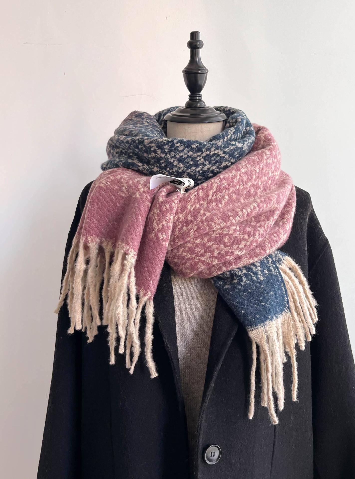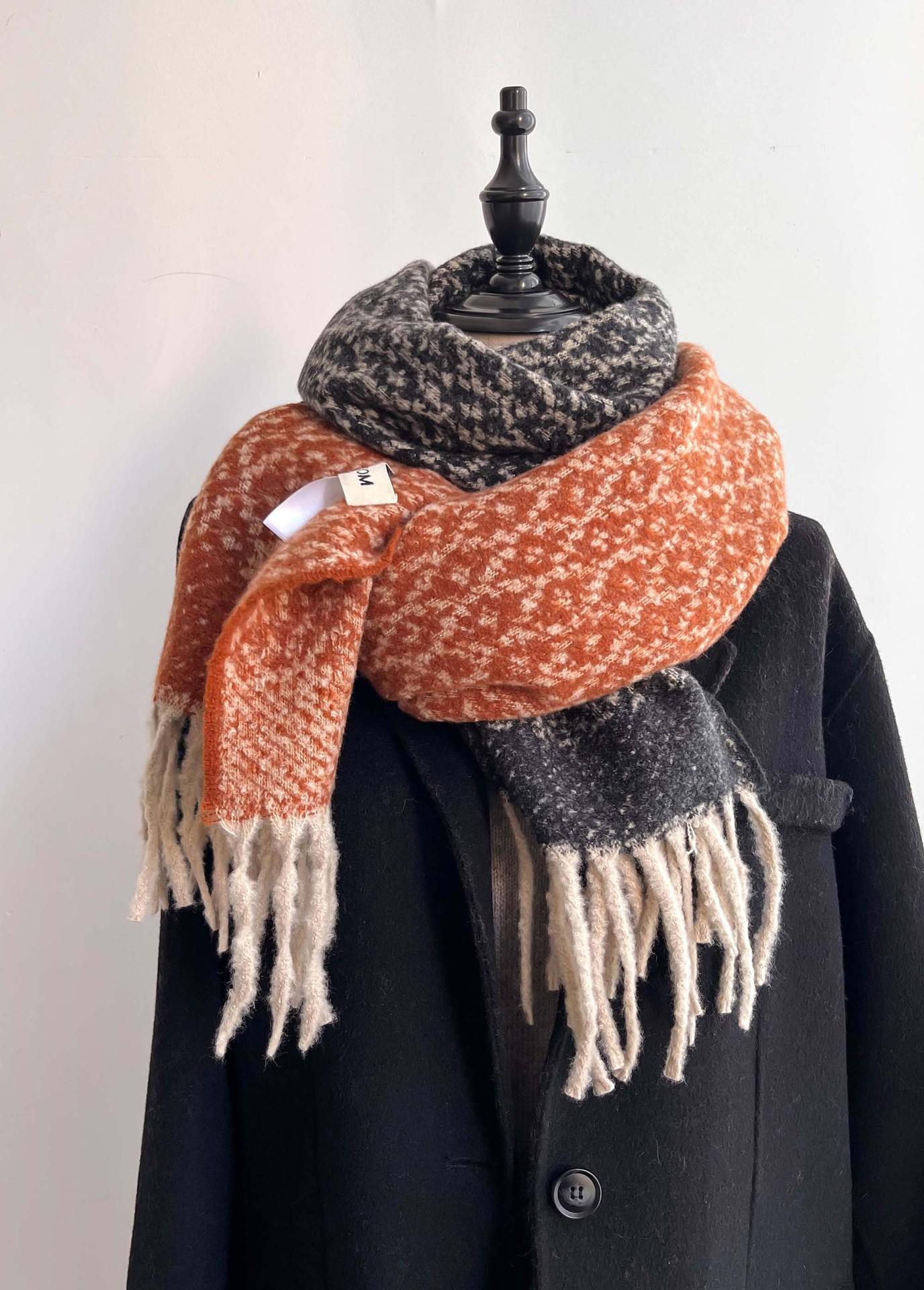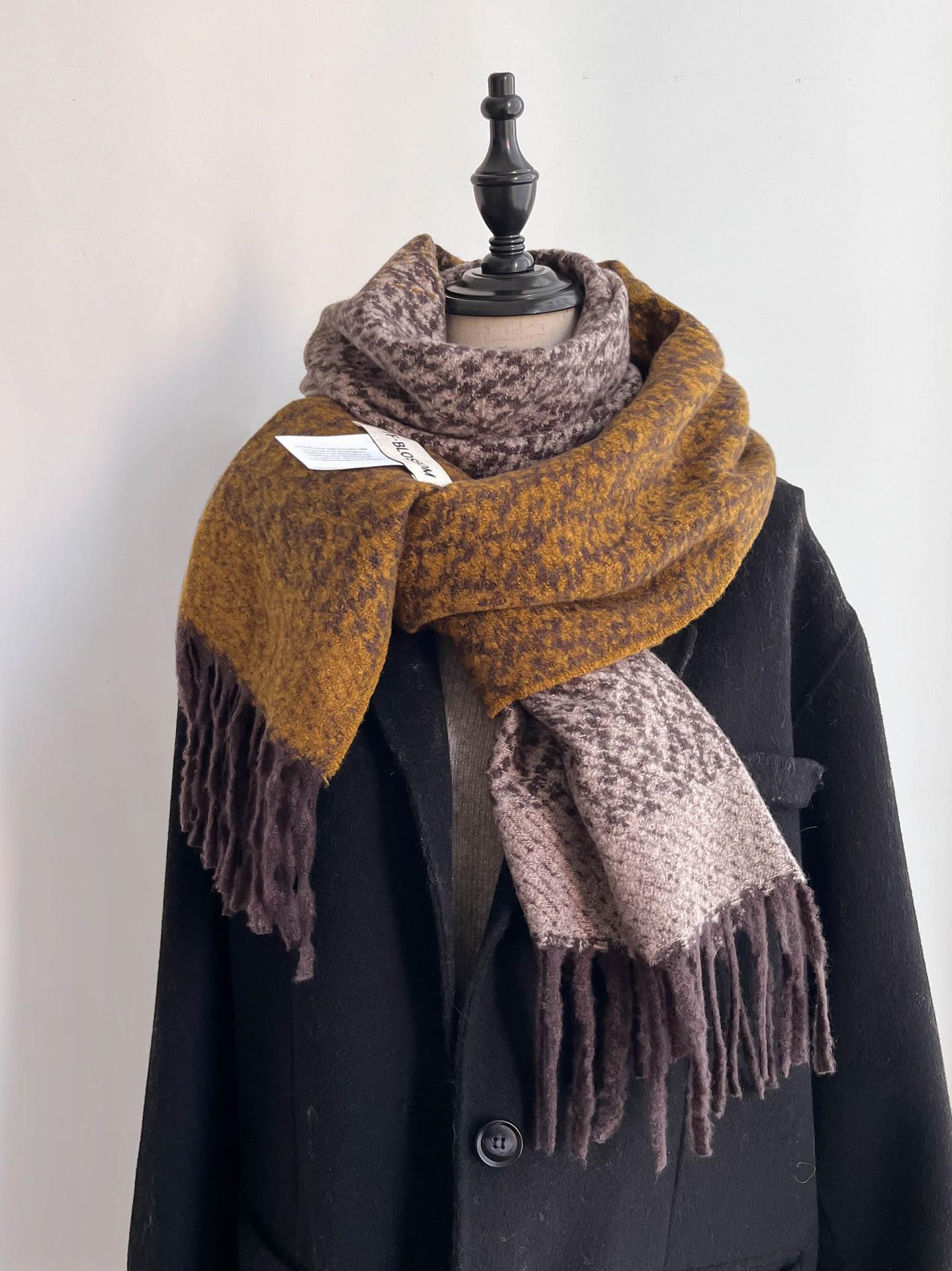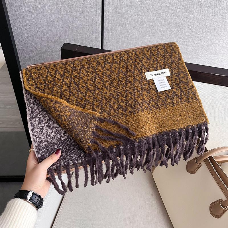 Bufanda de cachemir con copos de nieve de color contrastante, estilo coreano 2023, para mujer, de invierno, gruesa, de color gradual, para hombre
