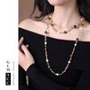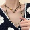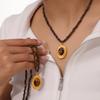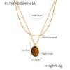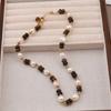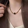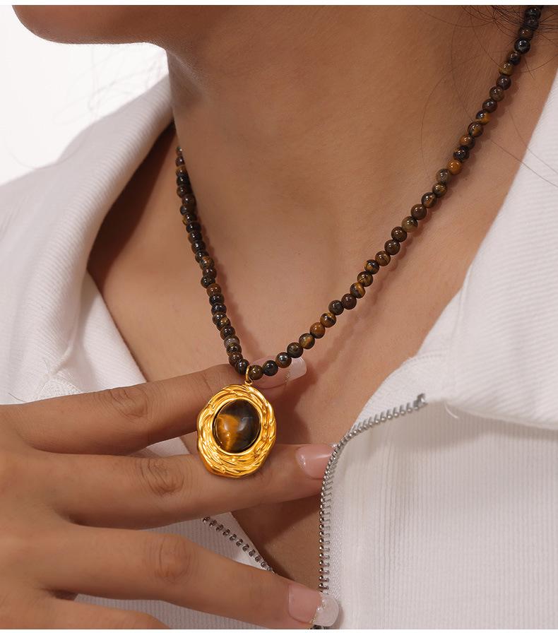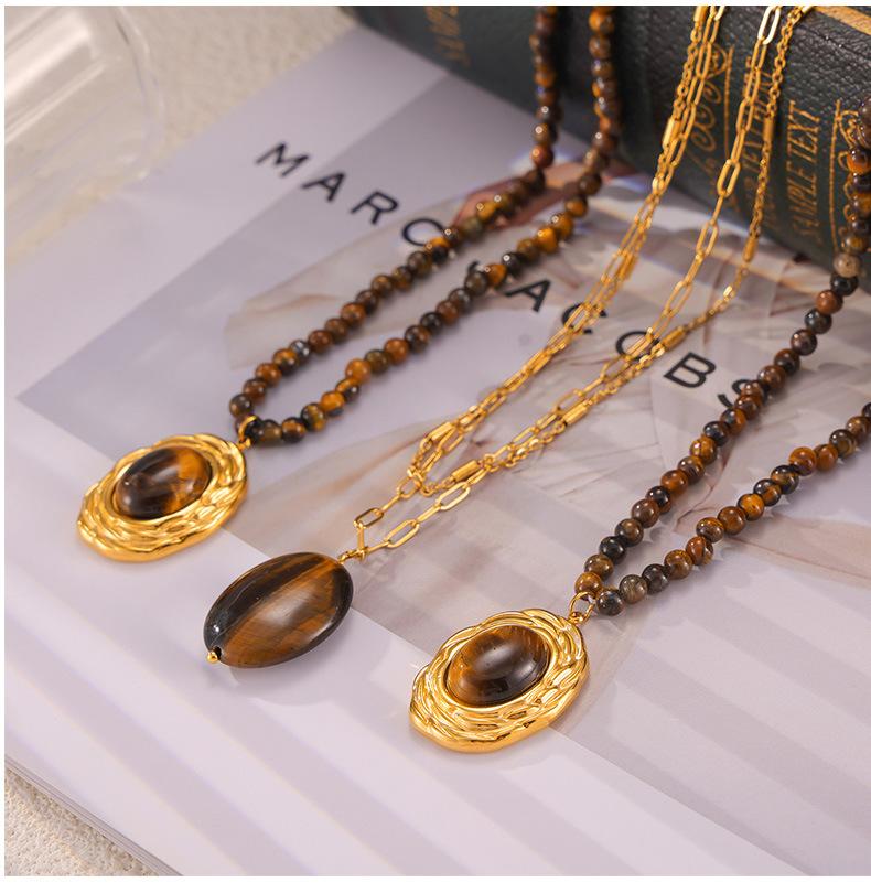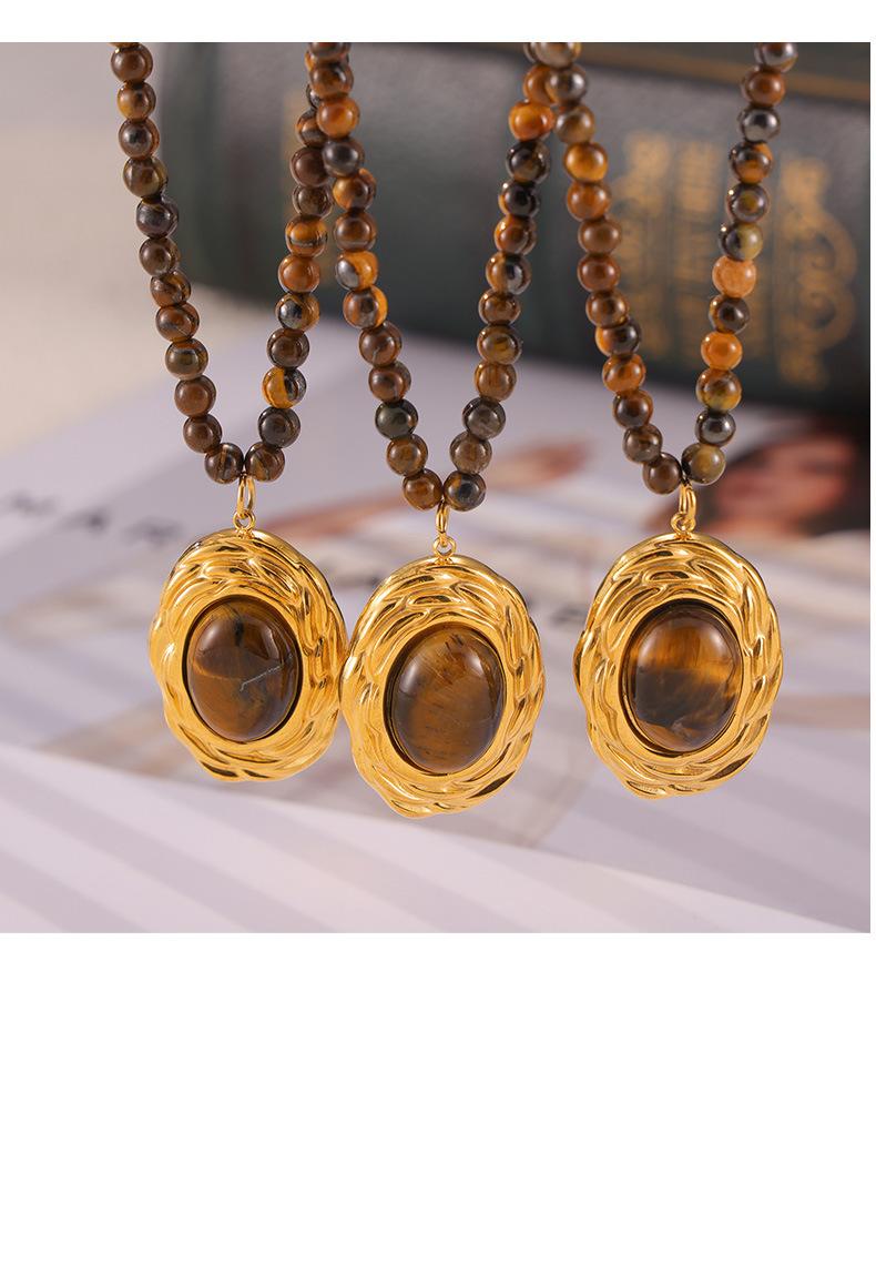 Collar de acero de titanio chapado en oro con diseño geométrico de cuentas y personalidad elegante de ojo de tigre estilo Maillard vintage.