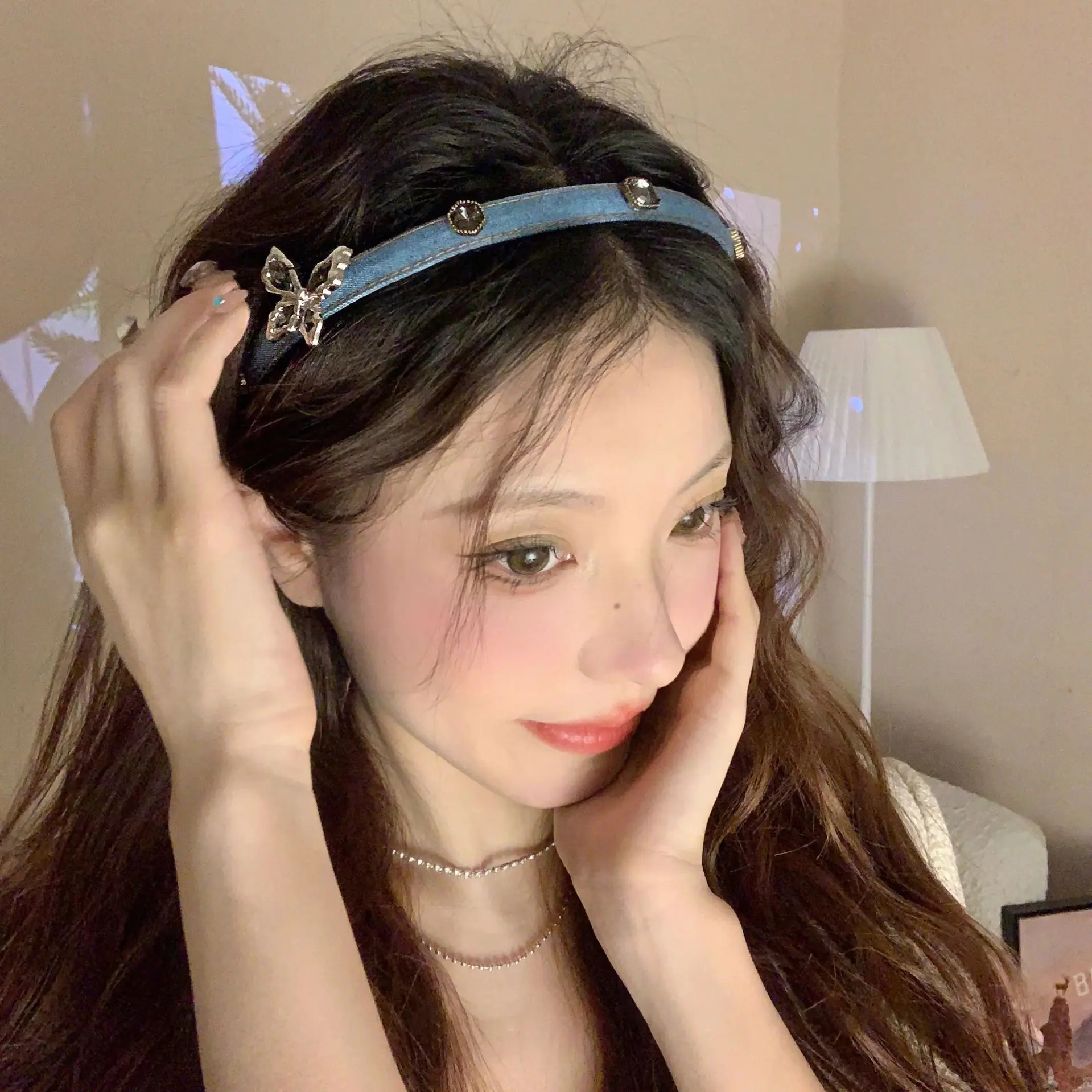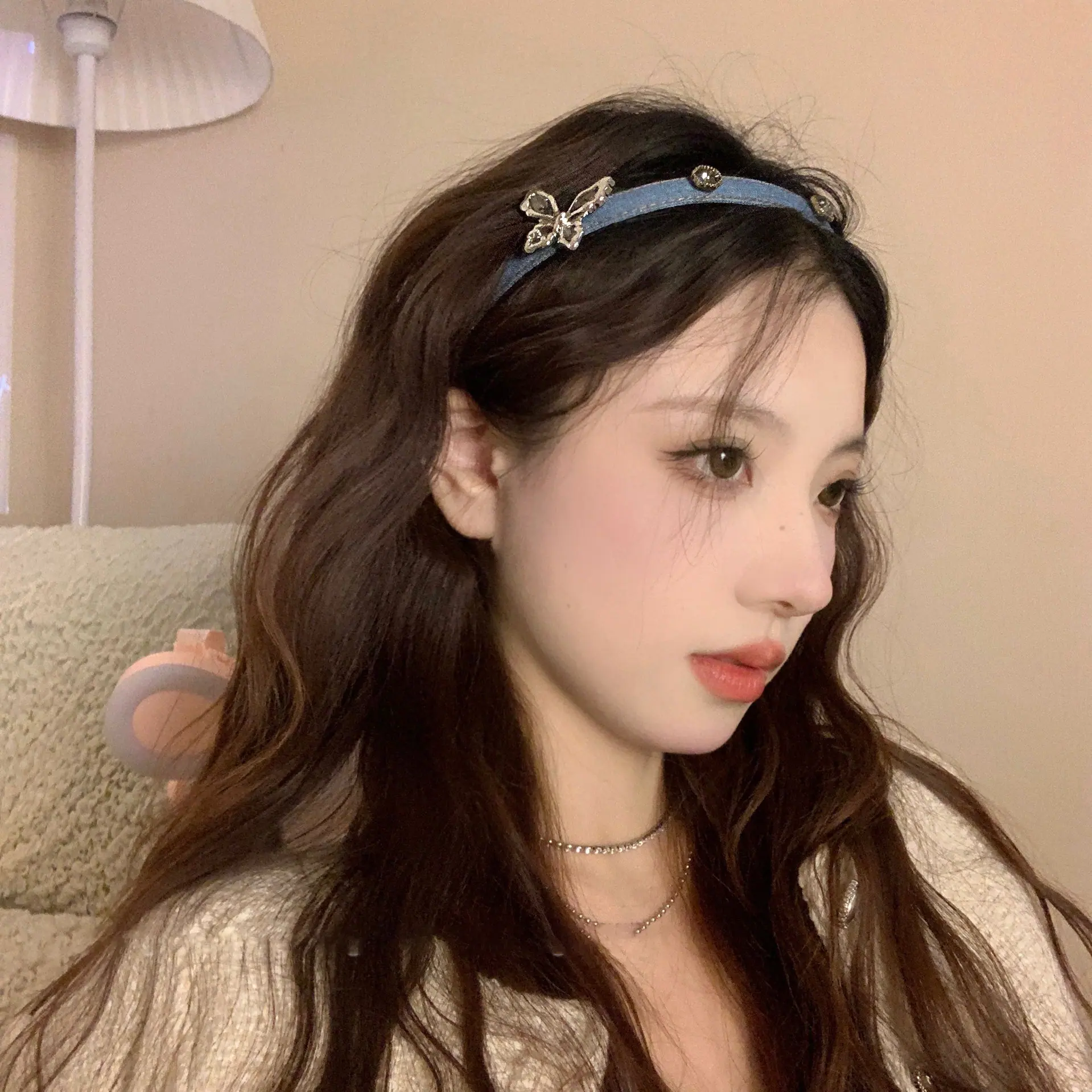 Rhinestone leaf headband, Silver butterfly, Blue rhinestone butterfly