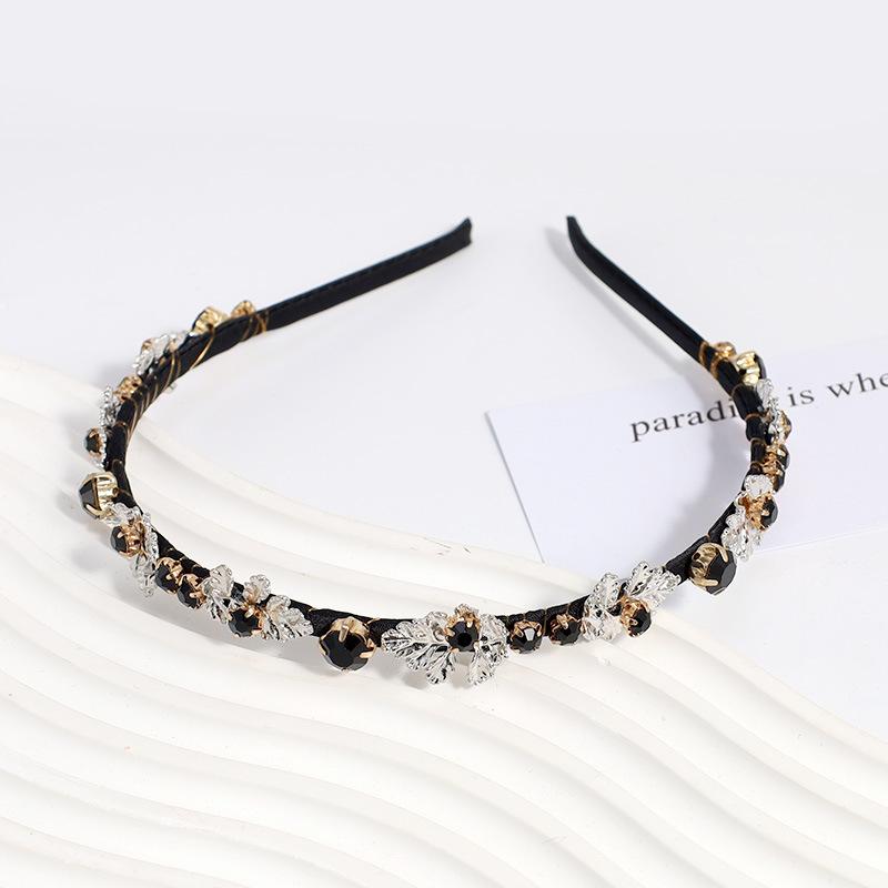Compra Diadema con flores y diamantes de imitación transfronterizos de Europa y América, elegante diadema con hojas de metal, accesorios para el cabello barrocos sencillos y combinables al por mayor en Joom.pro