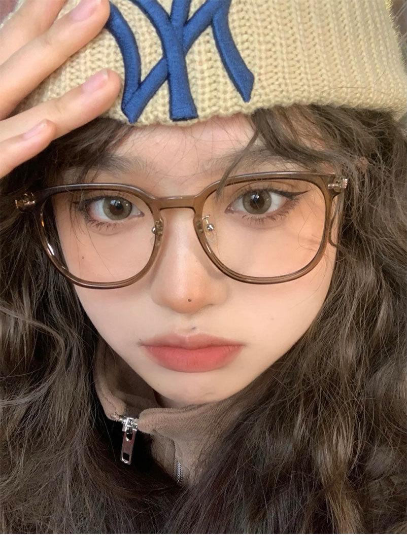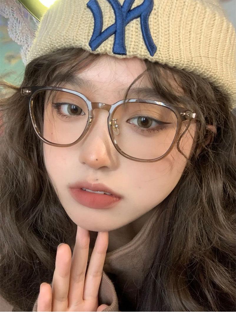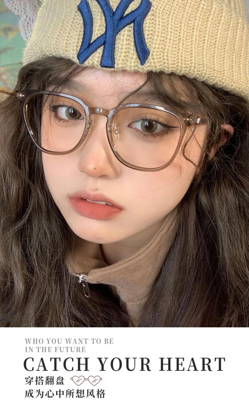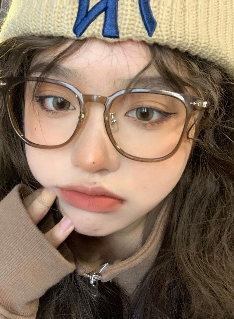 Lentes marrones fríos miopía para mujer montura grande cara redonda celebridad de internet artefacto de belleza sencilla luz anti-azul se pueden graduar armazón de ojos