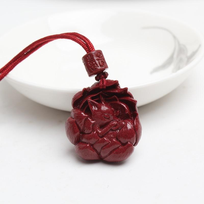 Colgante de zorro de nueve colas con cinabrio, venta al por mayor, nuevo mineral crudo, alto contenido de oro púrpura, arena, colgante de zorro de nueve colas, collar, joyería