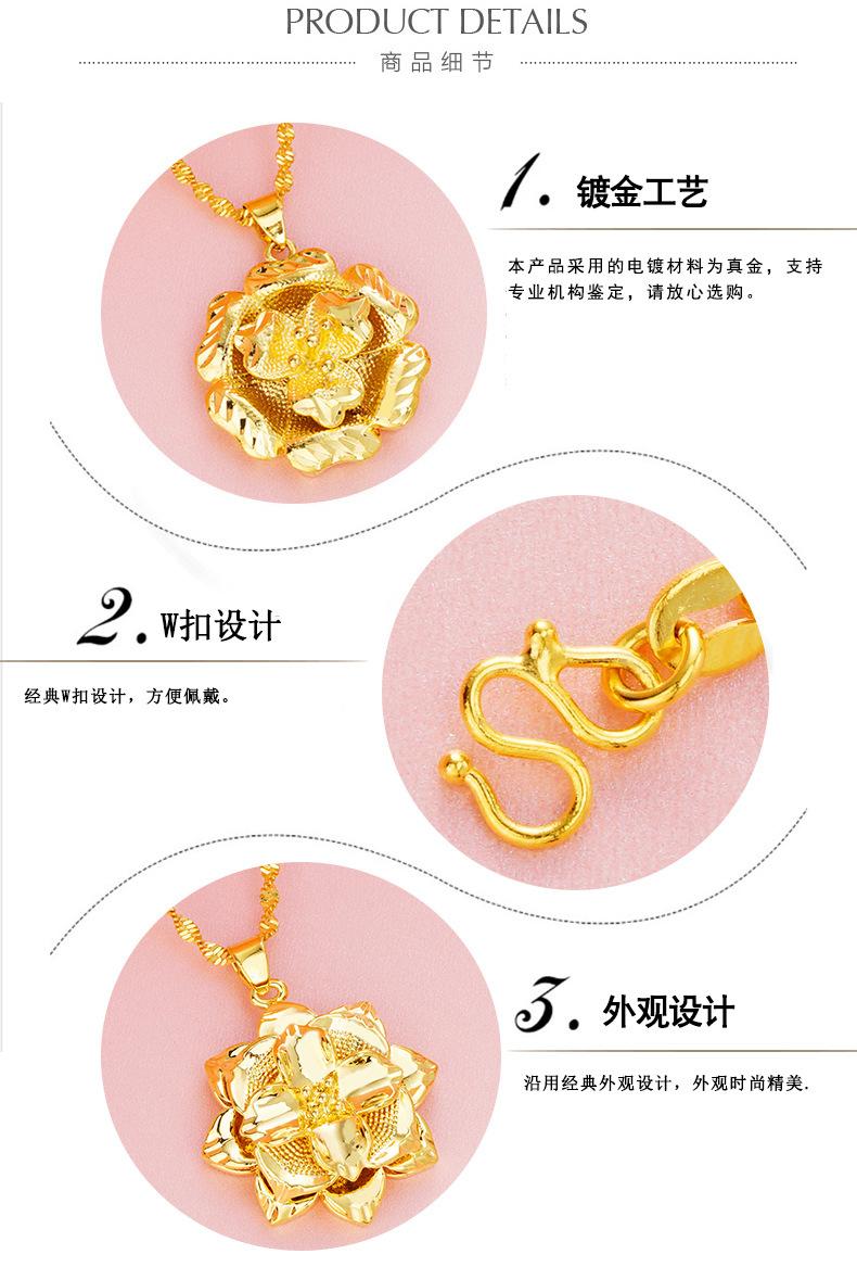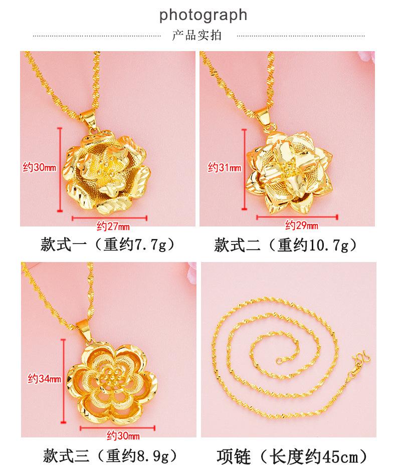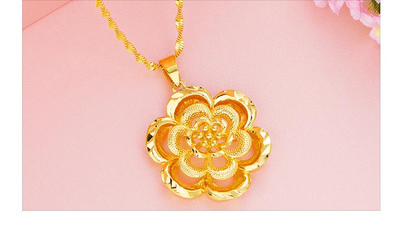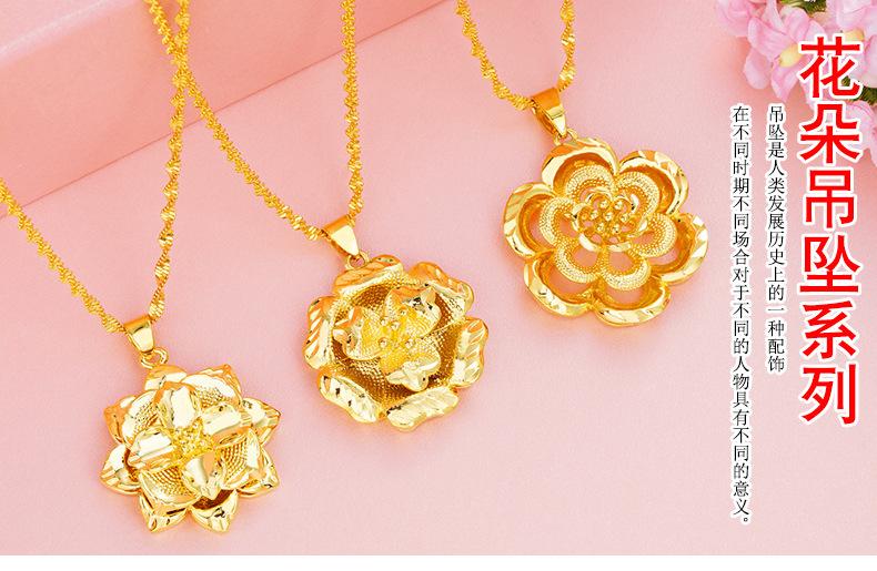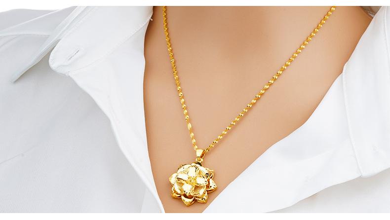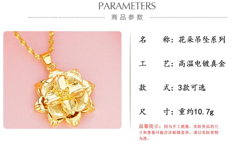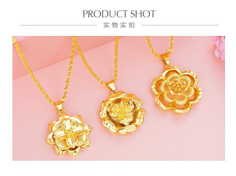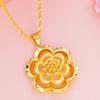 Collar con colgante de flor grande de oro de 24k chapado en oro de Vietnam, oro duro 3D, collar con colgante de flor multicapa, chapado al vacío en oro real