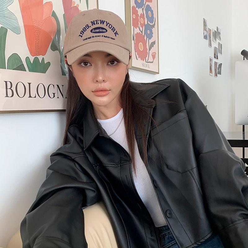 Gorra de béisbol pequeña con letras retro de diseñador japonés, estilo coreano, con cara roja, para internet, para otoño