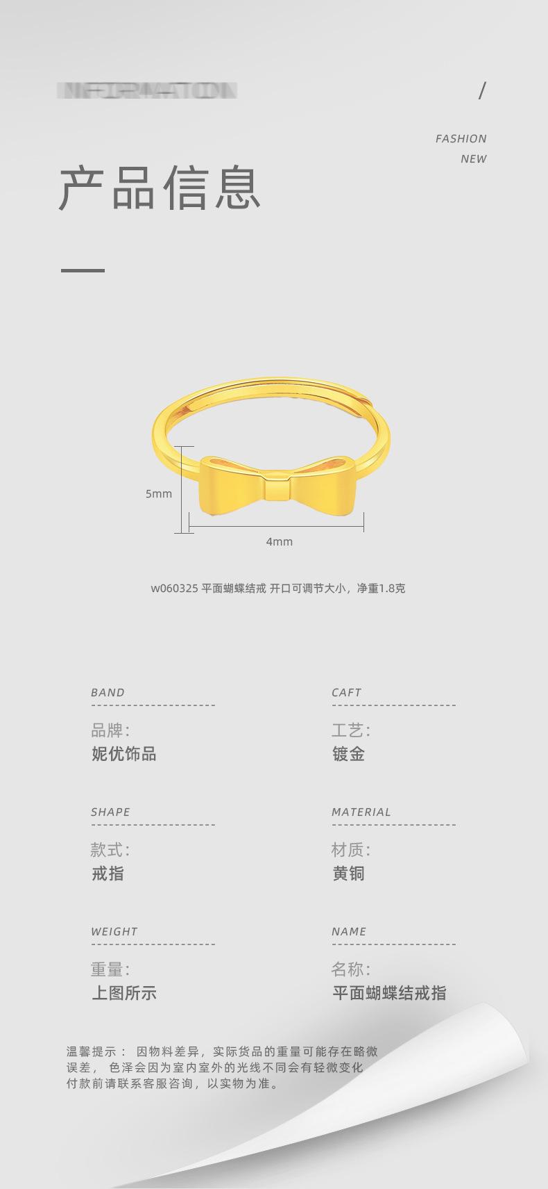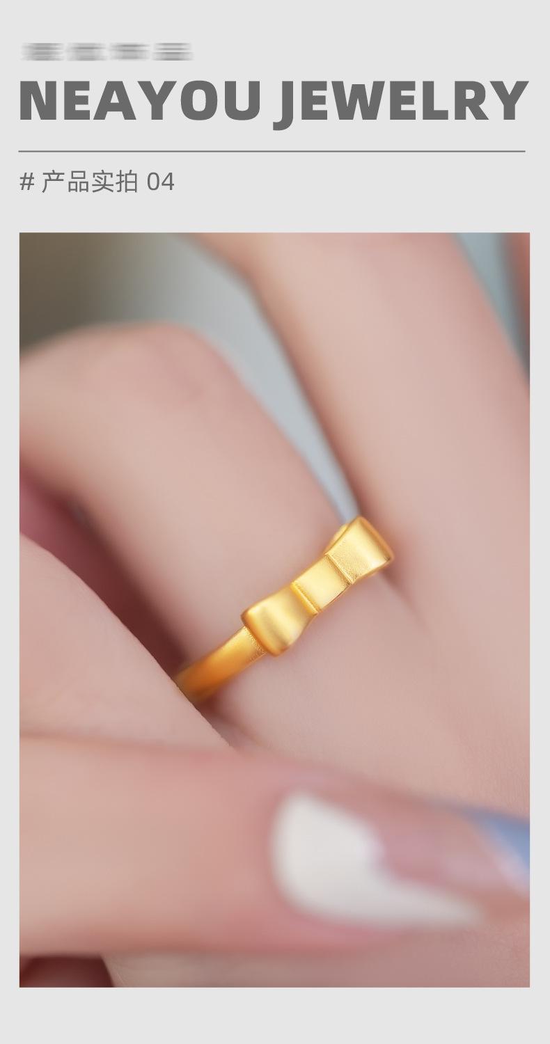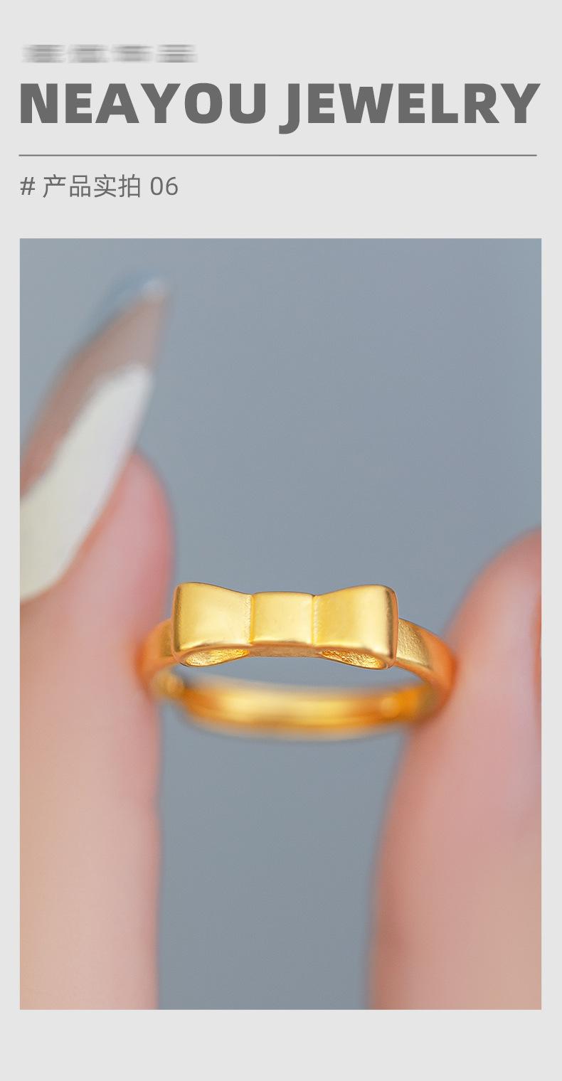 Anillo de moño dulce simple de alta gama Zhou Jia mismo estilo oro arena mate celebridad de internet mariposa anillo abierto