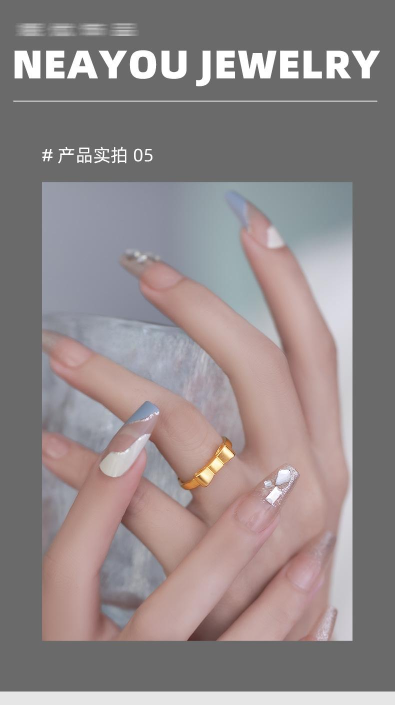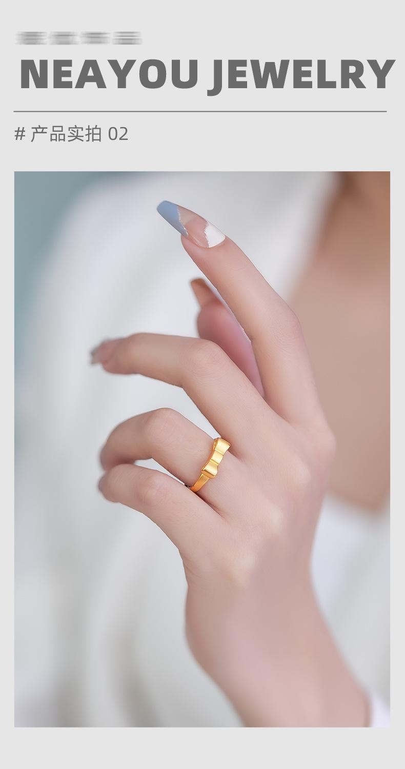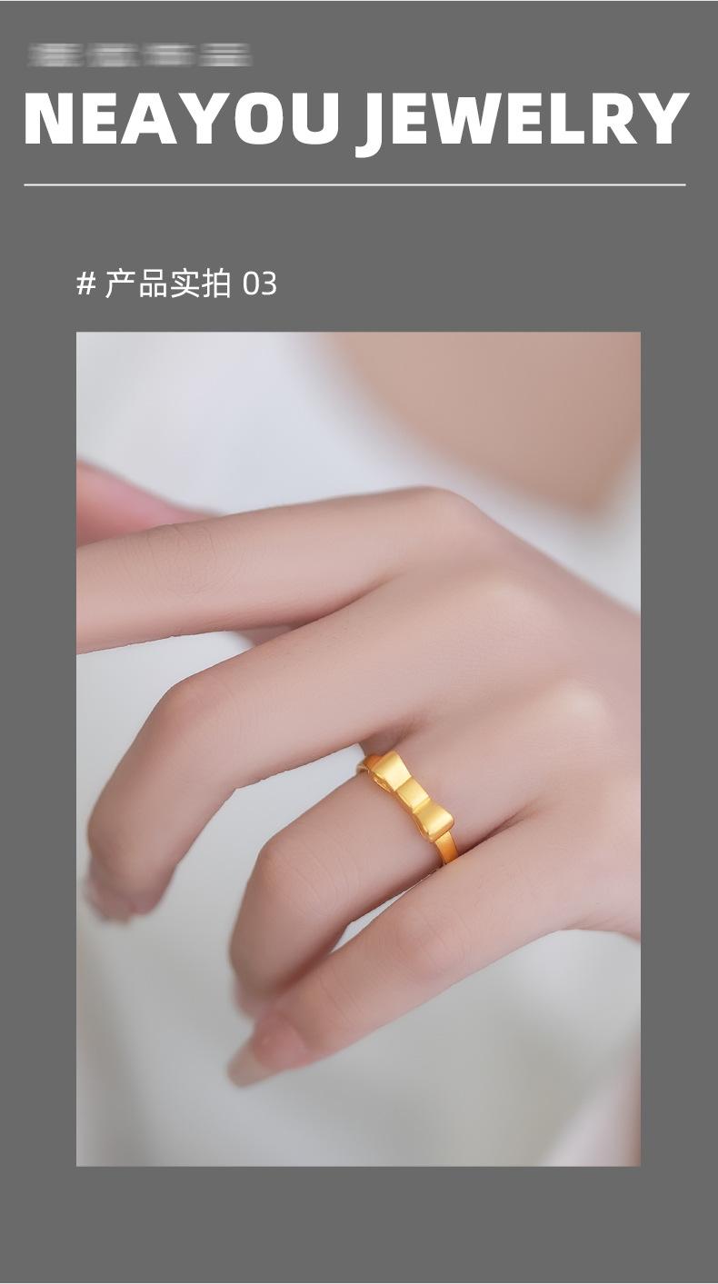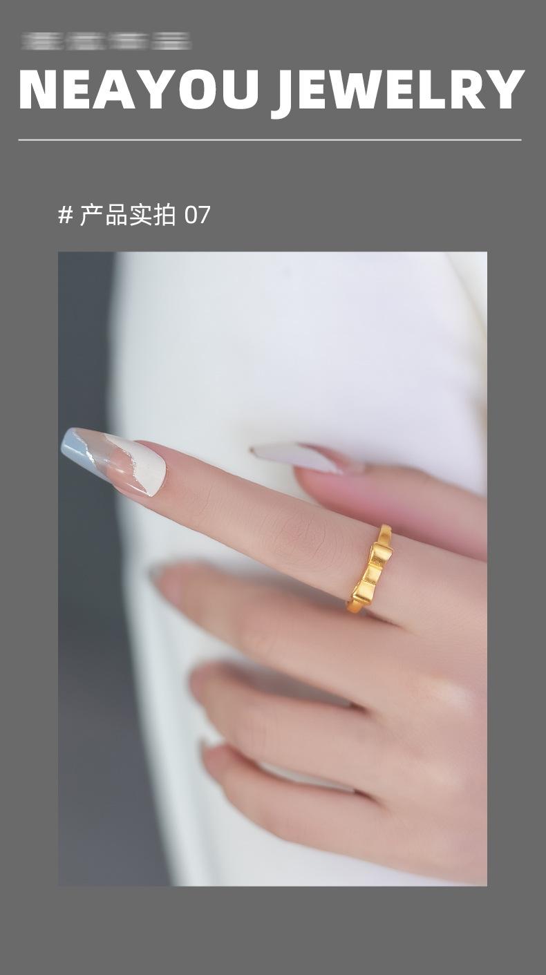 Anillo de moño dulce simple de alta gama Zhou Jia mismo estilo oro arena mate celebridad de internet mariposa anillo abierto
