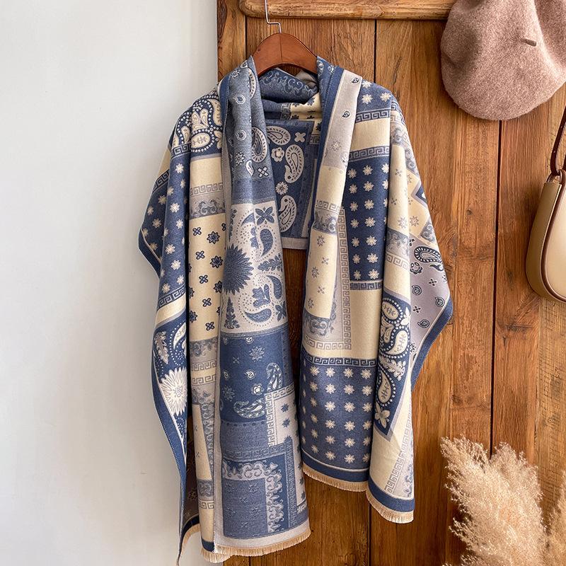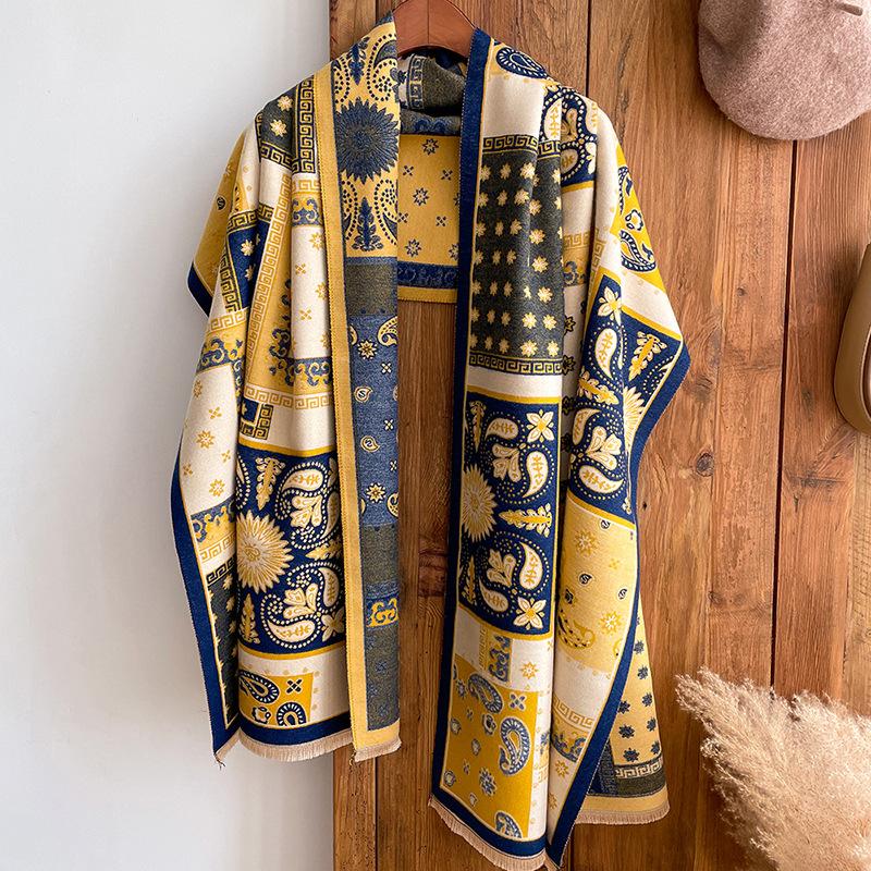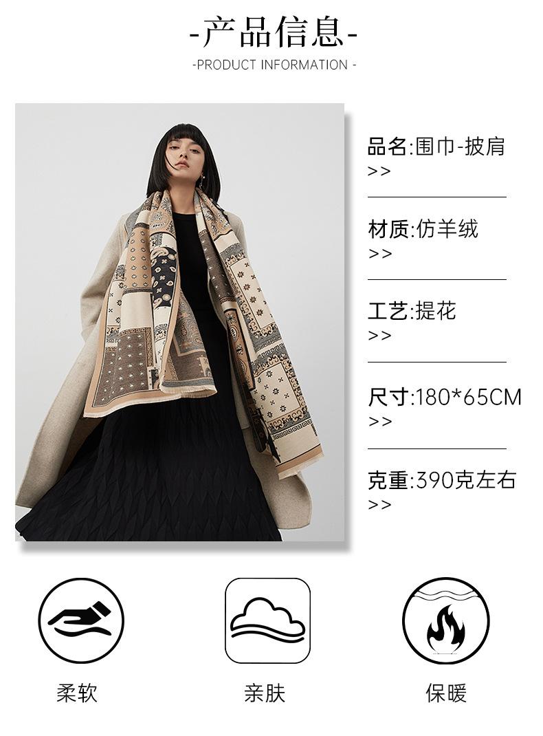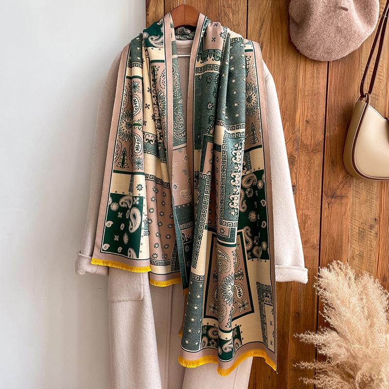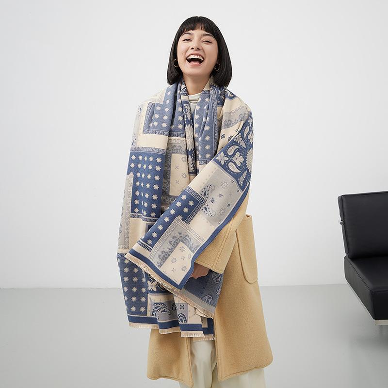 Bufanda de cachemira a cuadros para mujer, nueva bufanda de jacquard gruesa con letras cálidas para otoño e invierno, combina con todo.