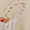 Nueva diadema de flores de perla de Corea del Sur, súper hada Mori, versátil, elegante, dulce y linda, accesorios para el cabello de tela, tocado.
