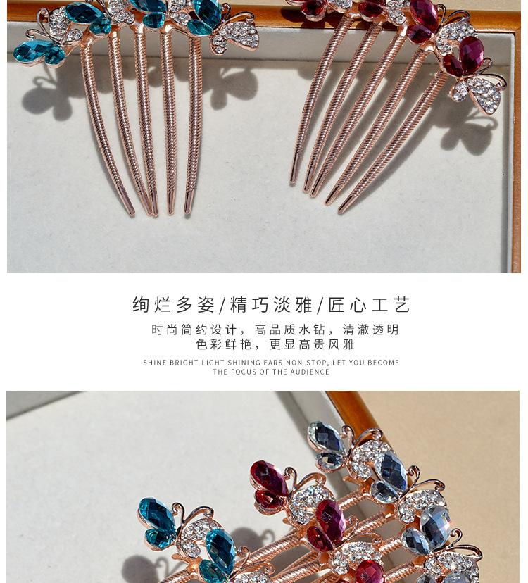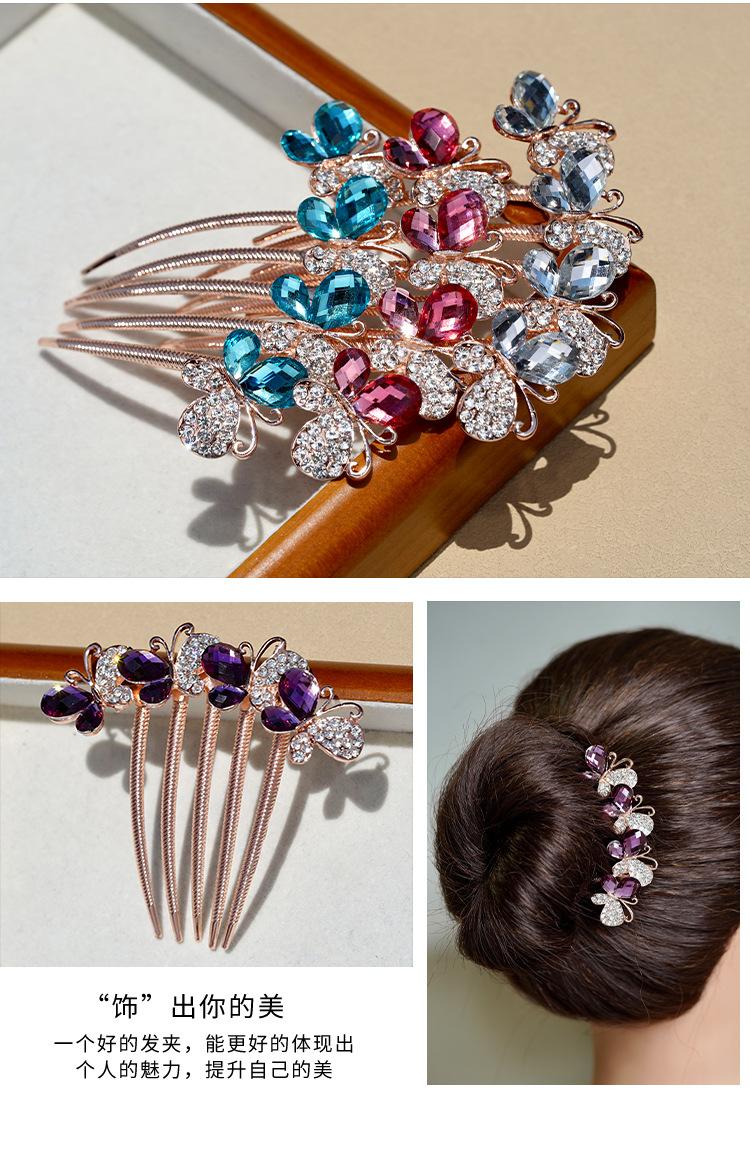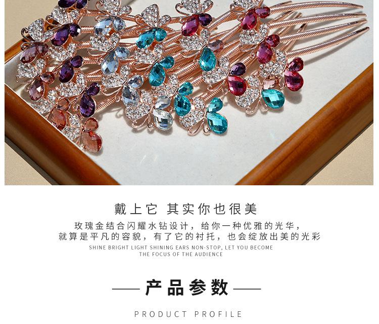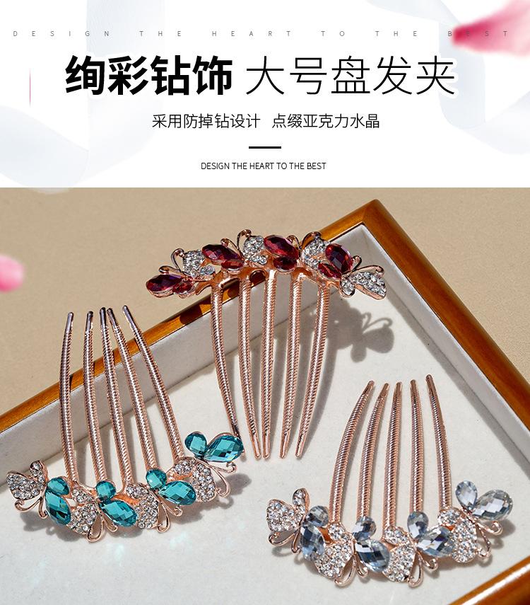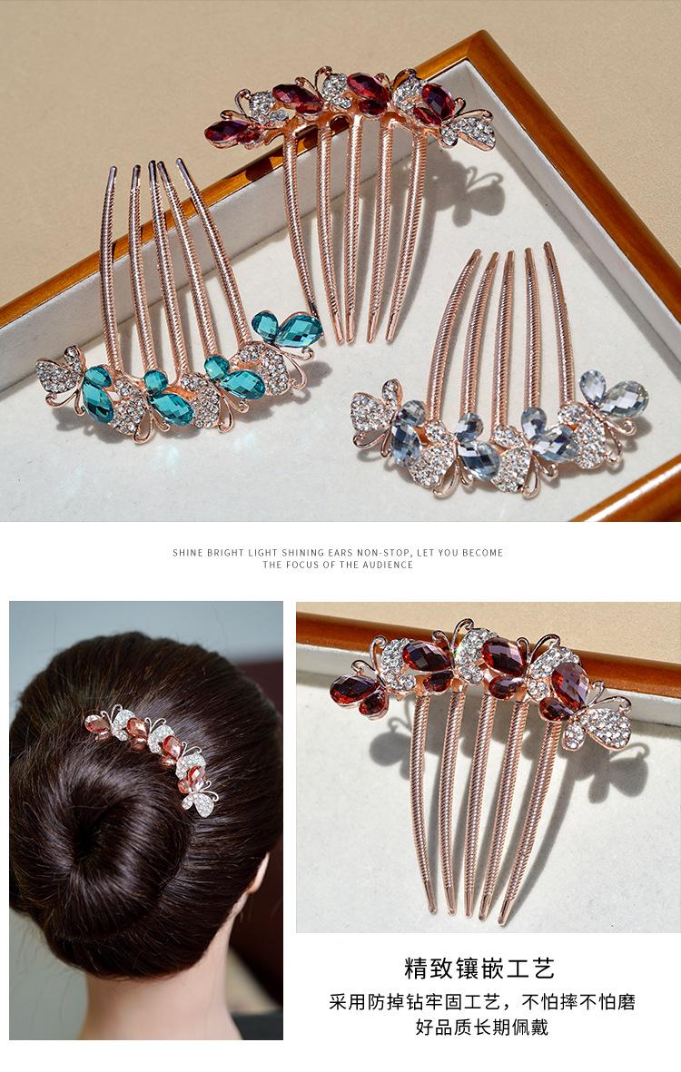 Accesorios para el cabello, peineta de mariposa con diamantes de imitación, horquilla para el cabello de novia, tiara para boda, joyería de aleación, peineta con cabeza esférica para mujer.