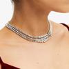 Collar largo de lentejuelas cuadradas de cristal morado multicapa con accesorios de personalidad para damas clásicas de moda transfronteriza europea y americana