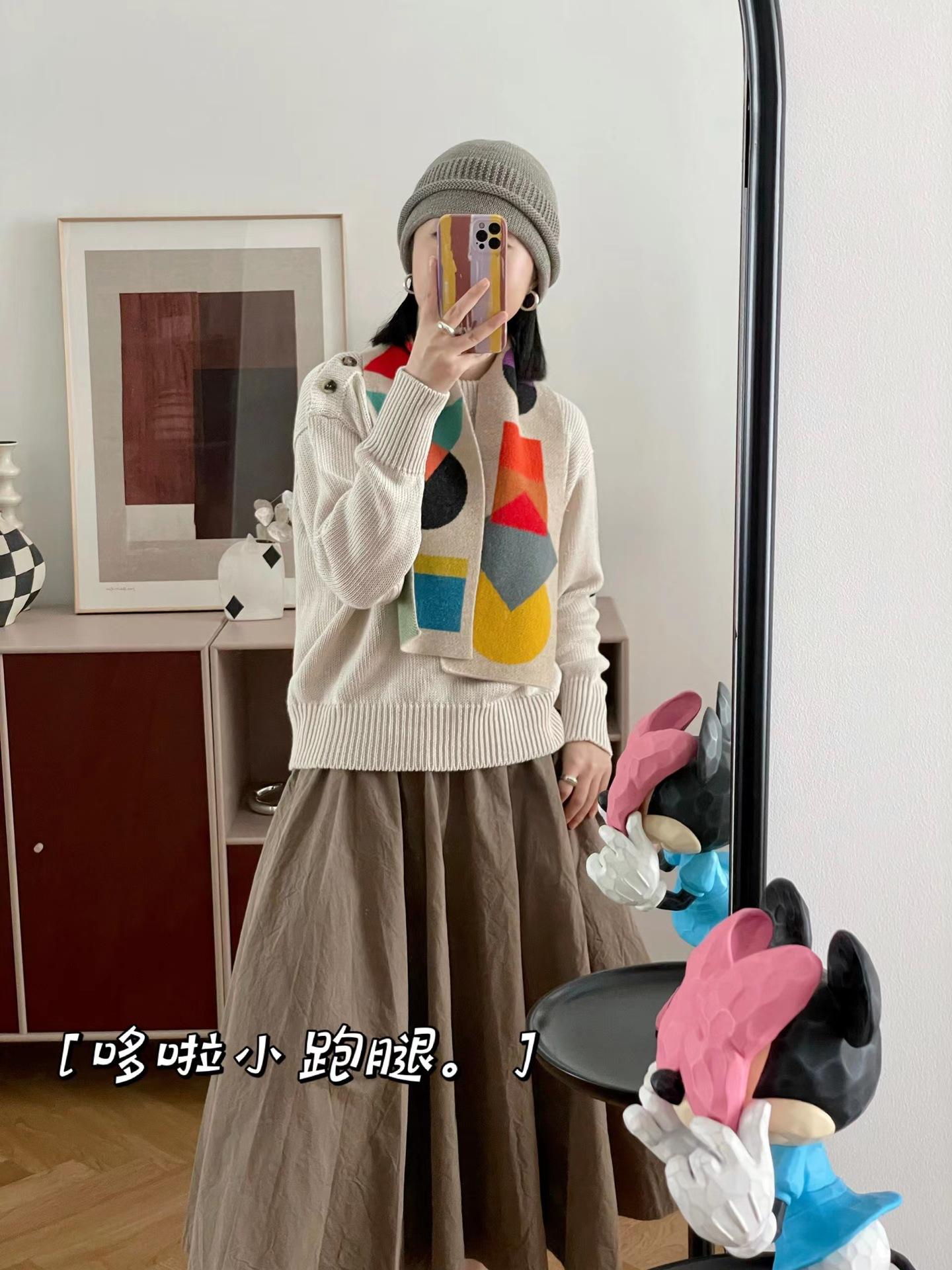 En stock Jo marca británica Dora comprando bufanda tejida tipo lana geométrica a rayas de círculo tamaño pequeño