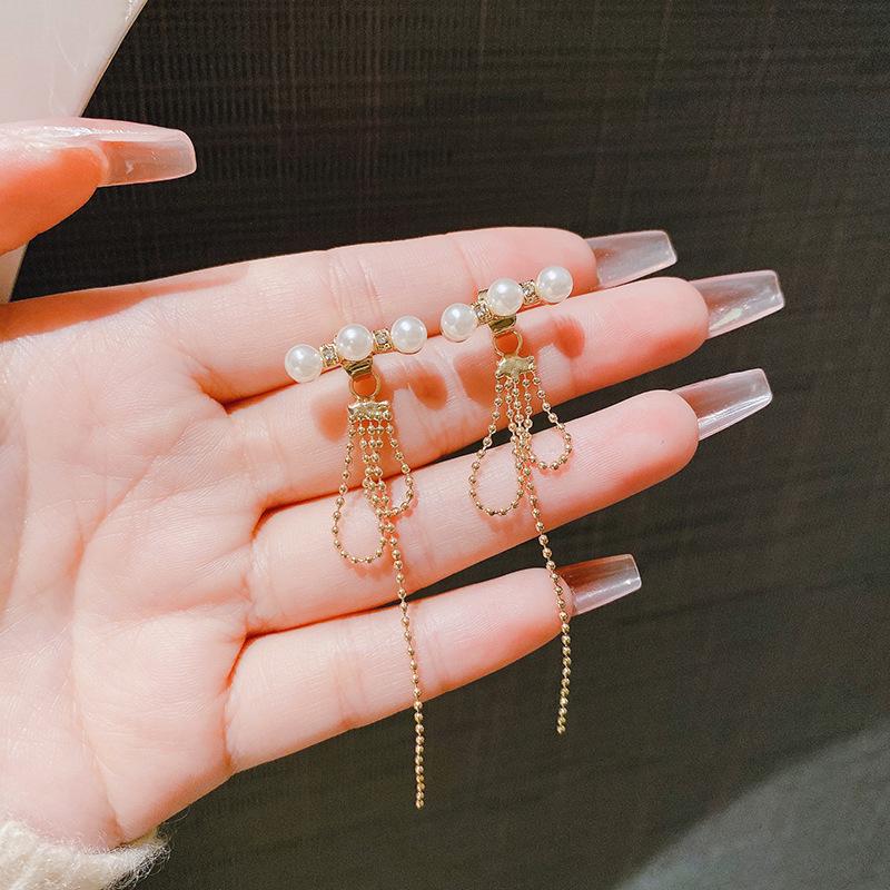 Pendientes de dos piezas con diseño de lujo y luz para mujer, elegantes, retro, largos, con borlas y perlas, versátiles.