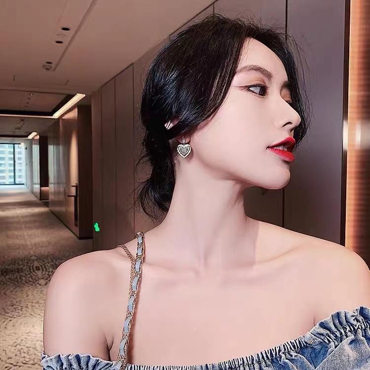 Pendientes de botón con forma de corazón de melocotón y aguja de plata 925, pendientes franceses que combinan con todo, estilo femenino, estilo nicho, personalidad de la moda 2023, nuevas joyas para las orejas.