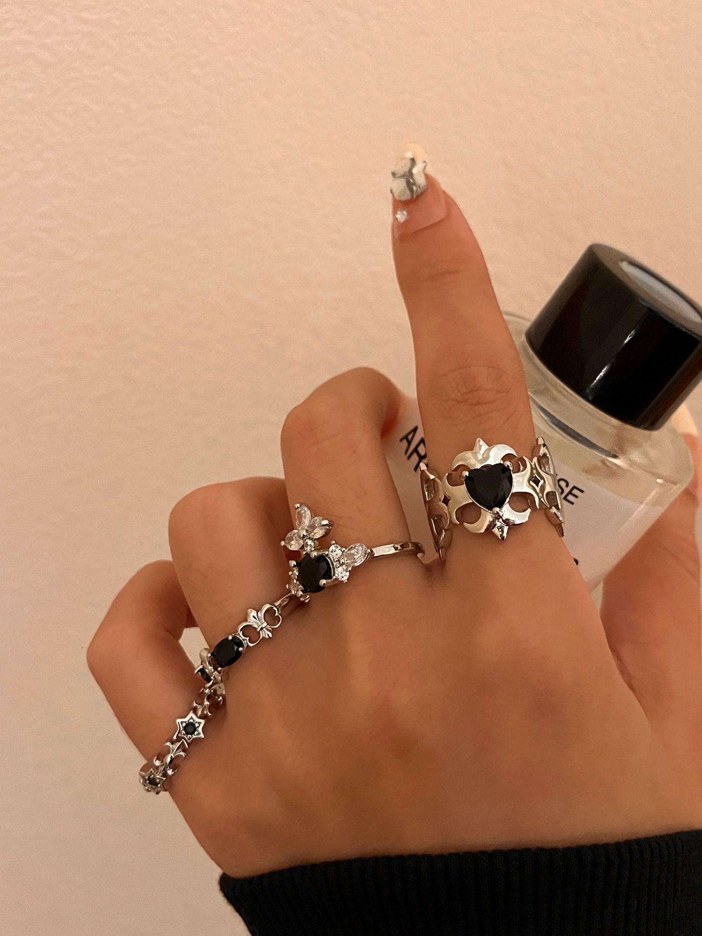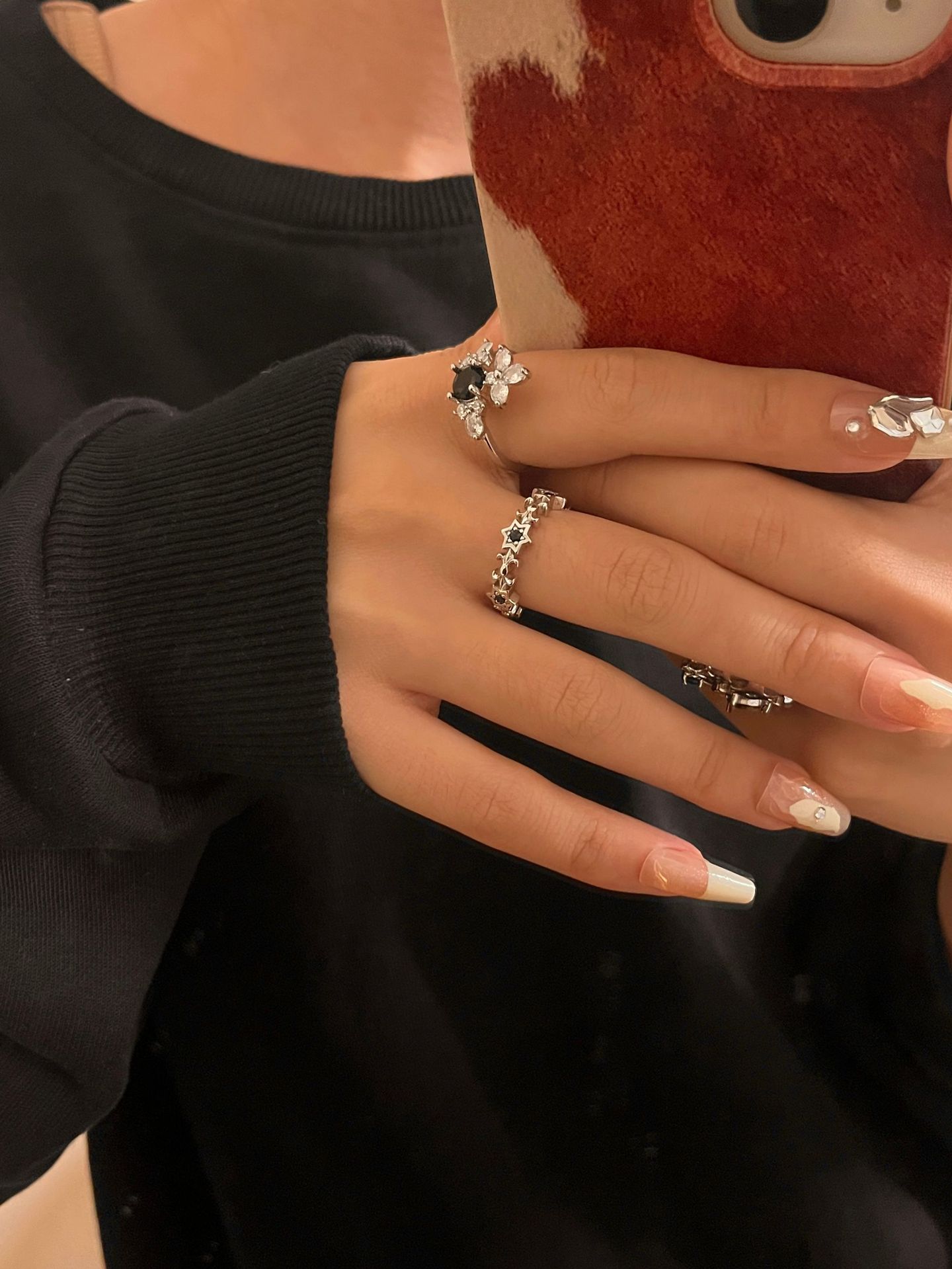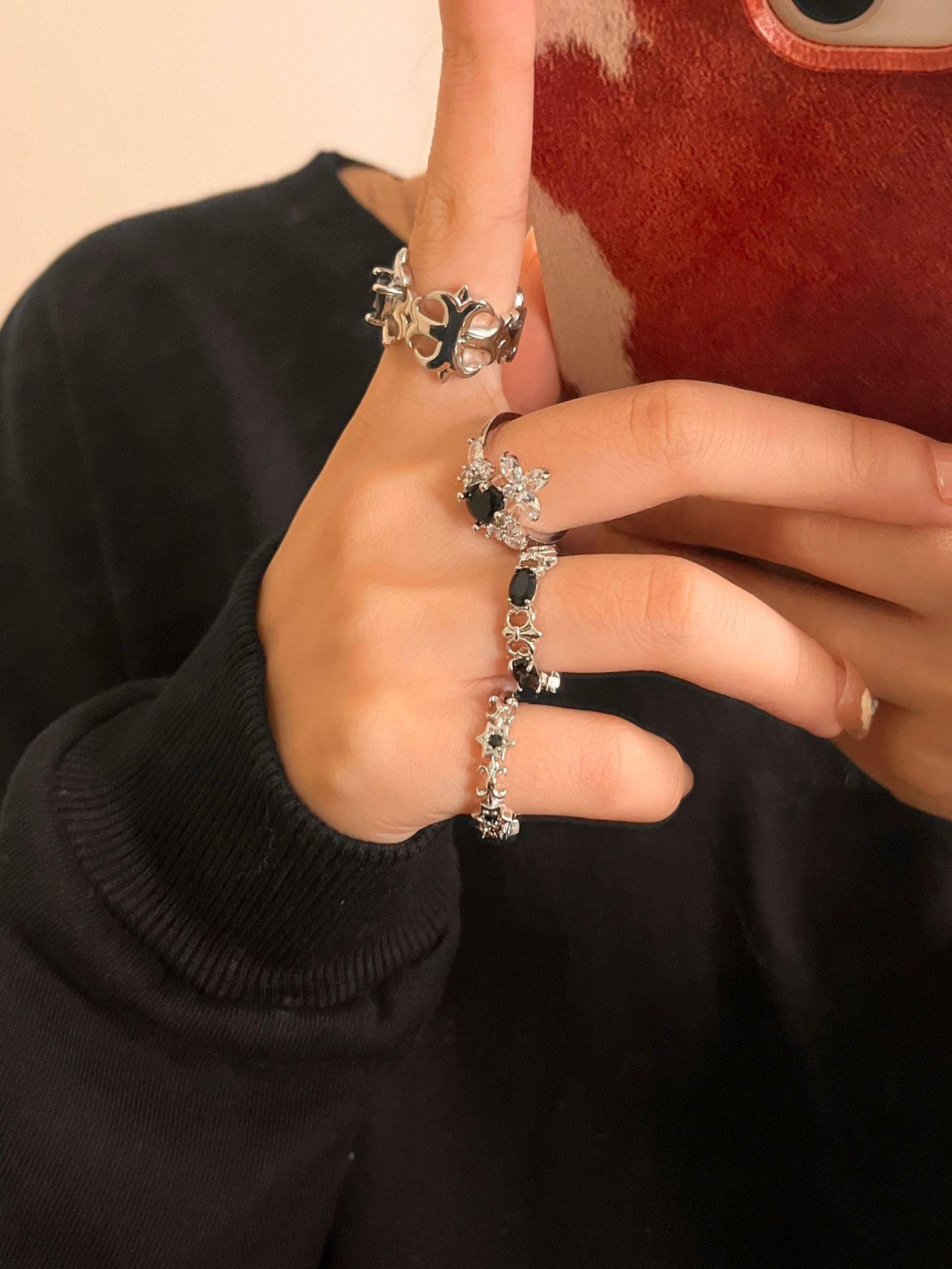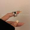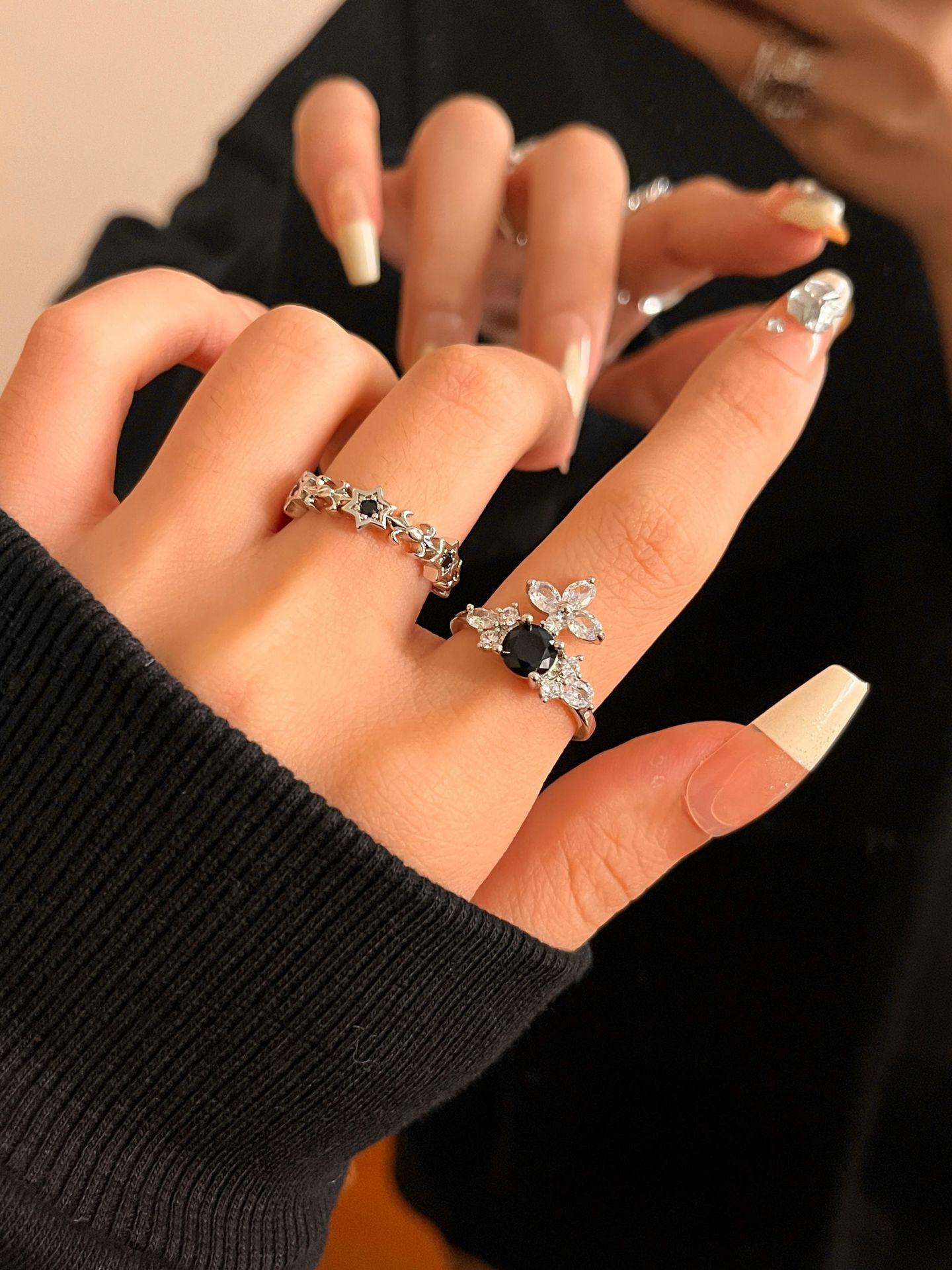 Anillo abierto con cruz chapada en oro y cobre neutro de estilo hip hop con incrustaciones de diamantes, anillo apilado de alta calidad.