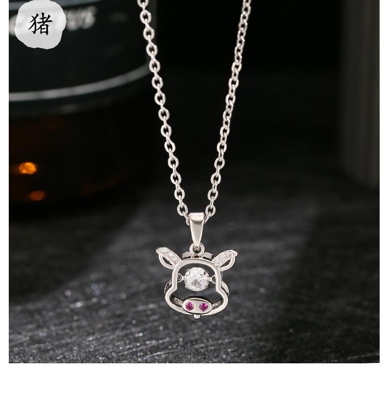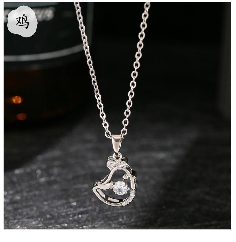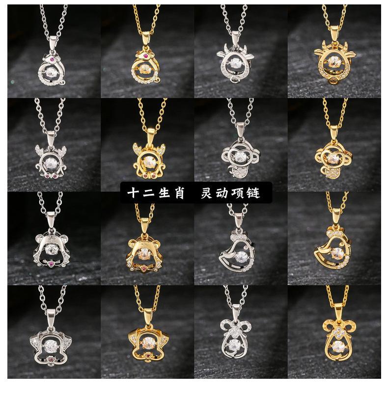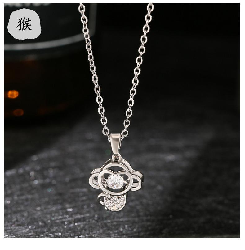 Estilo Nacional Nuevo Diseño Doce Signos del Zodíaco Collar Inteligente Femenino Animalitos Lindos Año Animal Acero Titanio Cadena Clavícula Adornos