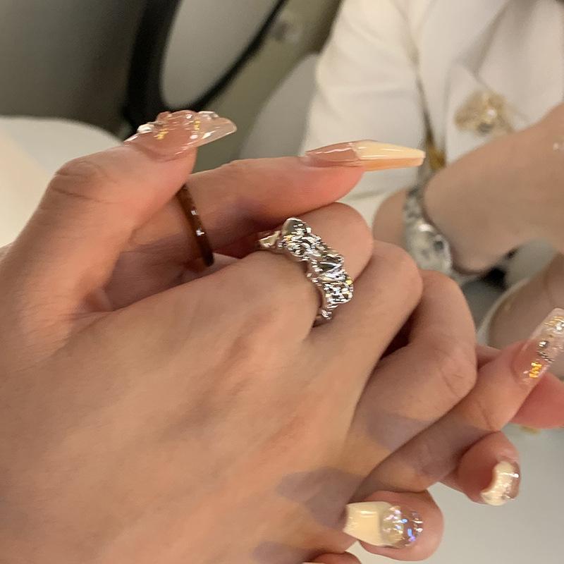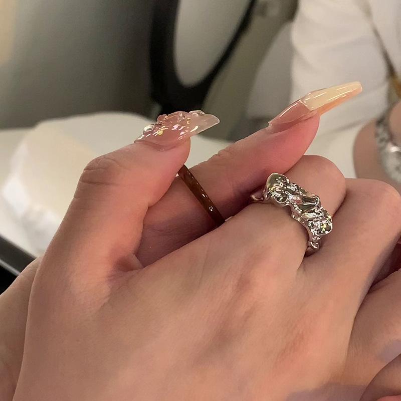 Anillo ajustable abierto plisado simple para mujer con diseño de nicho de lujo ligero, anillo para dedo índice de alta calidad, nueva moda