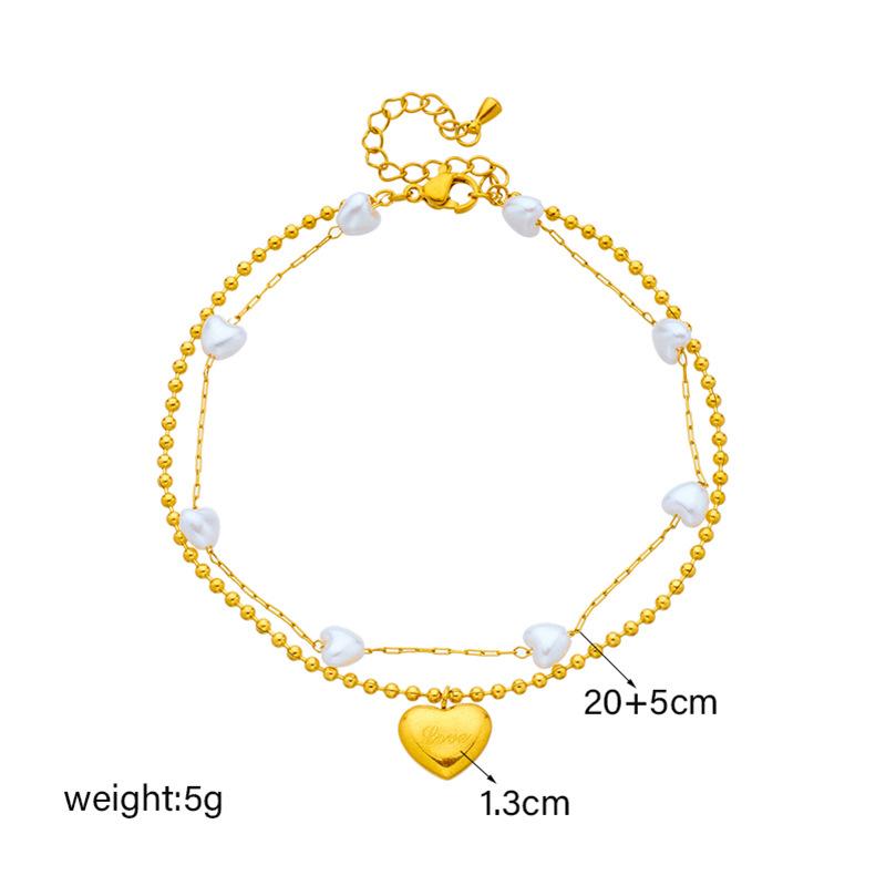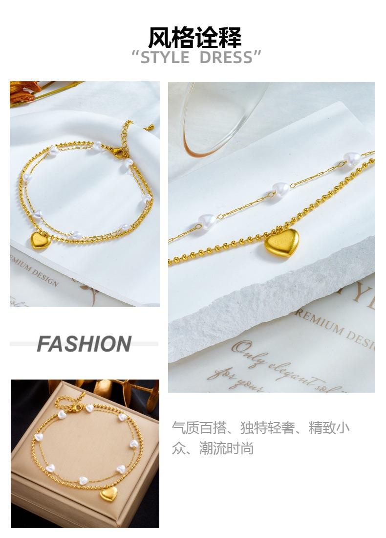 Temperamento de moda europea y americana retro cadena de doble cuenta Perla colgante liso de amor simple viento playero comodín
