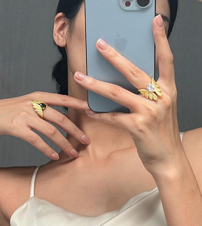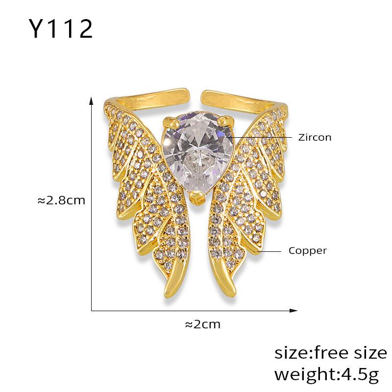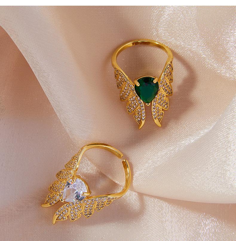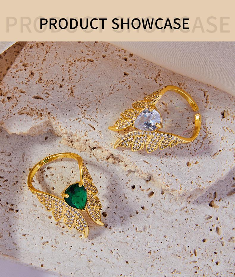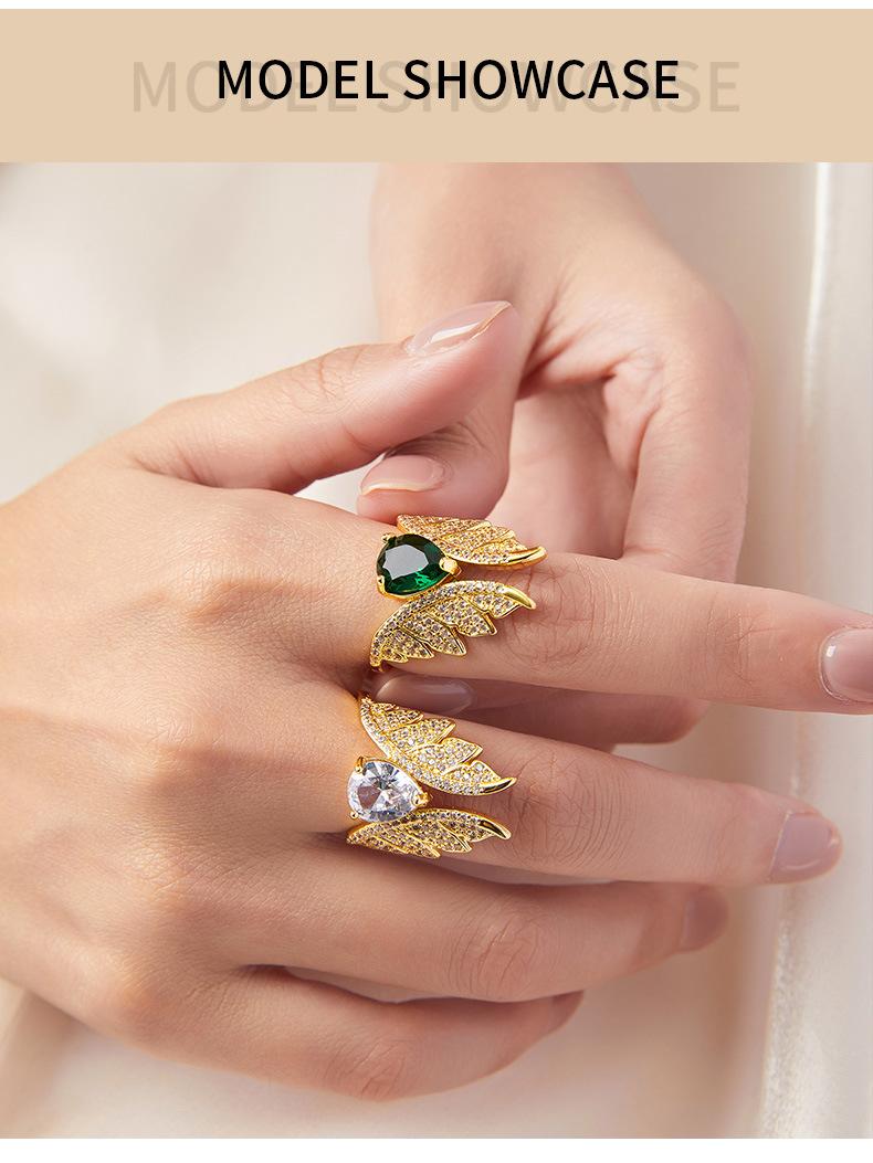Anillo Elegante Elegante Francés Material de Cobre Incrustado Zircón Anillo Geométrico Alas Diseño Diamante Anillo de Dedo Accesorios anillo