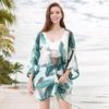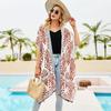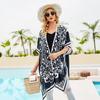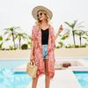 Nueva blusa de bikini playera tipo cárdigan sexy con estampado de vacaciones costeras transfronterizas europeas y americanas de gasa de longitud media y larga con protección solar