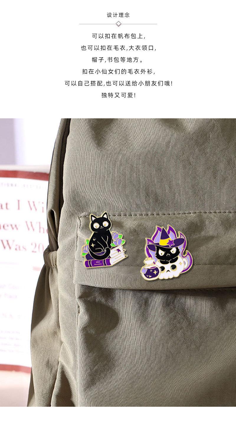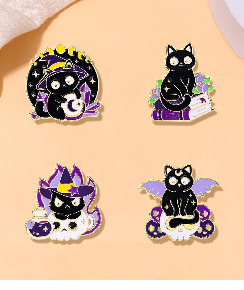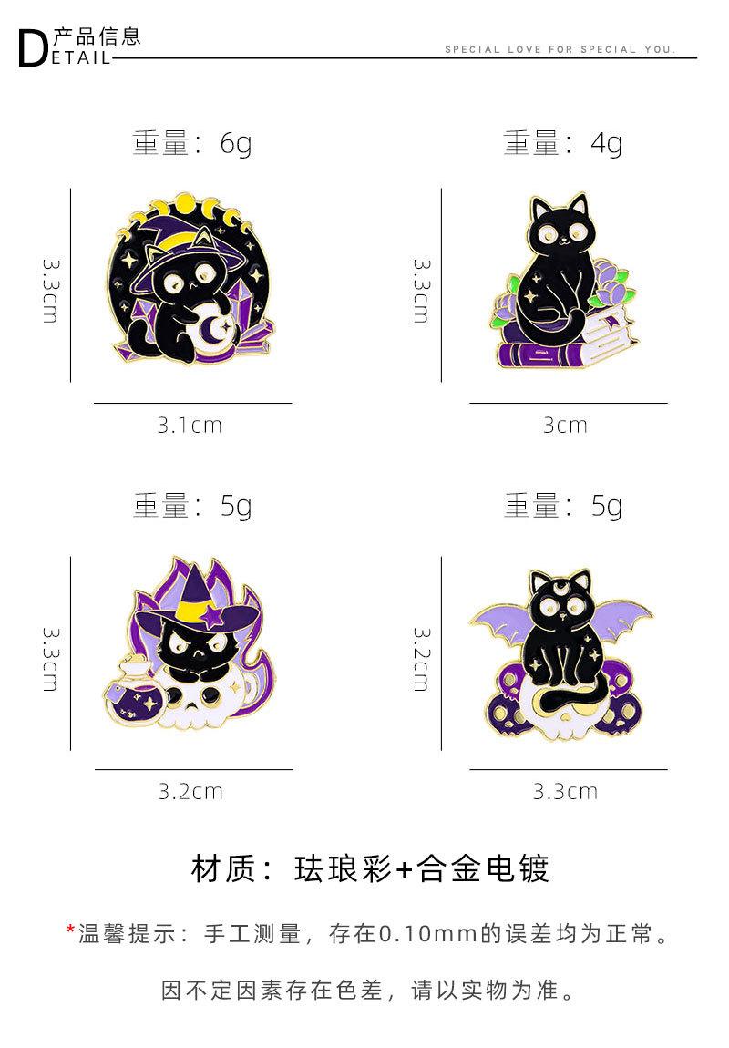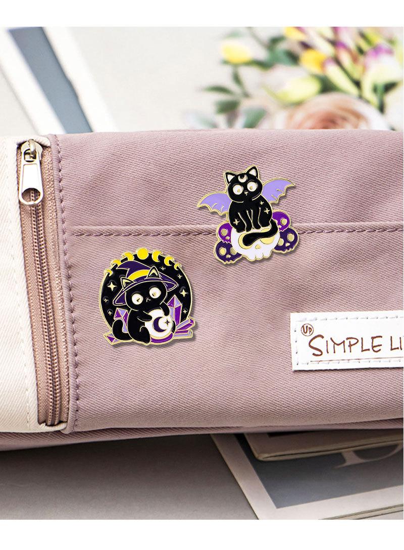 Broche de gato negro lindo transfronterizo animal de dibujos animados alas ojos de gato metal gota de aceite insignia accesorios de bolsa al por mayor