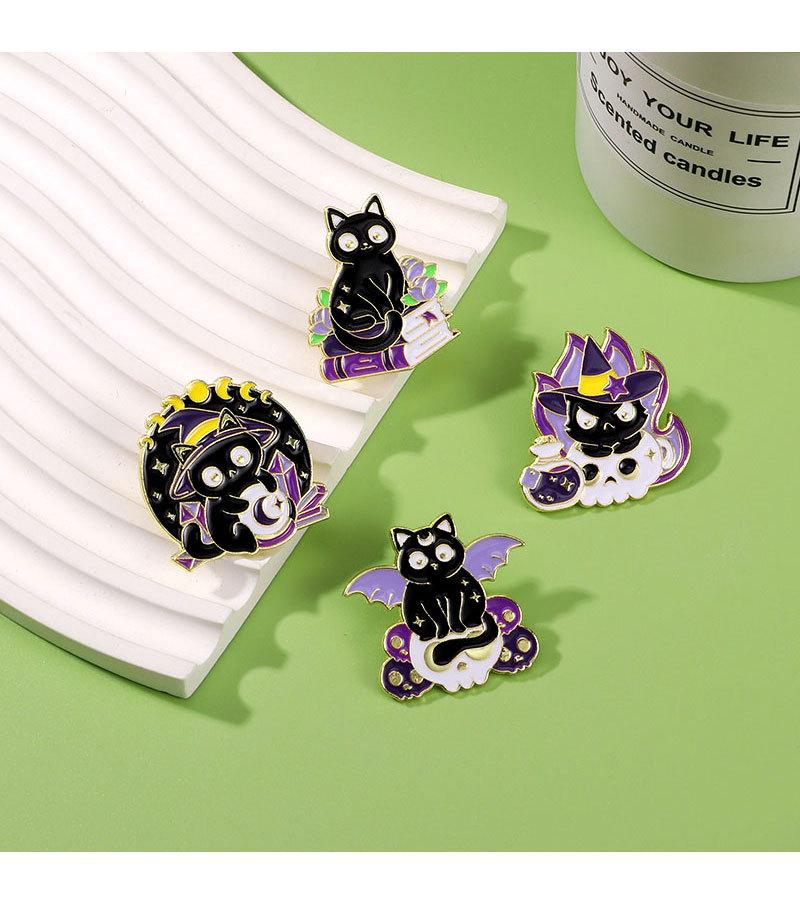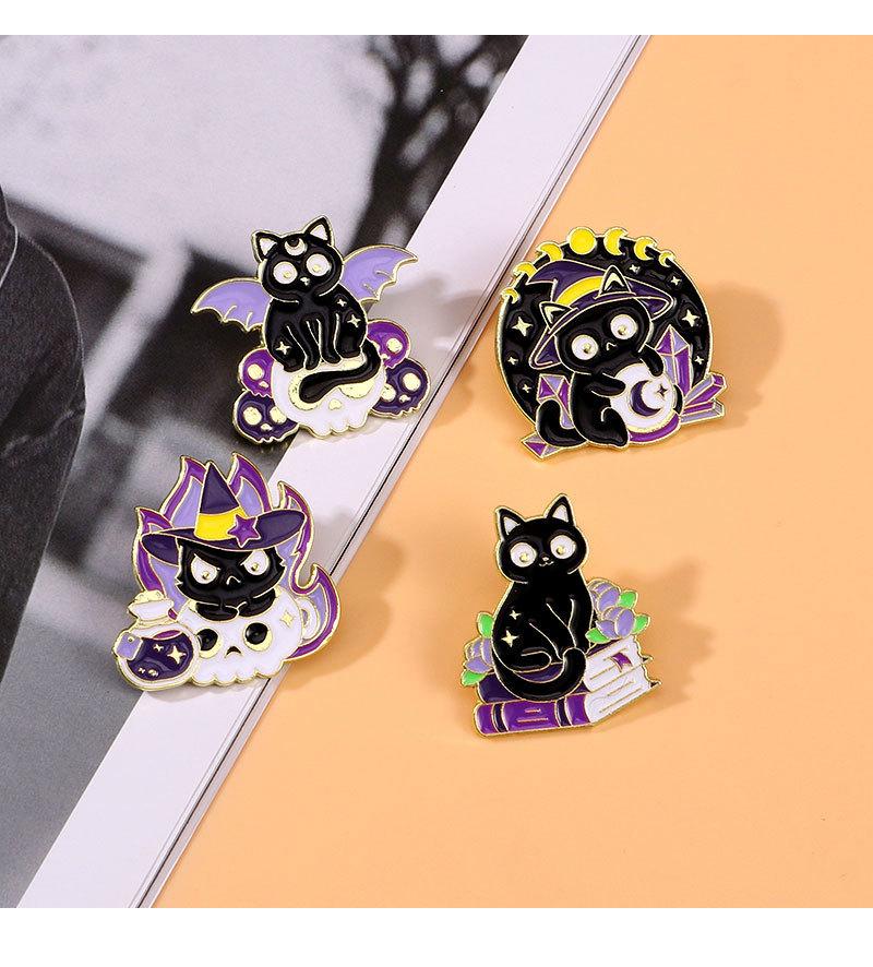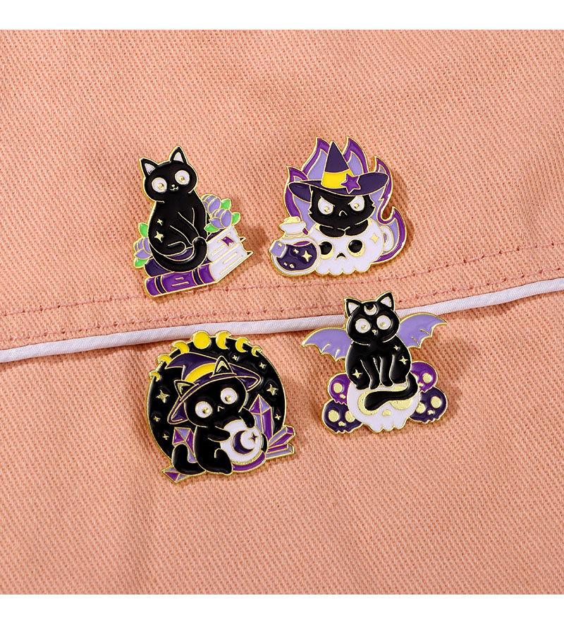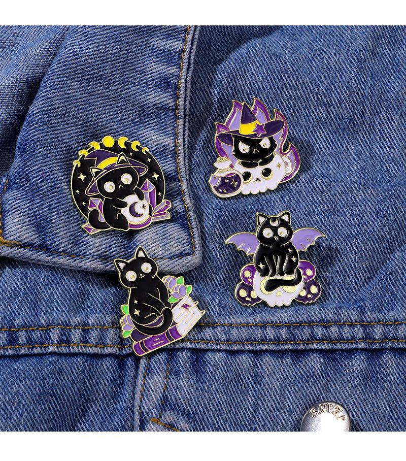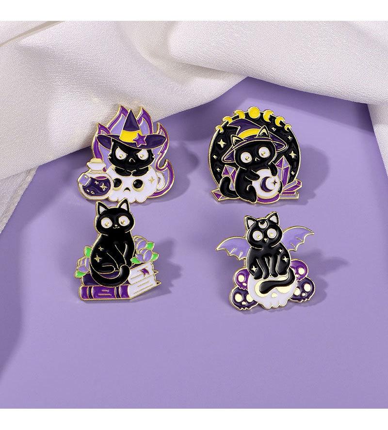 Broche de gato negro lindo transfronterizo animal de dibujos animados alas ojos de gato metal gota de aceite insignia accesorios de bolsa al por mayor