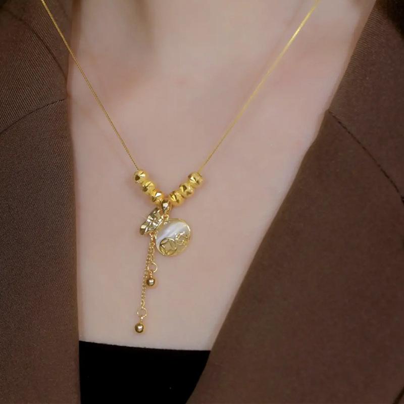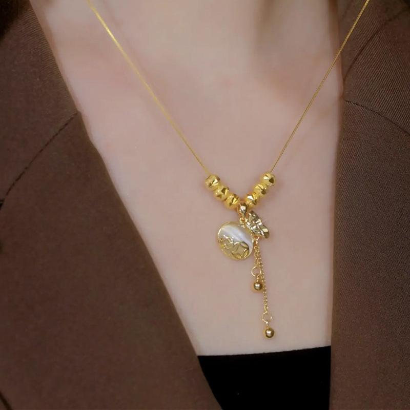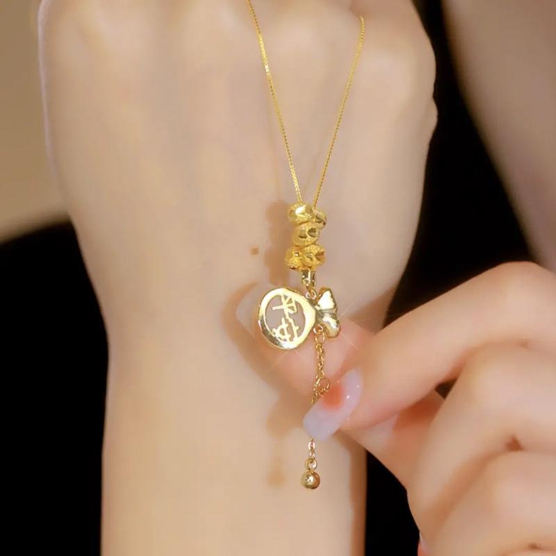 Nuevo colgante de bolsa de la suerte de metal con cuentas de transferencia de estilo coreano, collar de acero de titanio para mujer, cadena universal personalizada que combina con todo, accesorios de cadena para clavícula