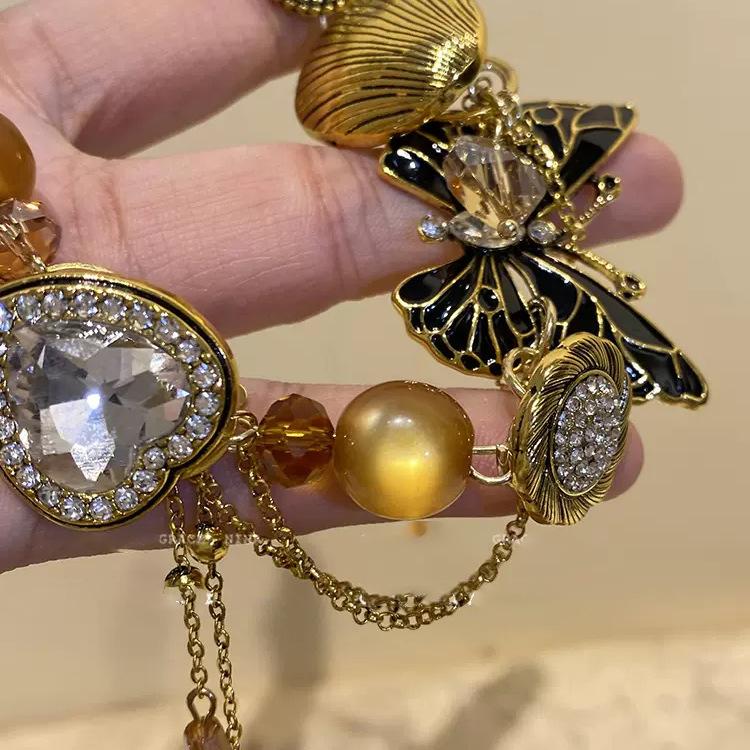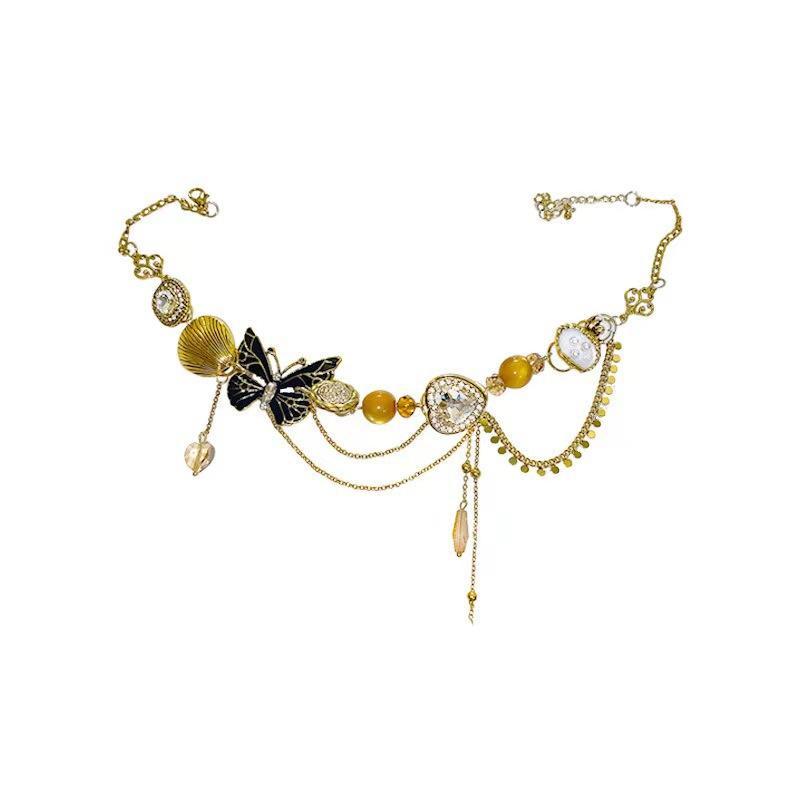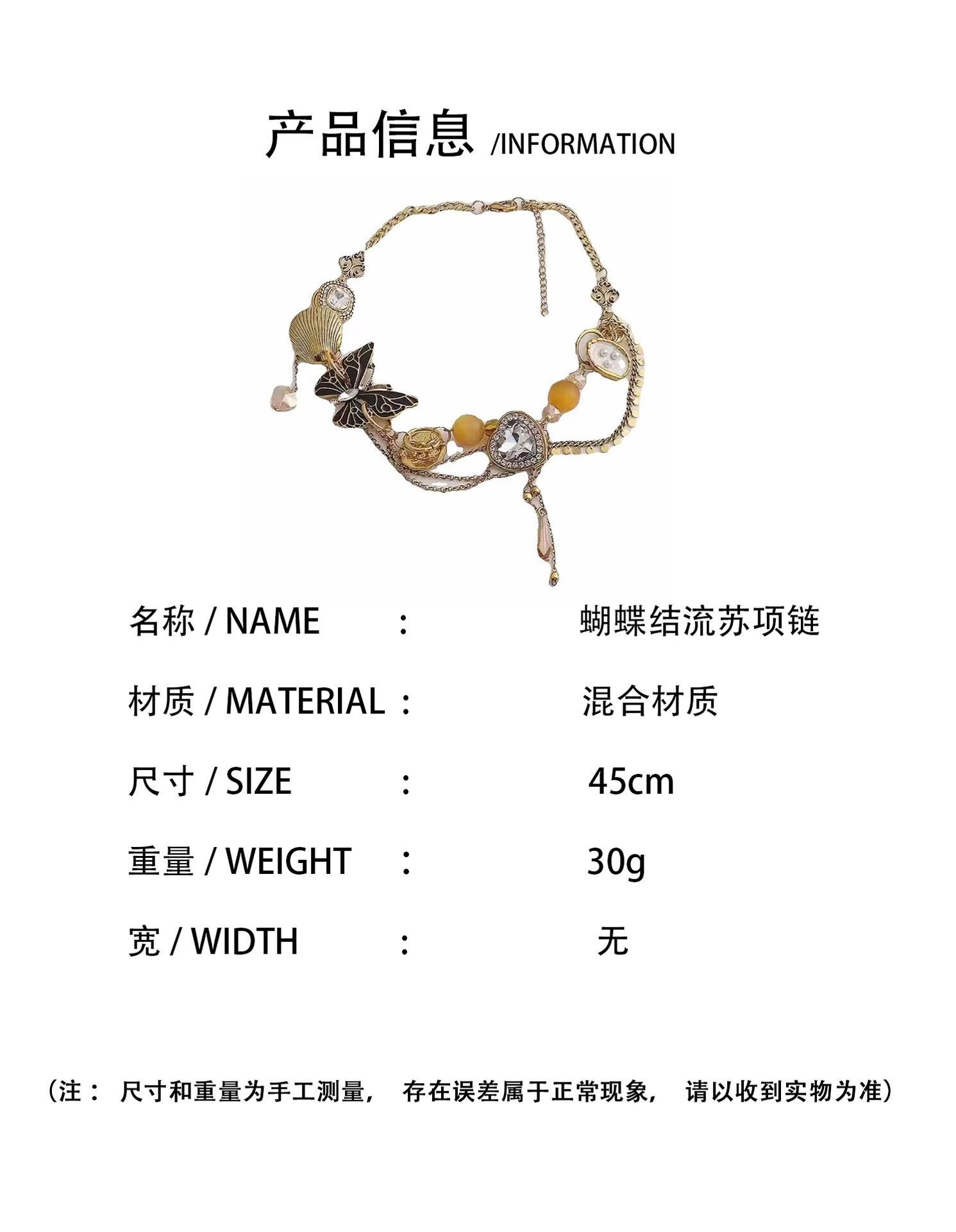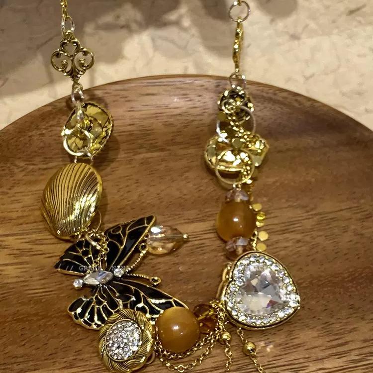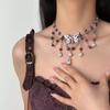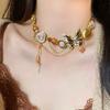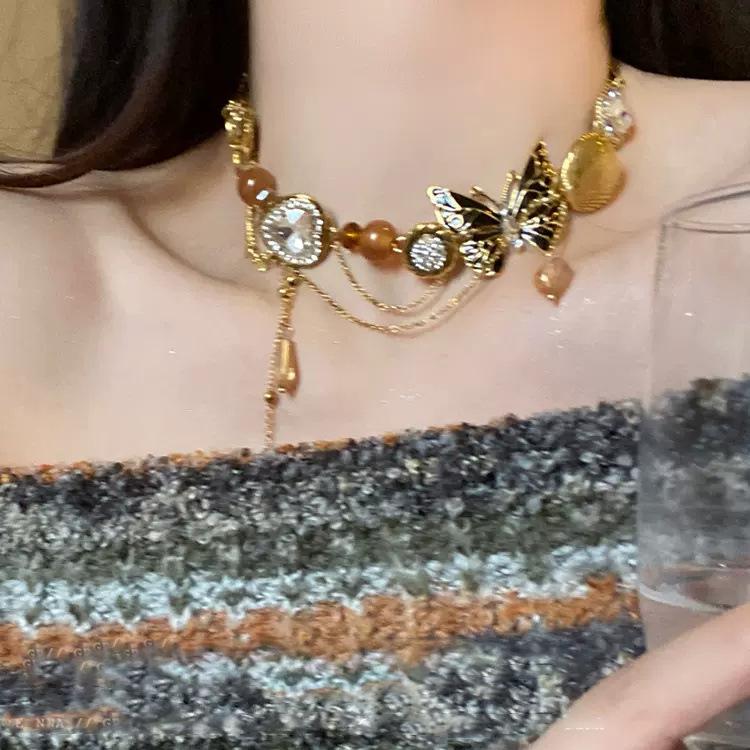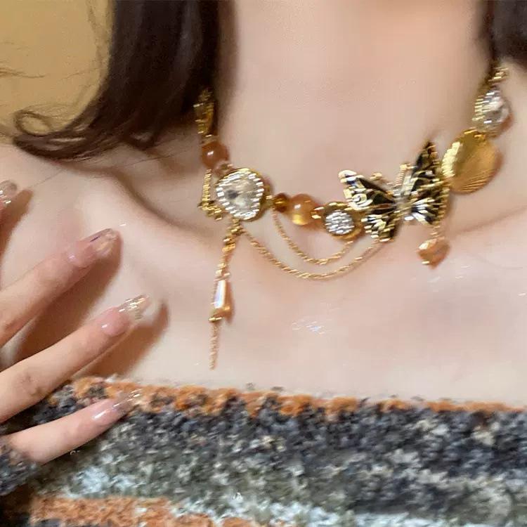 Collar con borlas y cuentas de mariposa de metal pesado, personalizado, estilo retro francés, diseño de nicho, cadena de clavícula de alta calidad para Spice Girls.