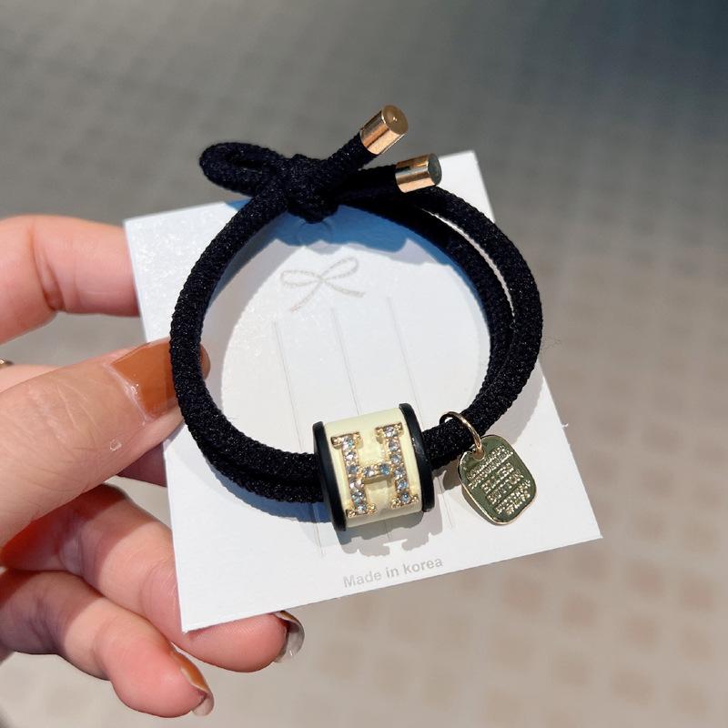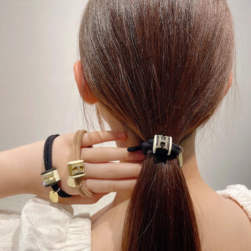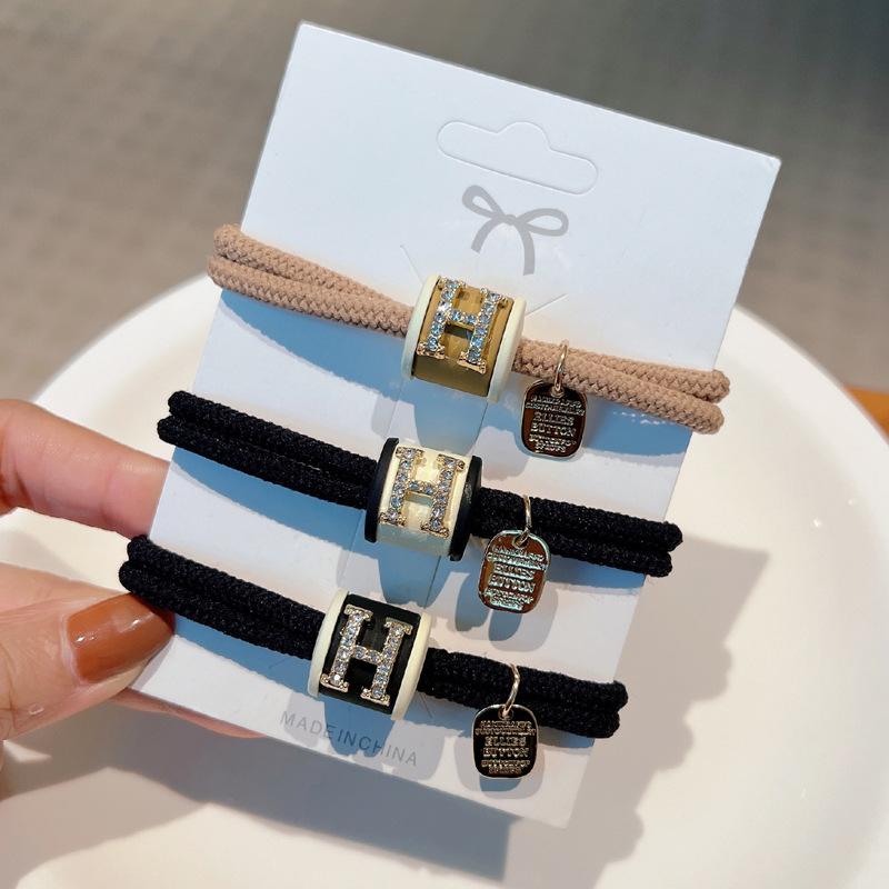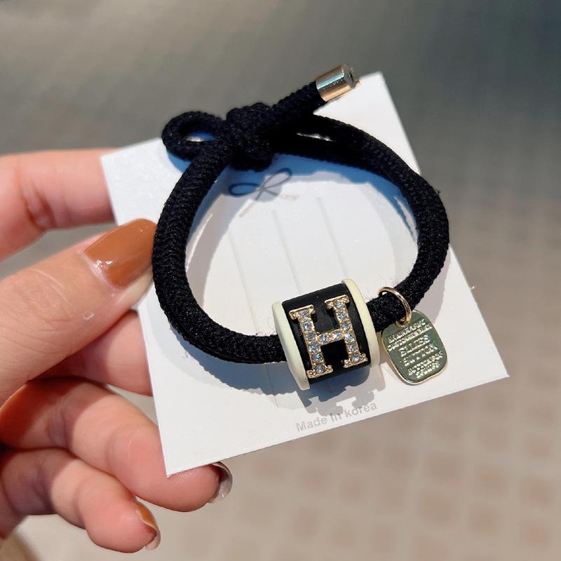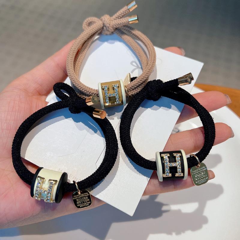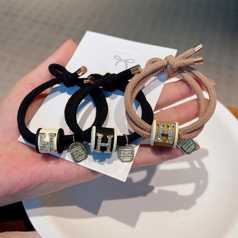 Otoño e Invierno Nuevo Retro Cilíndrico Letra H Cuerda para el Cabello Mujeres Lazo Cabeza de Bola Doble Hebra Anillo para el Cabello Temperamento Aleación Perla Cuerda para la Cabeza