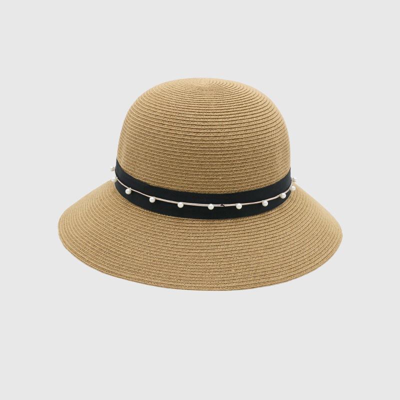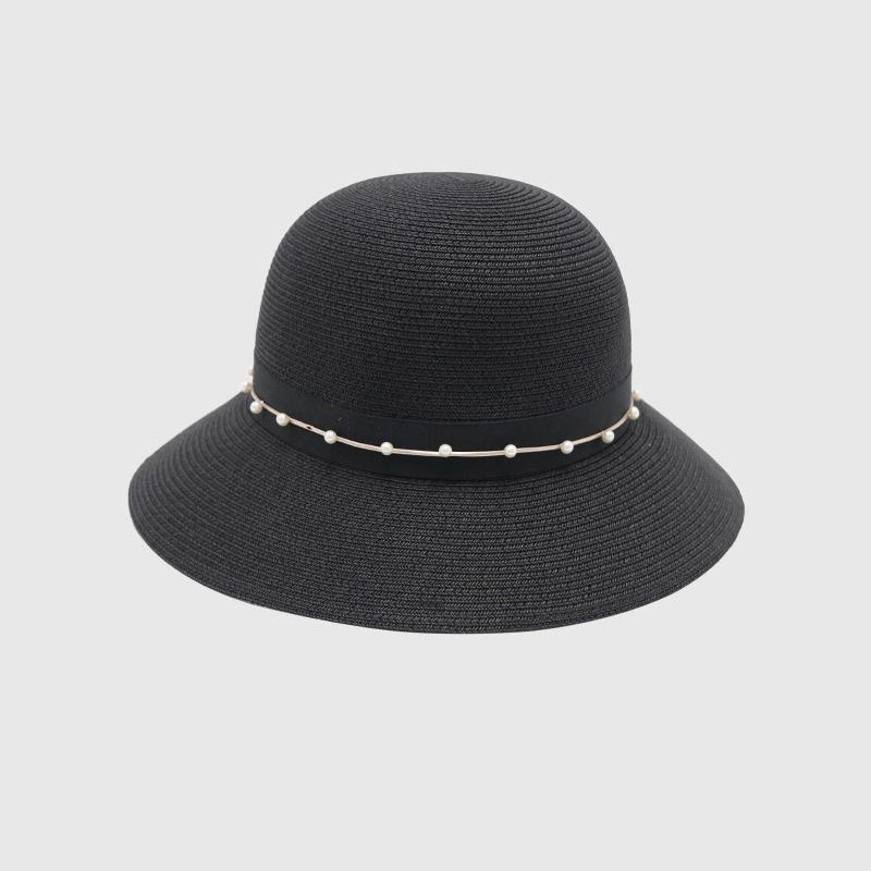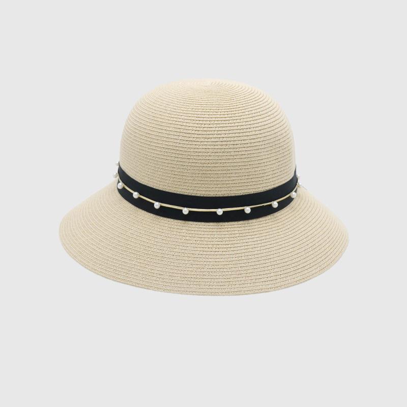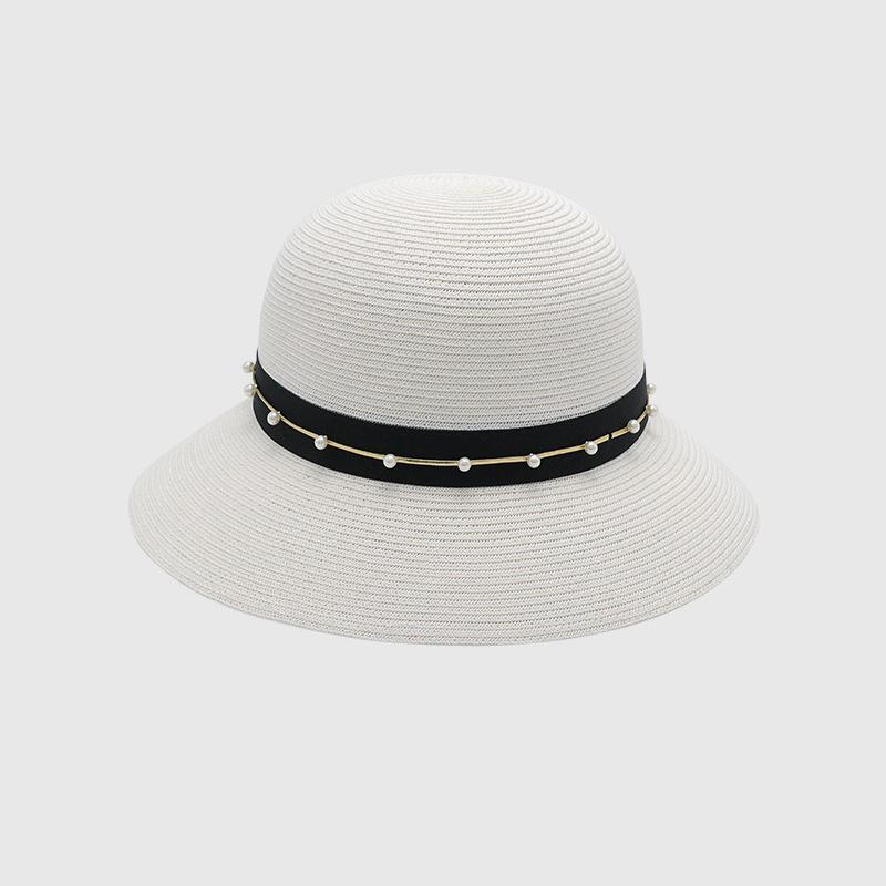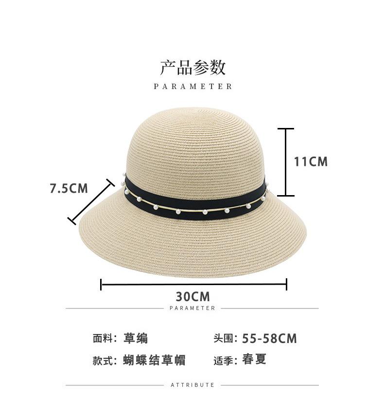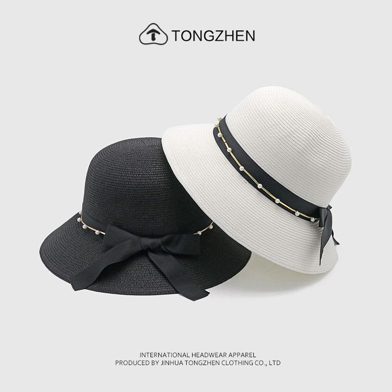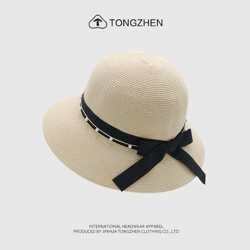 Sombrero de paja elegante de verano estilo Hepburn para mujer, con lazo de perla, para fotografía de playa francesa, sombrero de protección solar