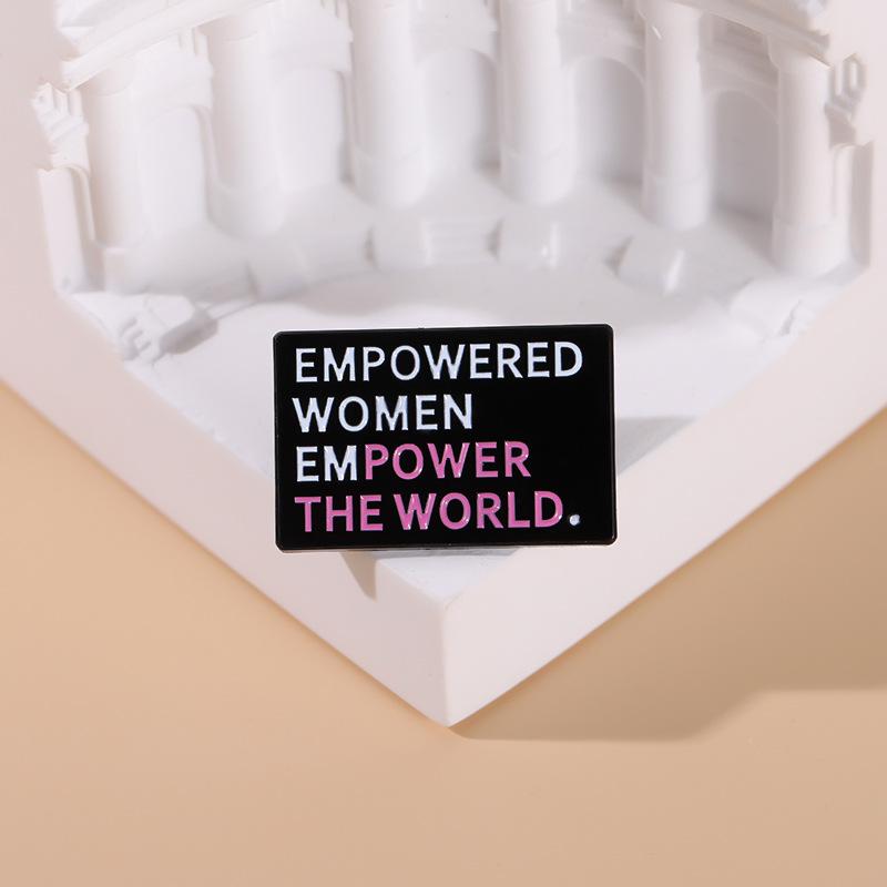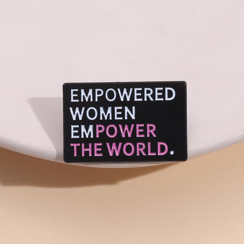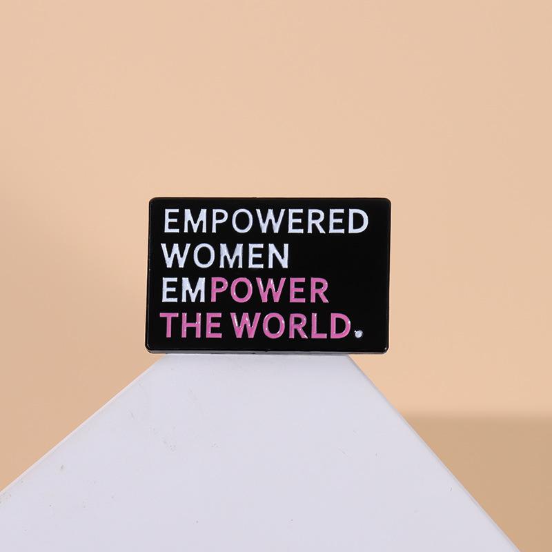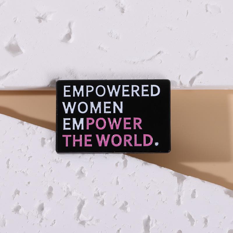 Broche con letras en inglés, diseño geométrico cuadrado de metal, con dibujos animados, color negro, estilo transfronterizo