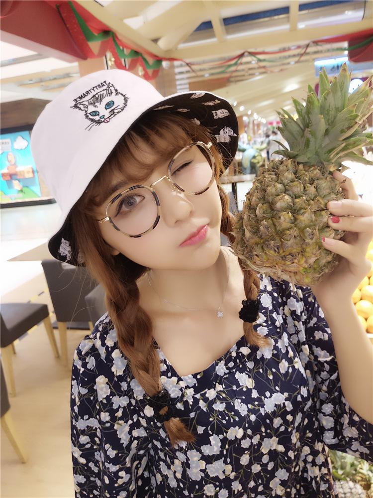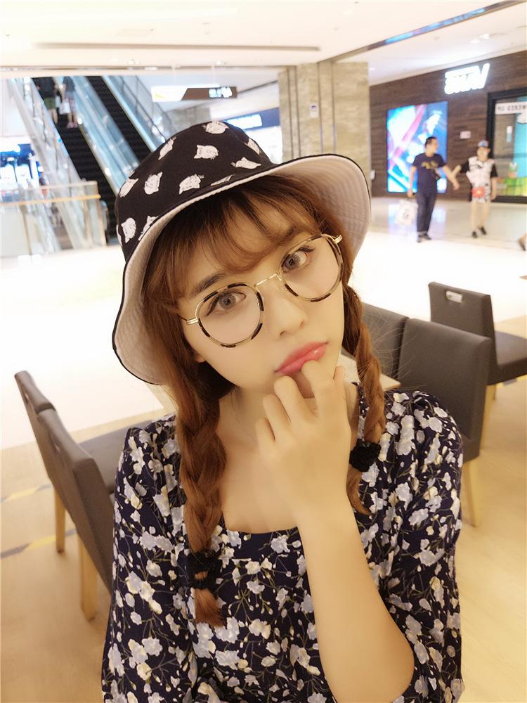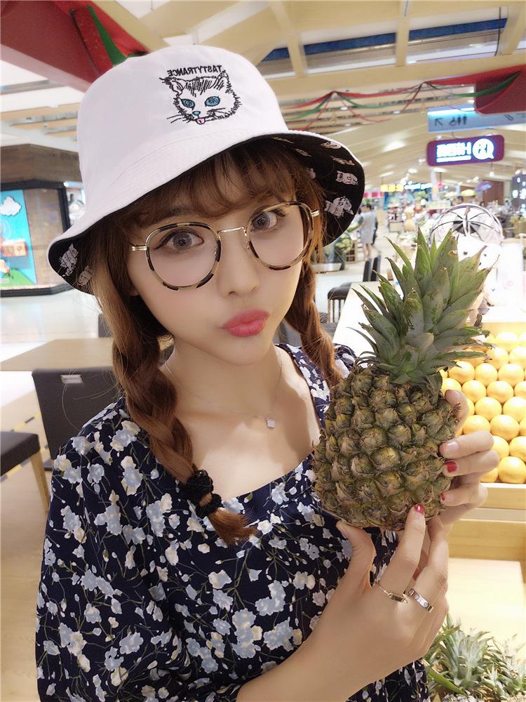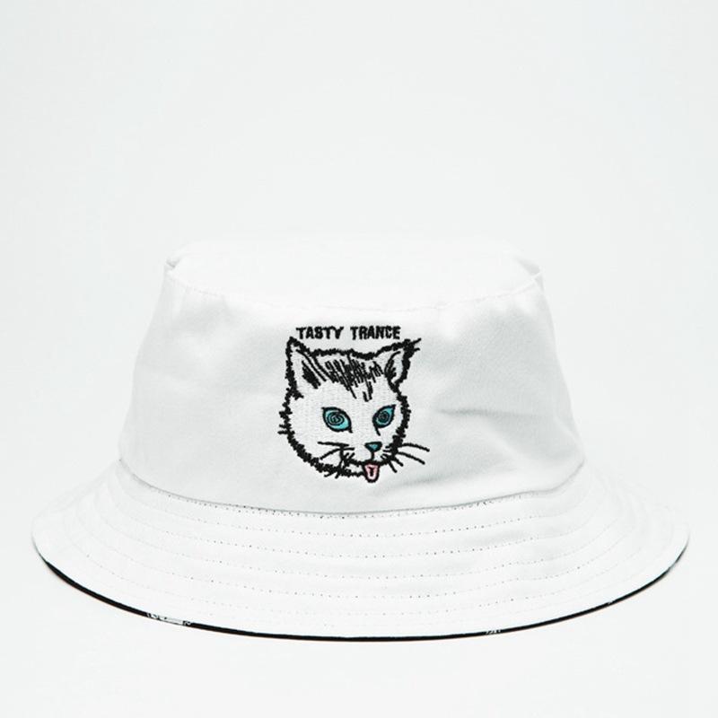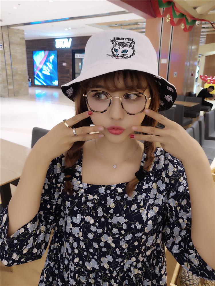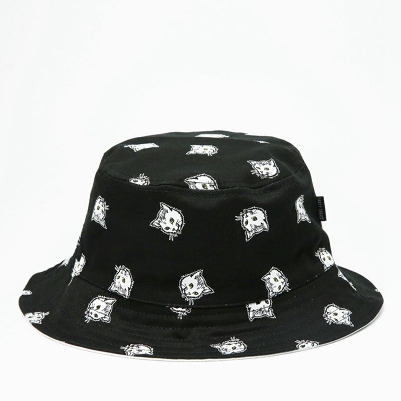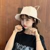 Venta al por mayor, sombrero de pescador con bordado creativo coreano, sombrero de sol de verano para mujer, sombrero de lavabo de dos caras en blanco y negro con cabeza de gato de dibujos animados coreanos