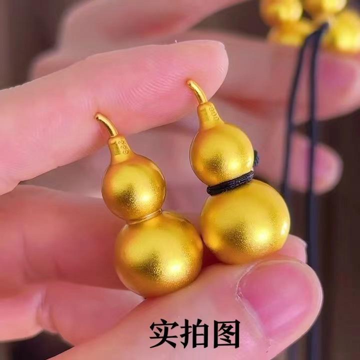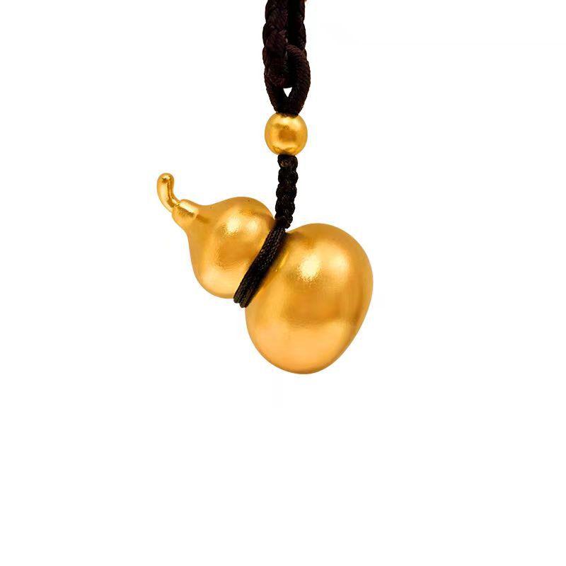 Ancient French Fulu Gourd Pendant Gold Bead Black Rope (60cm)
