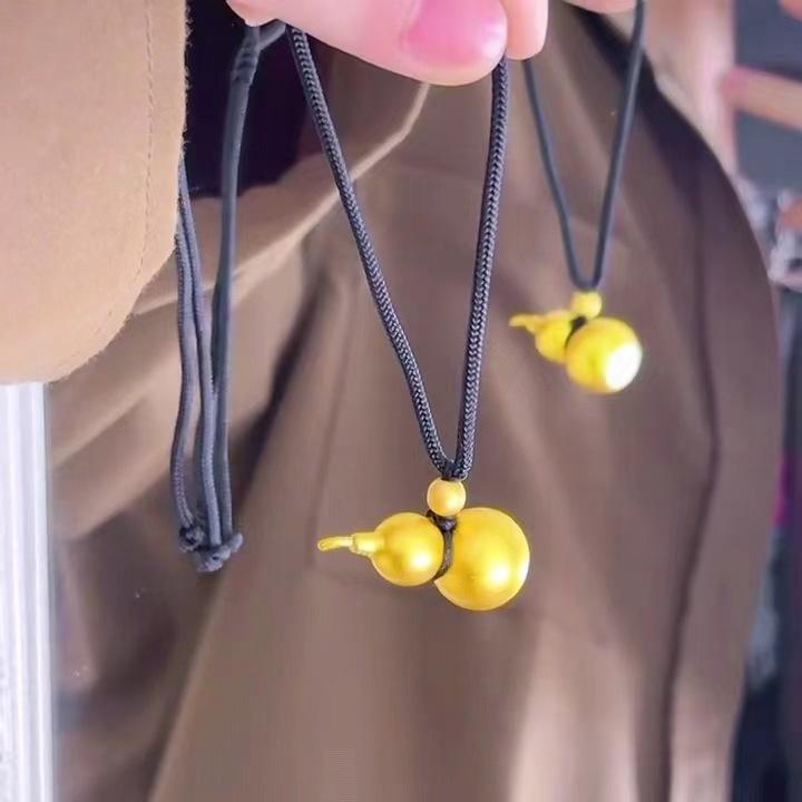 Colgante de calabaza Fulu francesa antigua, color dorado, colgante de calabaza vintage china, estrella del mismo estilo, cadena de lana de cuerda negra