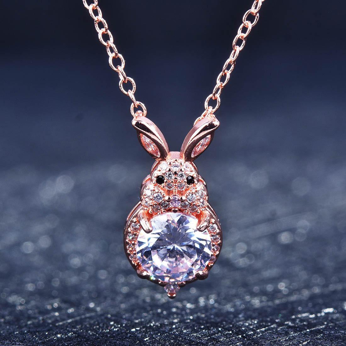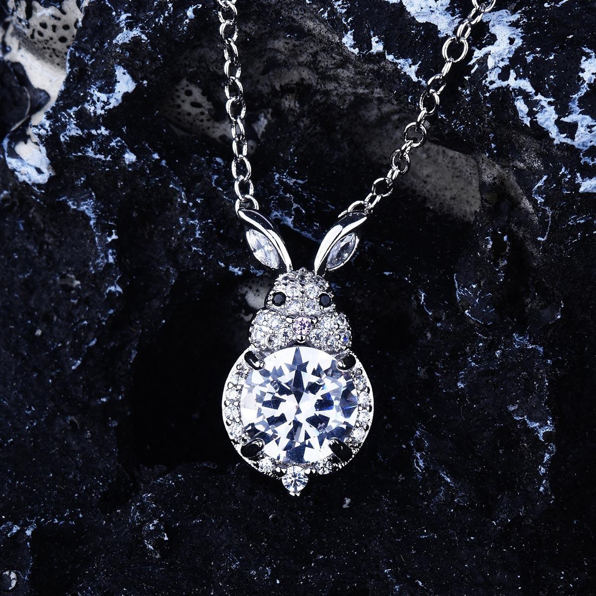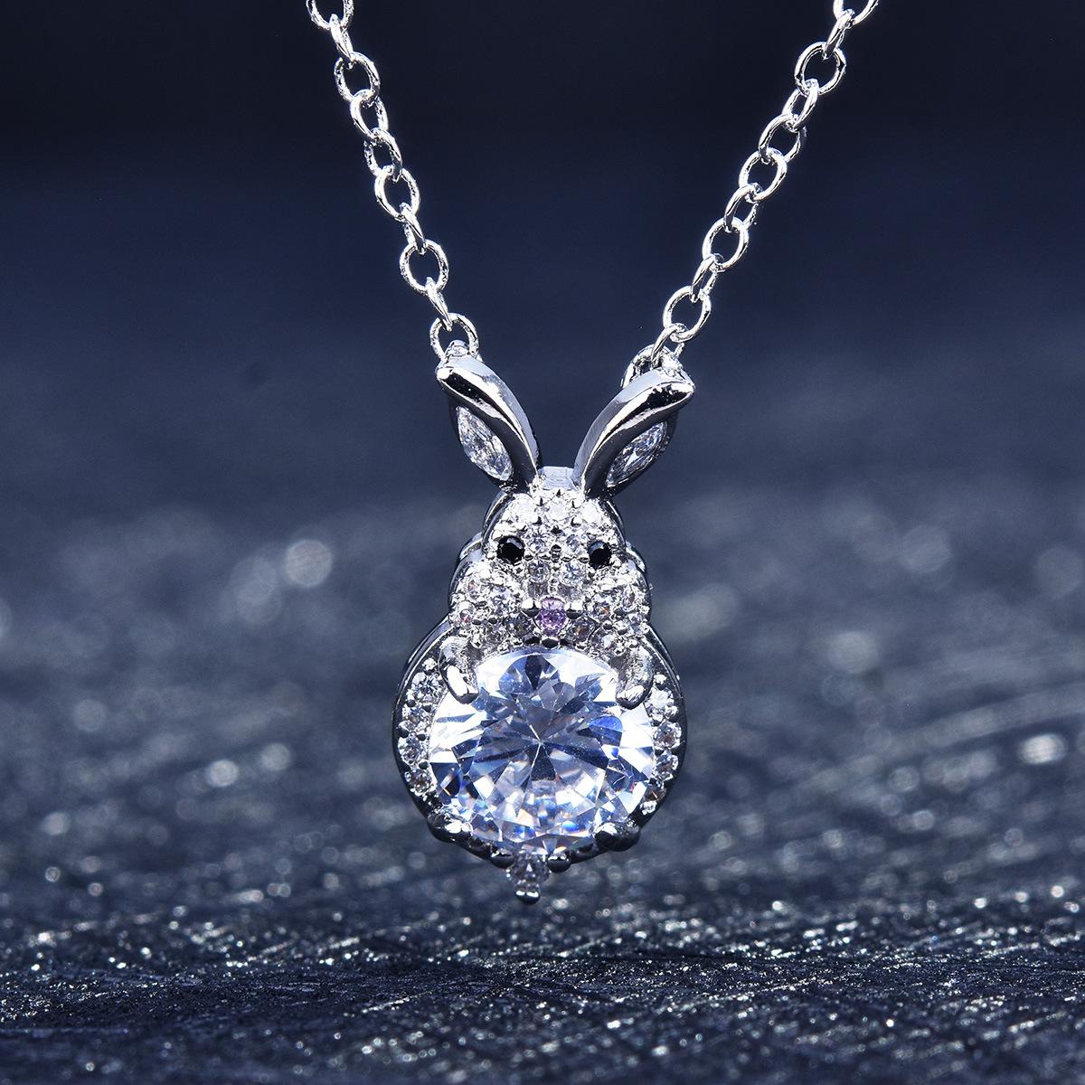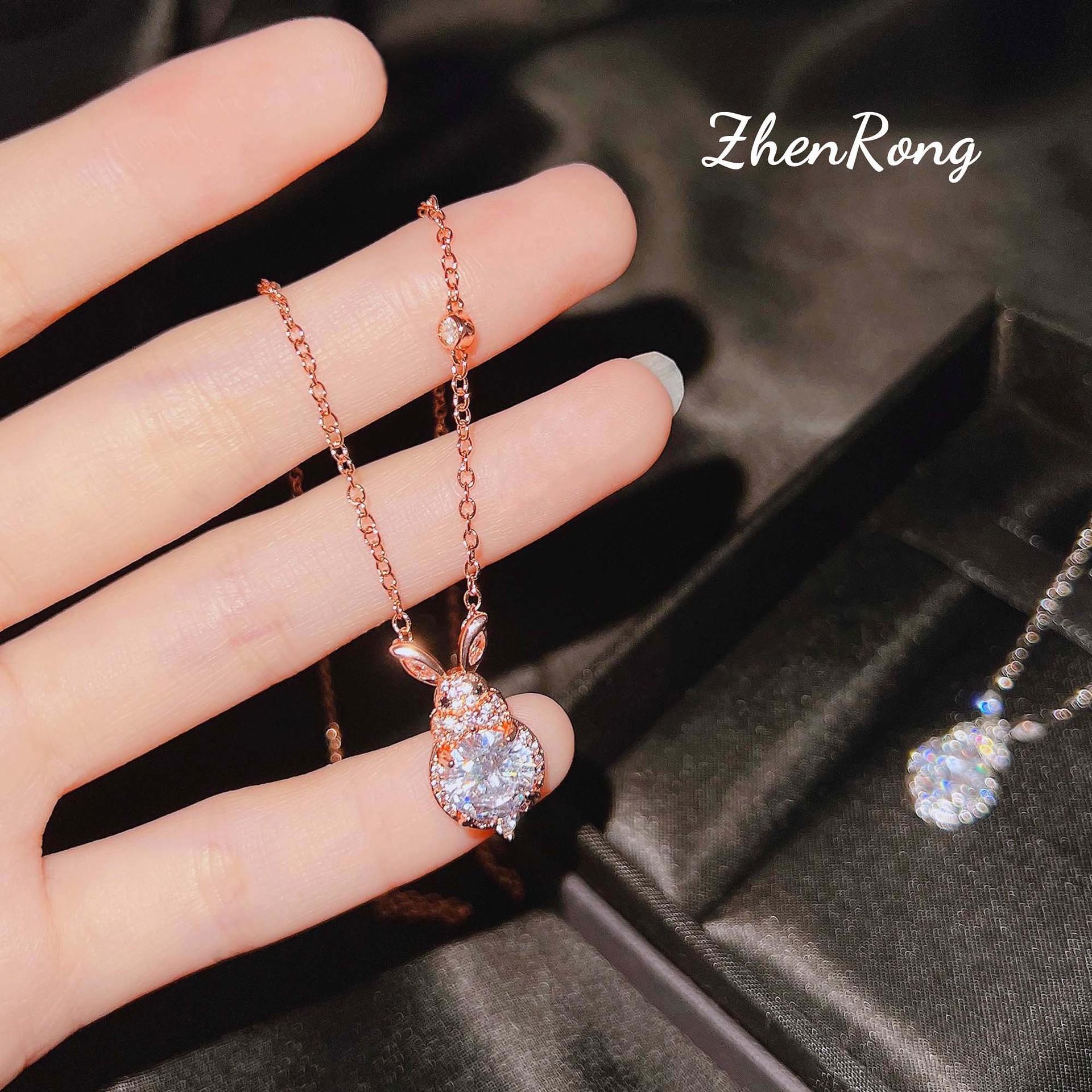 Collar Live Explosions de imitación de moissanita con colgante de diamante Mossam de conejo de 2 quilates. Collar con el elemento del conejo del zodiaco del año de esta vida.