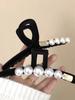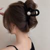 Horquilla de gamuza de gran tamaño con forma de perla para otoño e invierno, para mujer, con clip de tiburón, para el pelo, con temperamento, color negro, venta al por mayor
