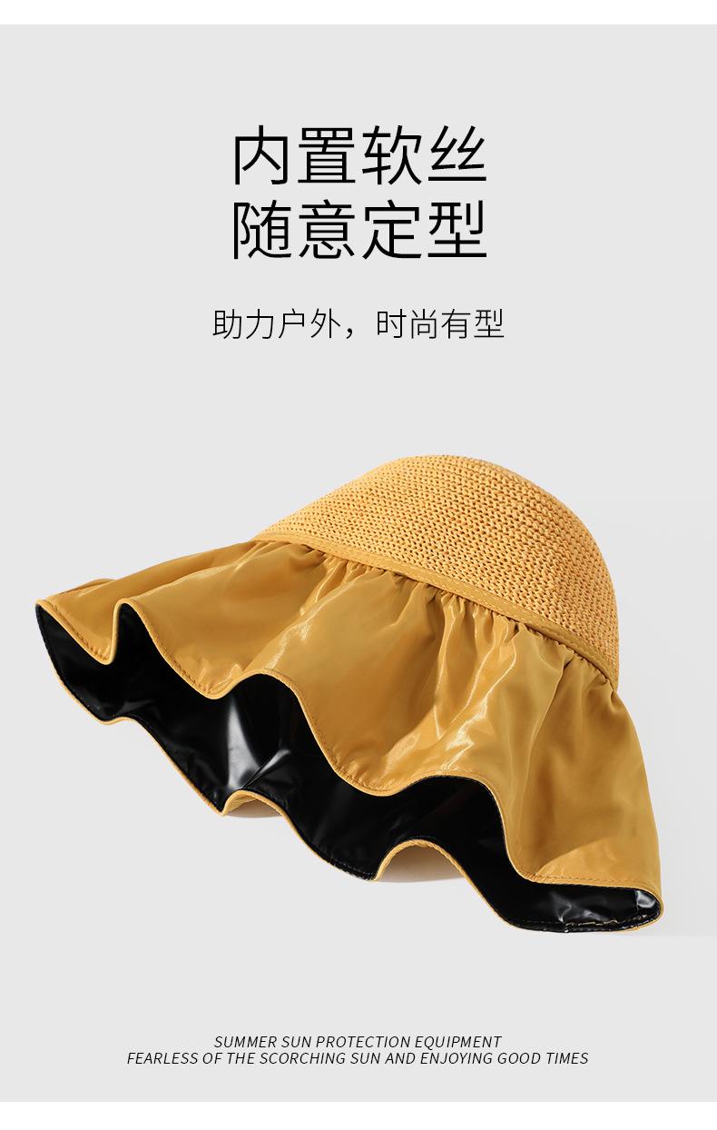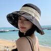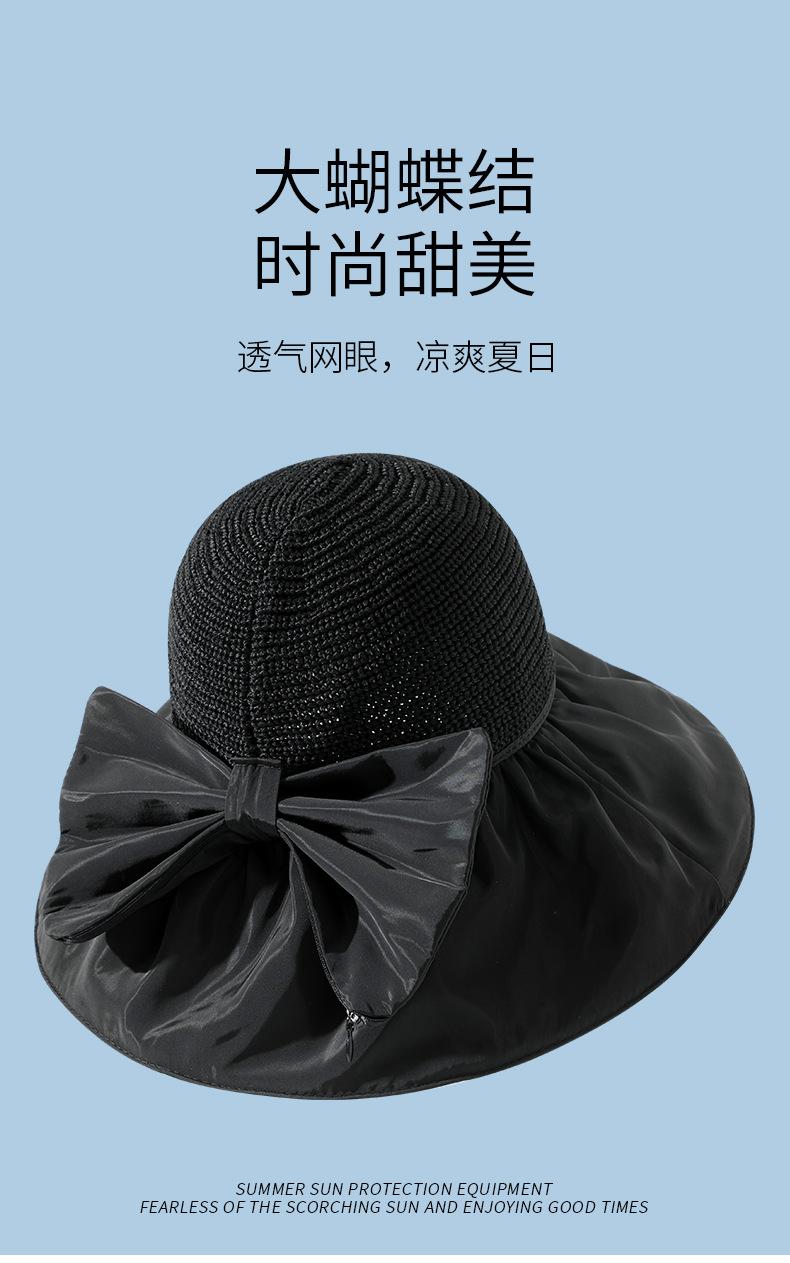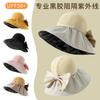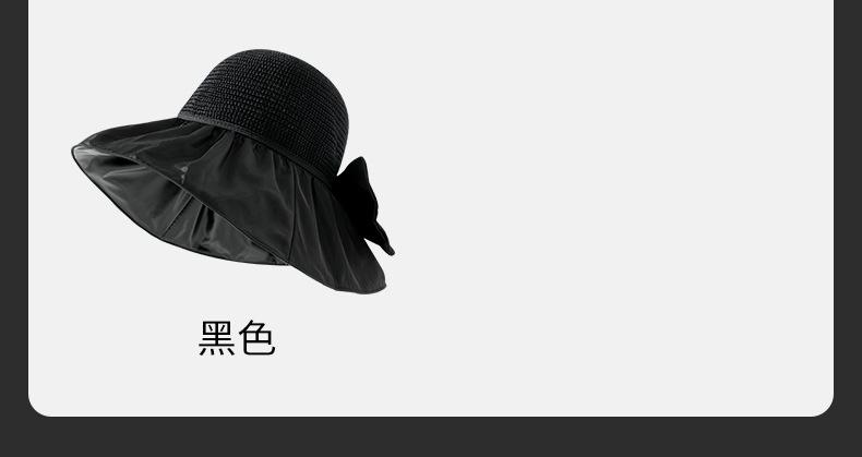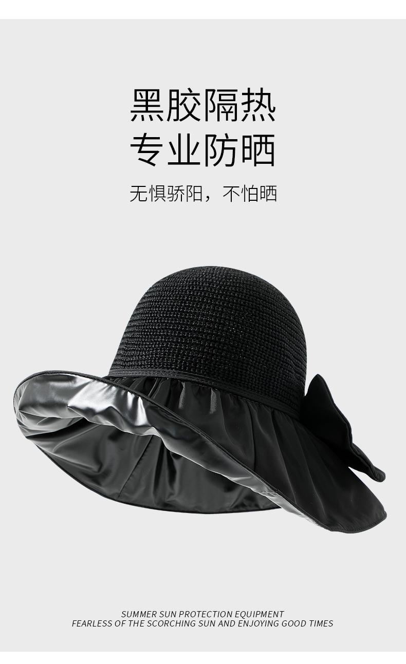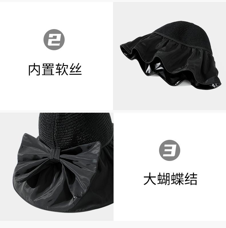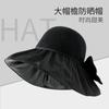 Sombrero de pescador con lazo de goma negro para mujer, protección solar, almacenamiento portátil, protección UV, ala grande, sombrero para el sol