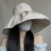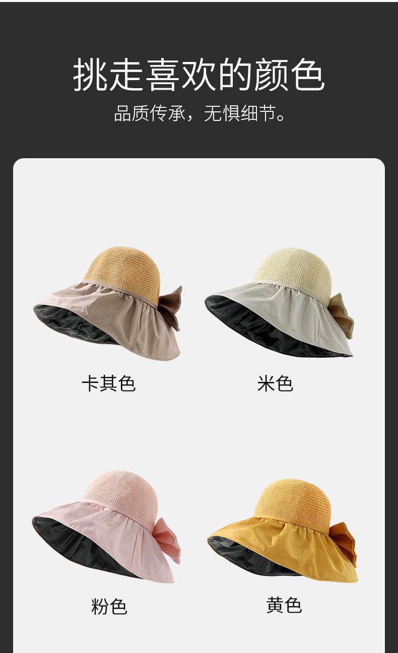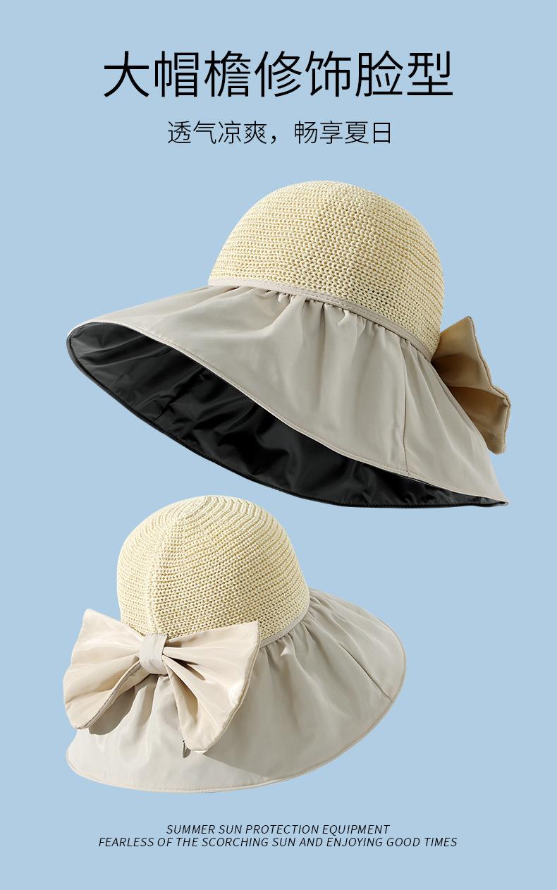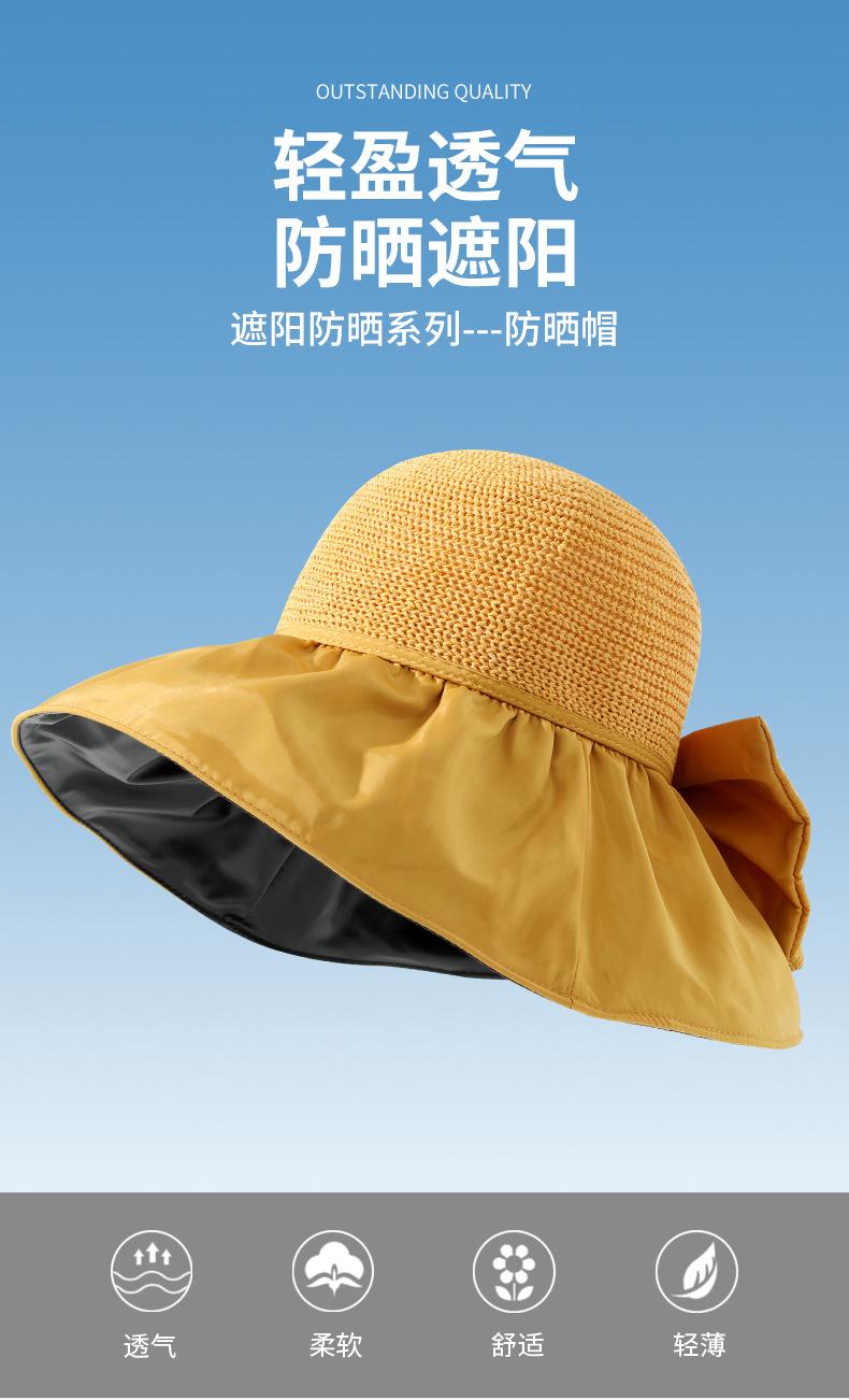 Sombrero de pescador con lazo de goma negro para mujer, protección solar, almacenamiento portátil, protección UV, ala grande, sombrero para el sol