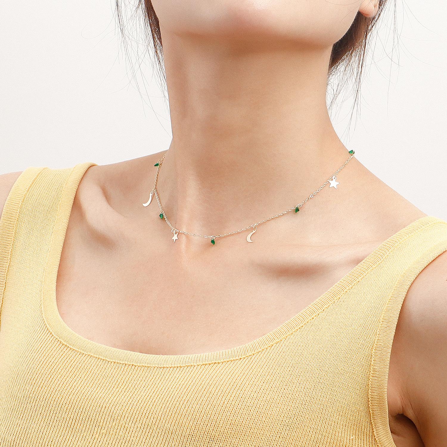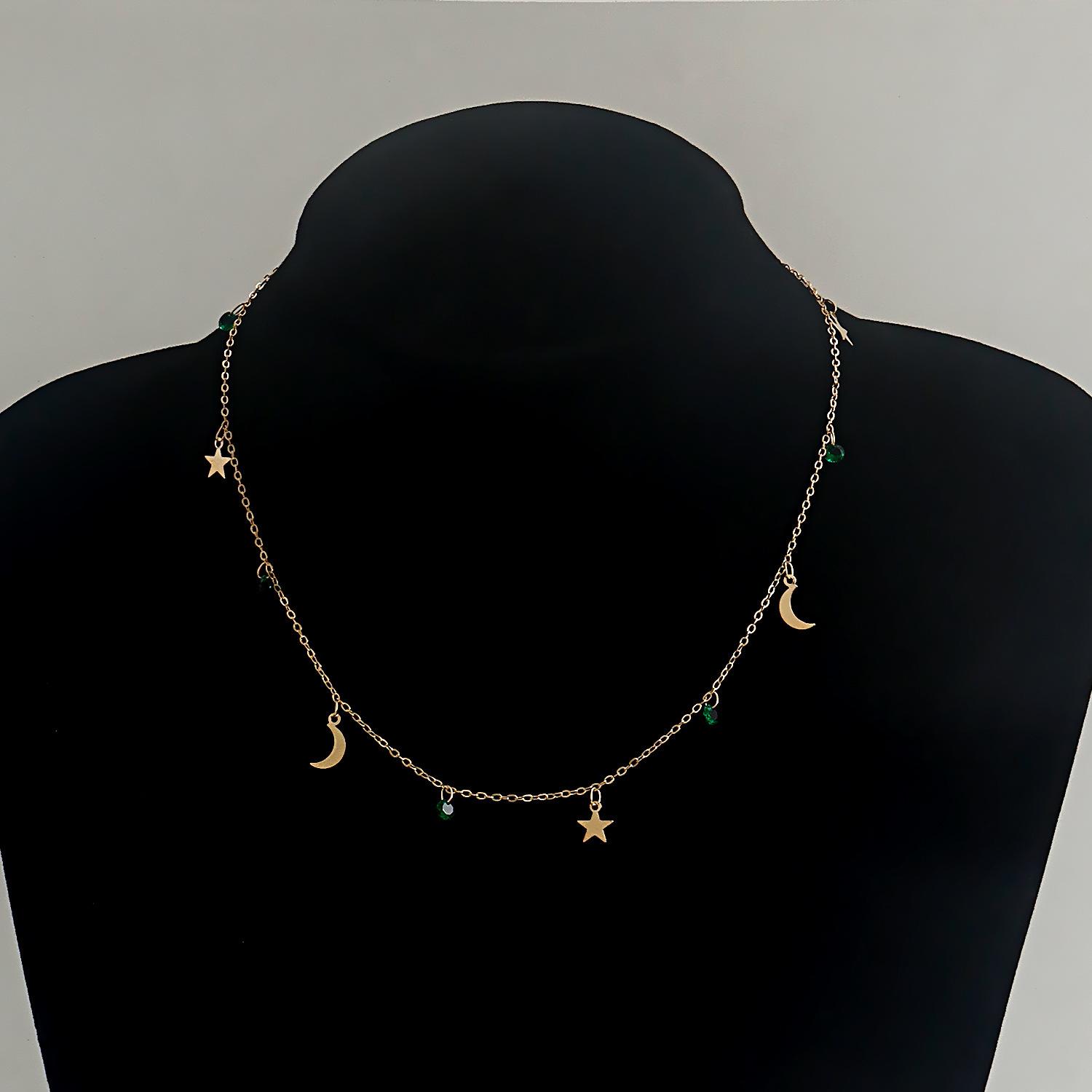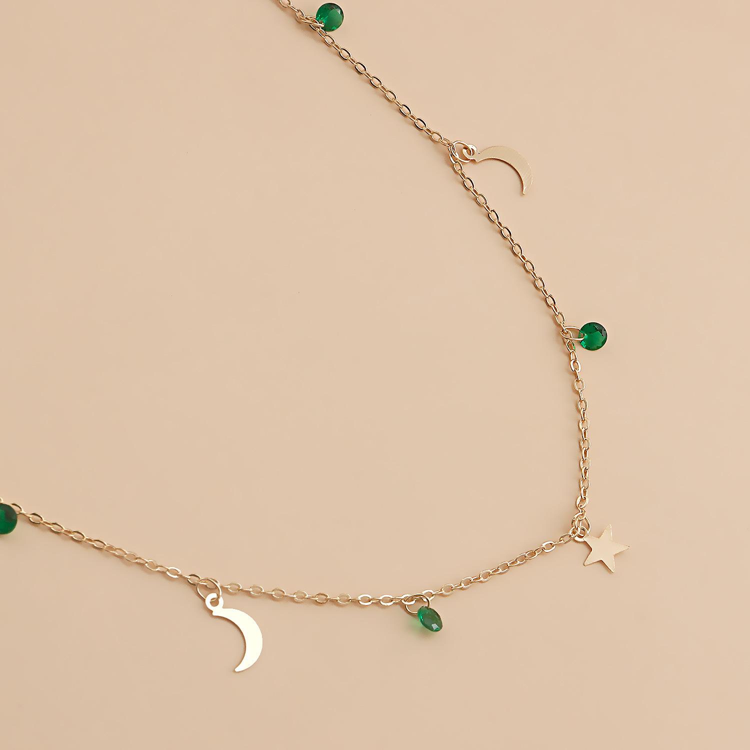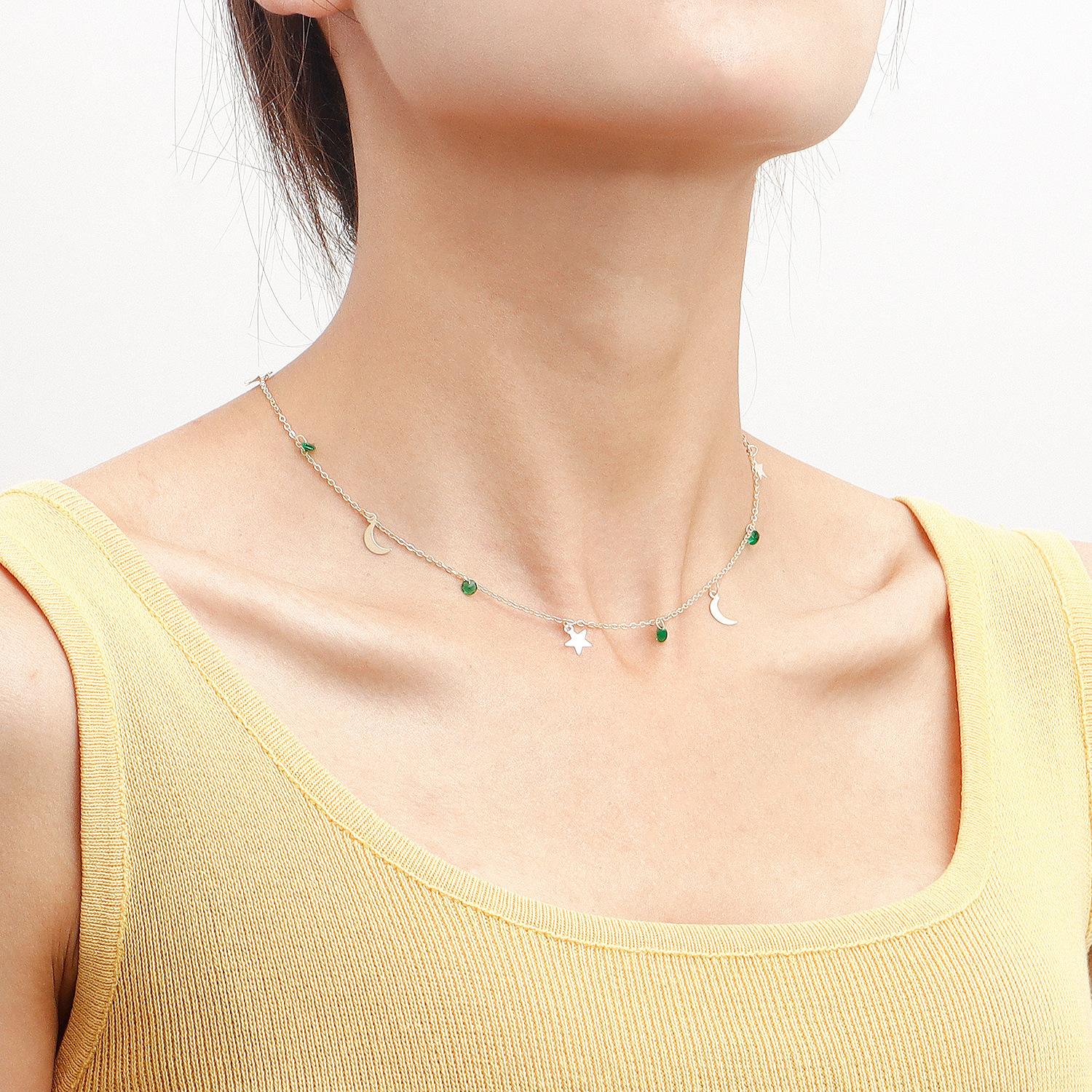 Joyería Transfronteriza Europea y Americana Collar Simple Cristal Verde Estrella Media Luna Colgante Collares al por mayor para mujer, Nicho de lujo ligero