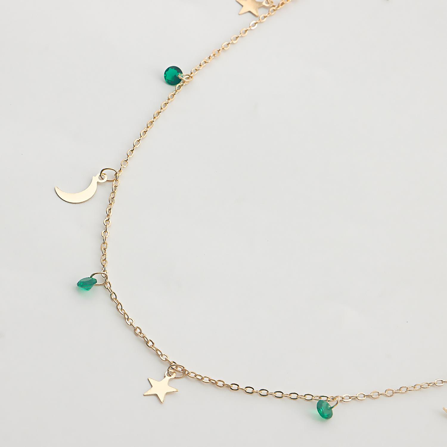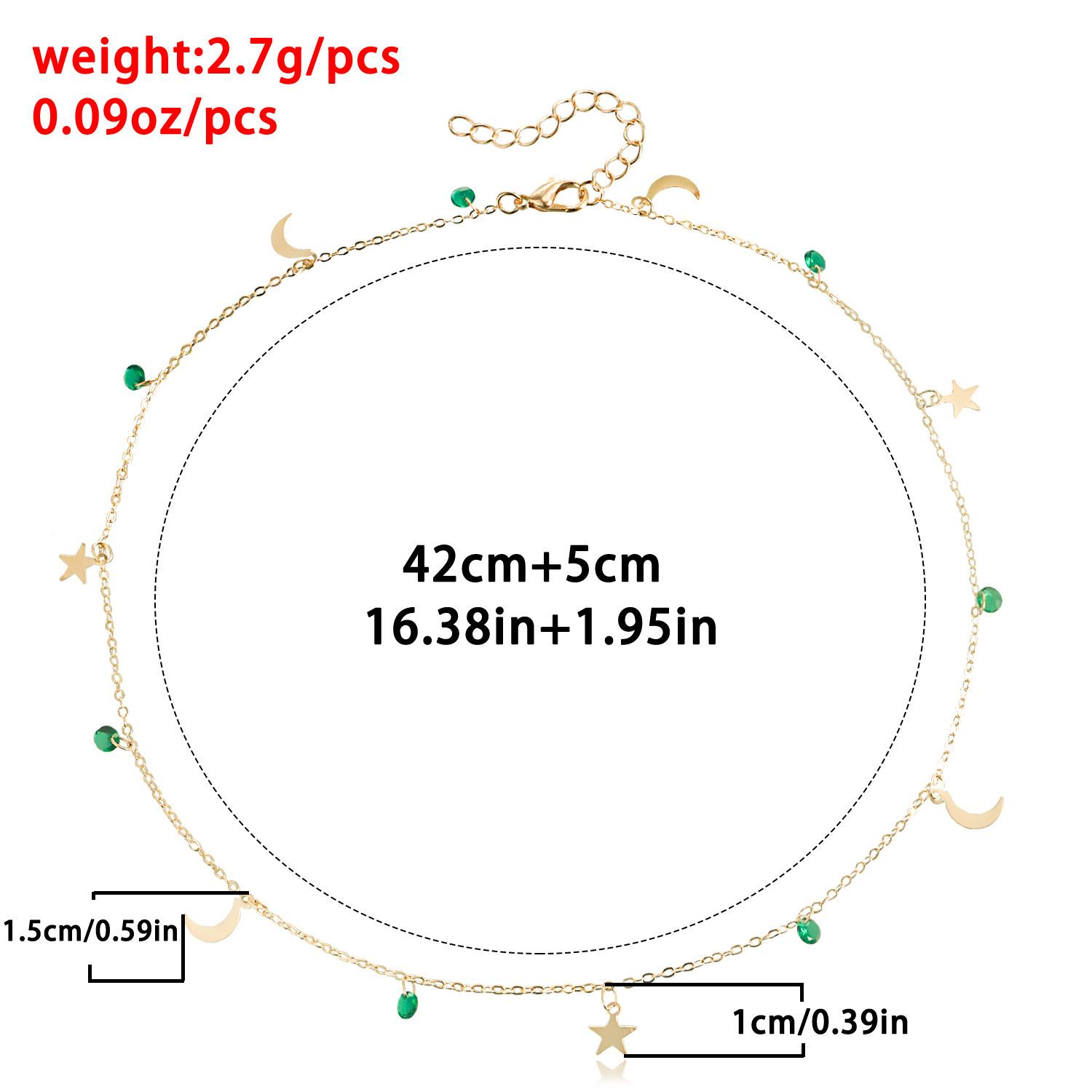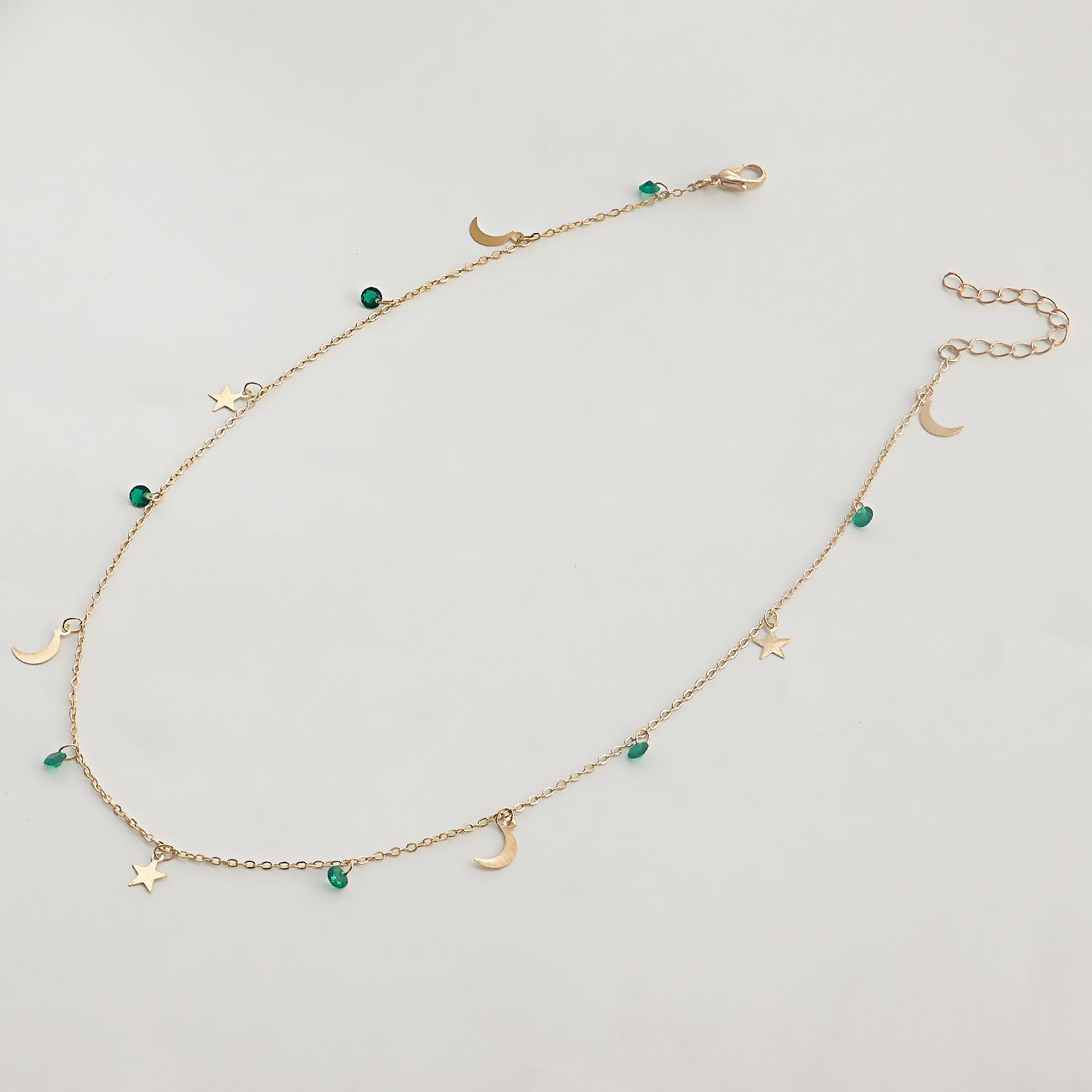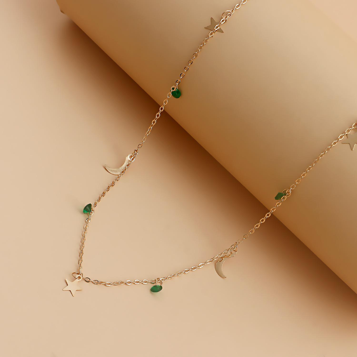 Joyería Transfronteriza Europea y Americana Collar Simple Cristal Verde Estrella Media Luna Colgante Collares al por mayor para mujer, Nicho de lujo ligero