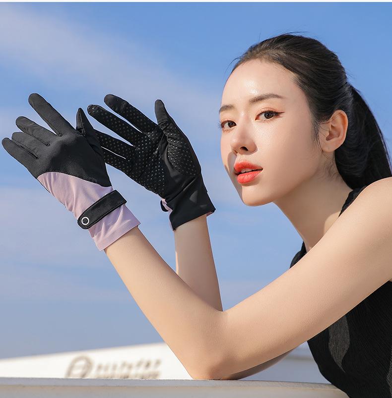 Guantes de protección solar para mujer, para montar en coche eléctrico, de seda de hielo, finos, con protección UV, para exteriores, con dedos abiertos, antideslizantes, para conducir en verano.