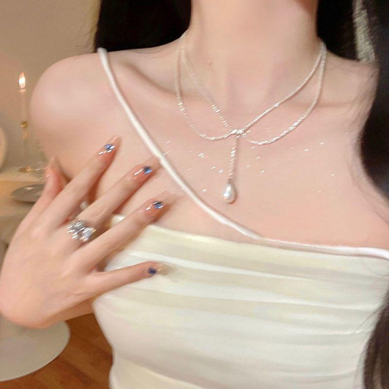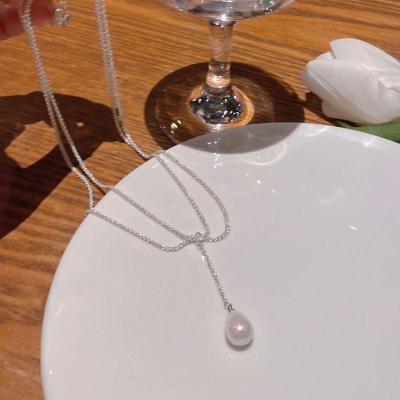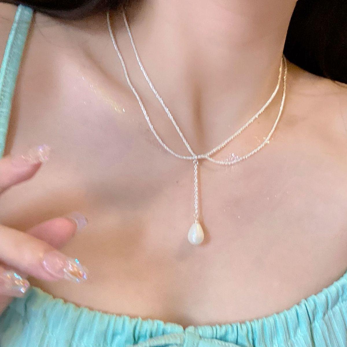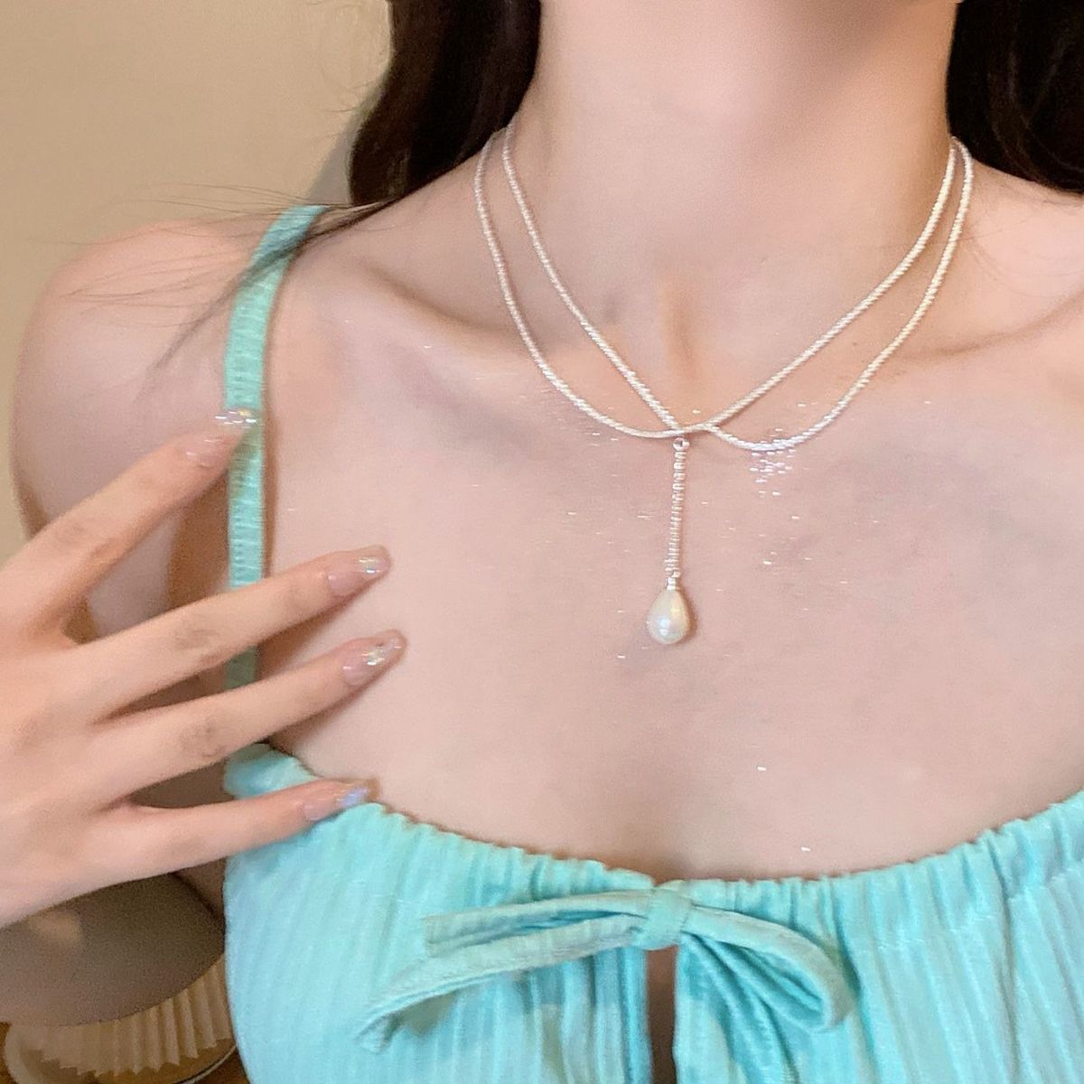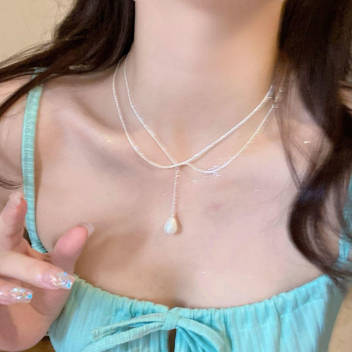 Collar francés retro de perlas con diseño de gota de agua de doble capa, temperamento, cadena para la clavícula, nicho, moda, colgante al por mayor