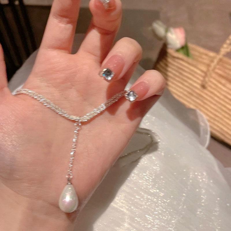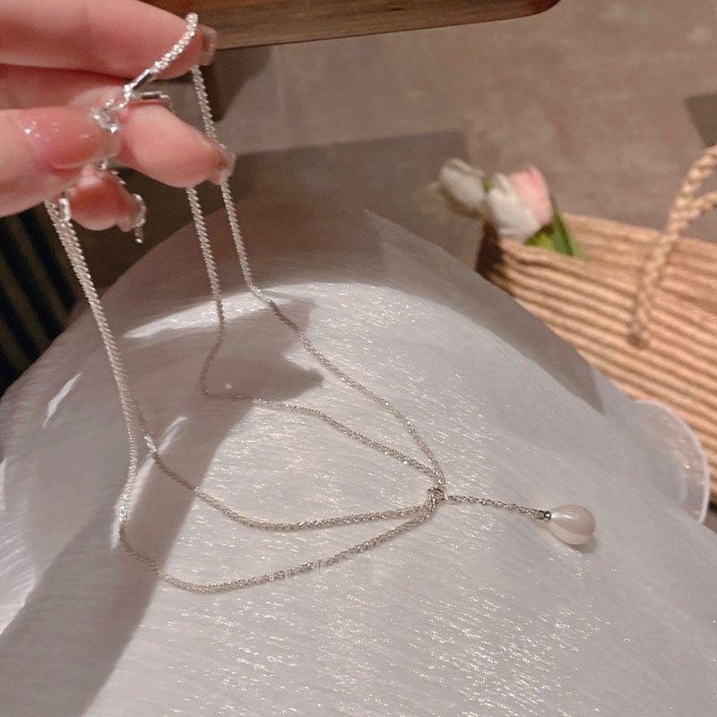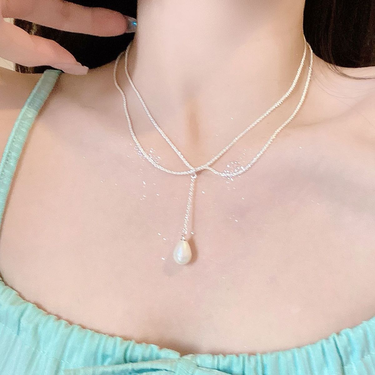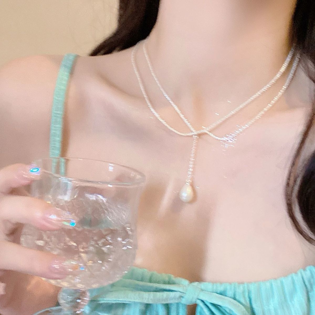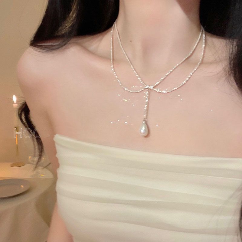 Collar francés retro de perlas con diseño de gota de agua de doble capa, temperamento, cadena para la clavícula, nicho, moda, colgante al por mayor