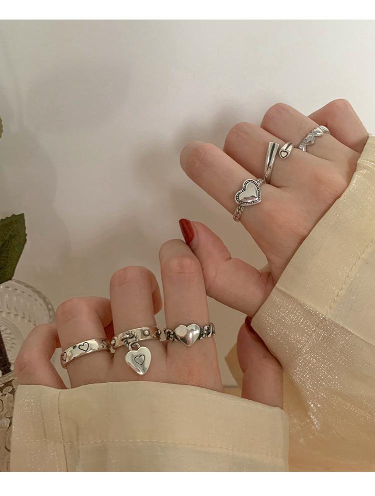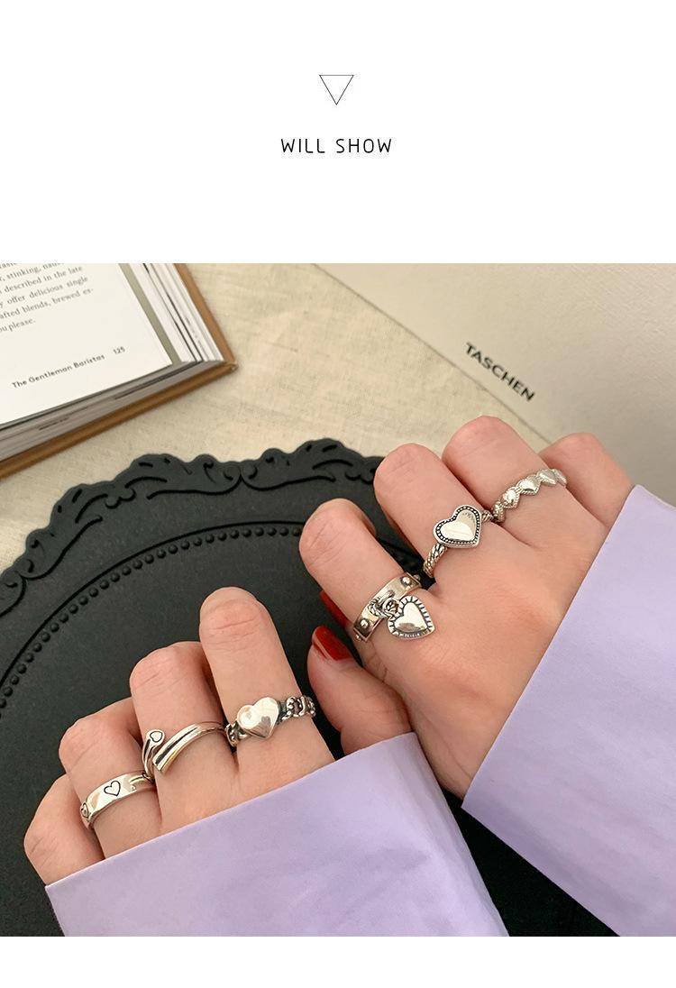 Anillo de dedo índice con combinación de amor para mujer, elegante, retro, estilo hip-hop, sencillo, estilo frío, anillo de moda distintivo.