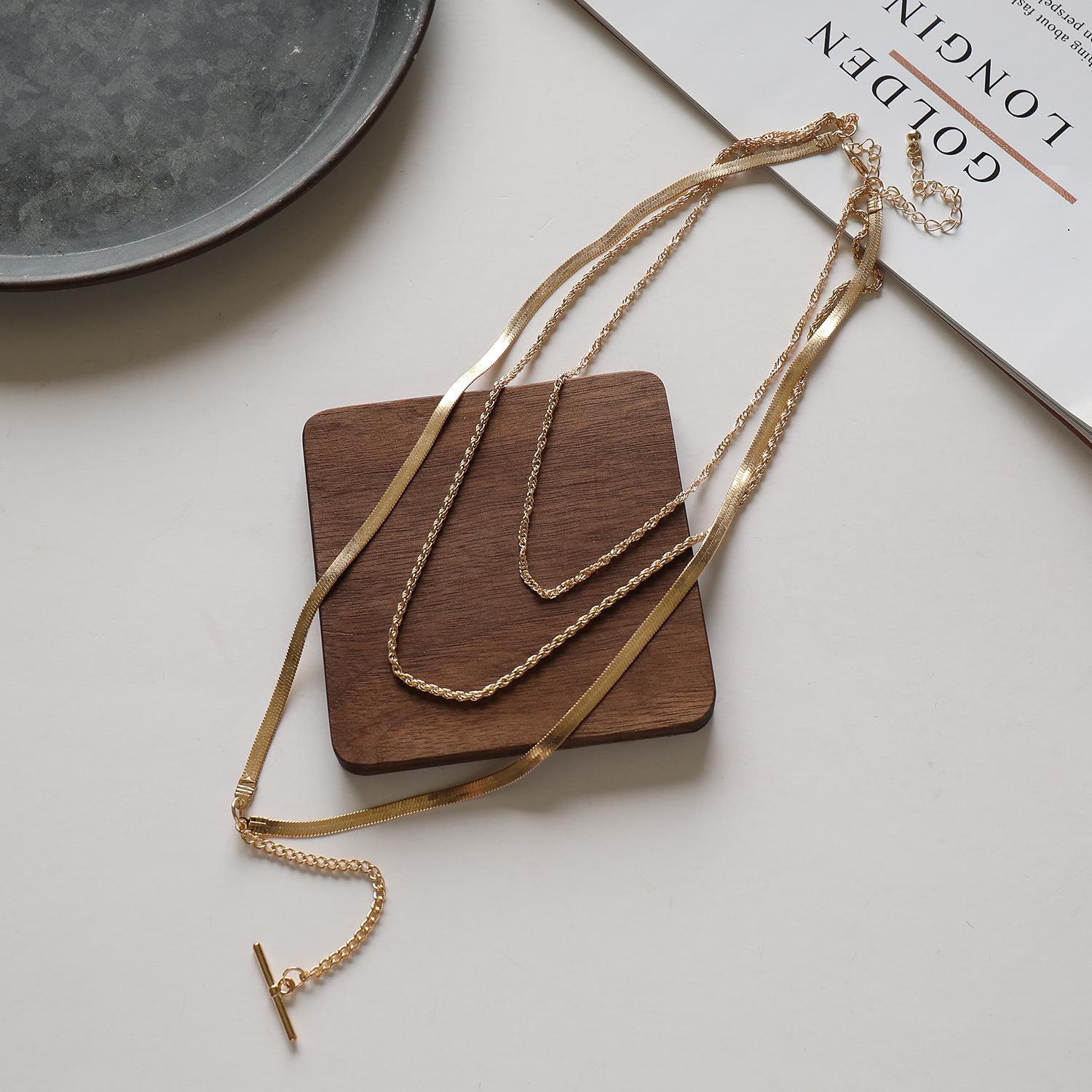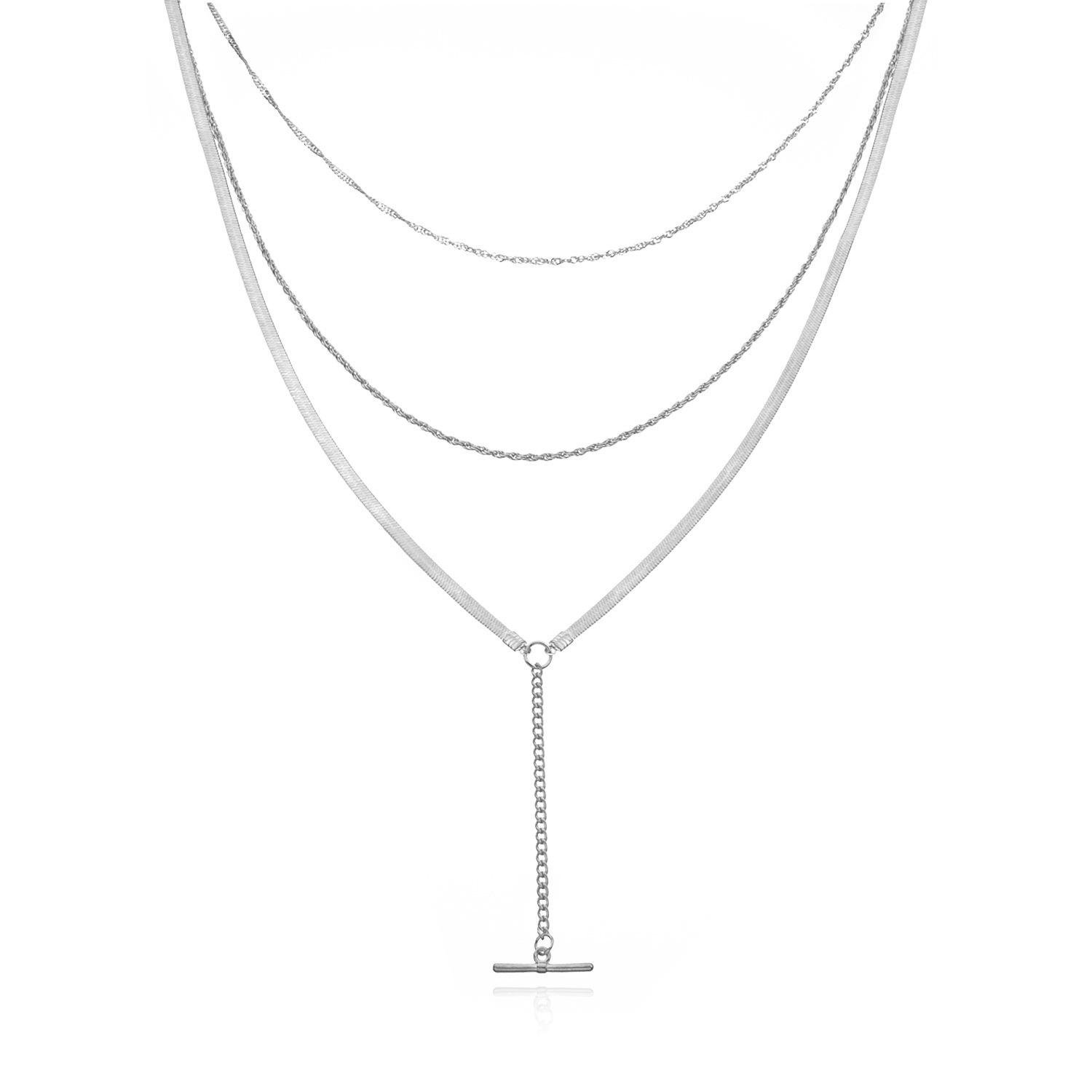 Collar con colgante largo de cadena de hueso de serpiente con diseño transfronterizo europeo y americano, collar multicapa moderno con personalidad de moda para mujer