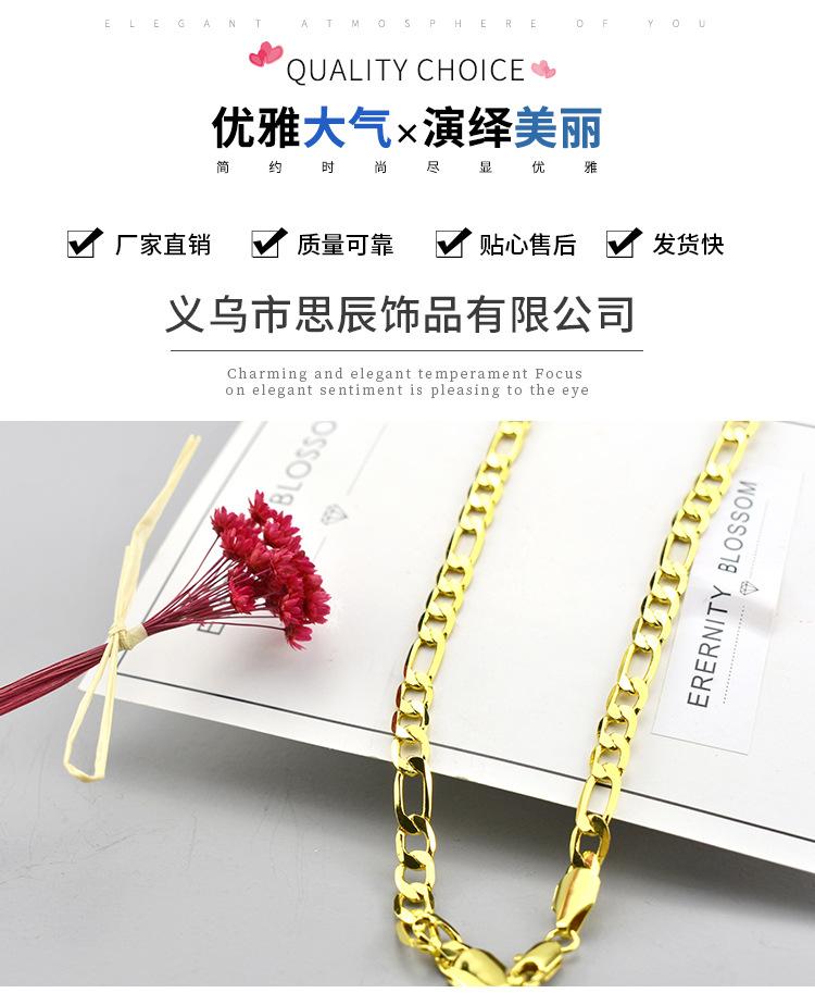 Collar especial de cobre chapado en oro transfronterizo entre Europa y Estados Unidos, collar de hip-hop simple, cadena de acero inoxidable, cadena plana, fabricantes, suministro directo