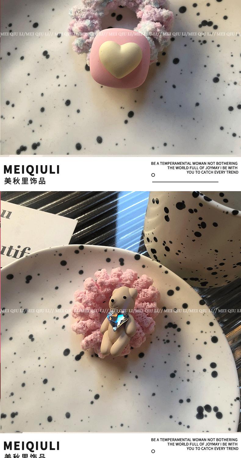 Pastel love hair band, White love hair band, Pink love hair band, Pastel bear hair ring, White Bear Hair ring,...