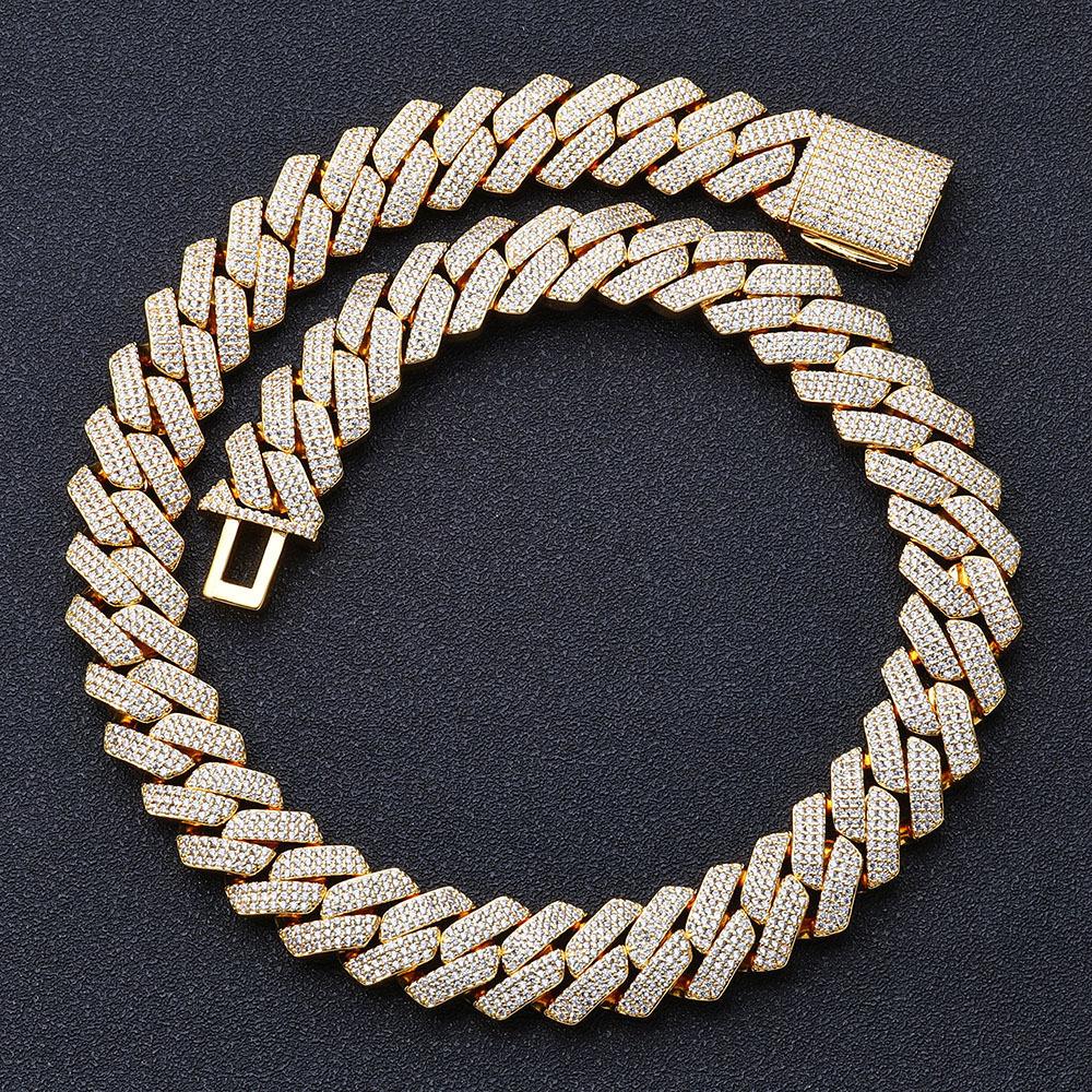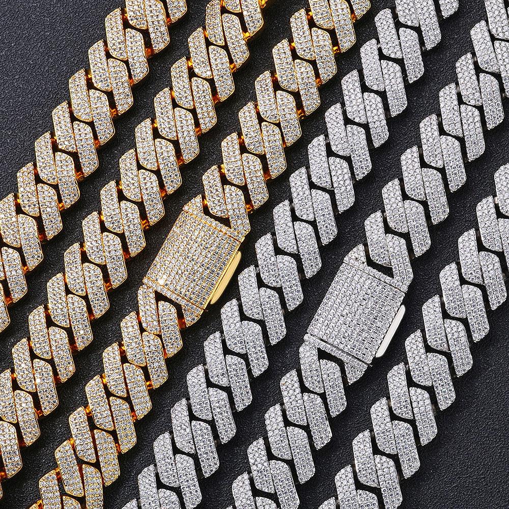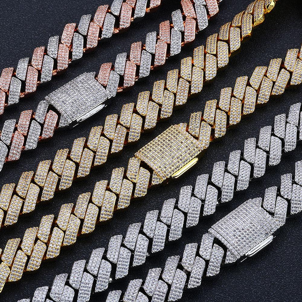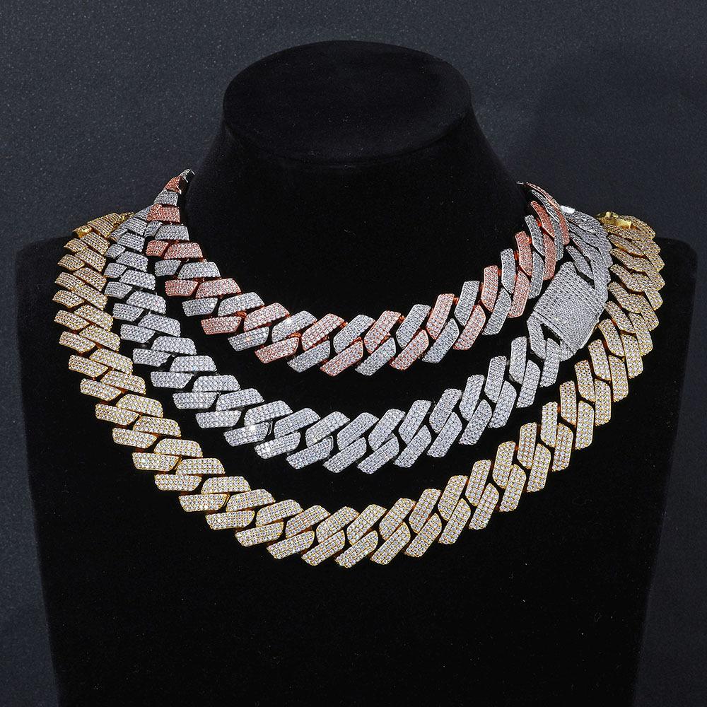 Collar de hip-hop con cadena cubana de diamantes y circonita de tres filas de 20 mm transfronterizos de Europa y Estados Unidos, joyería para hombres, collar de diamantes al por mayor