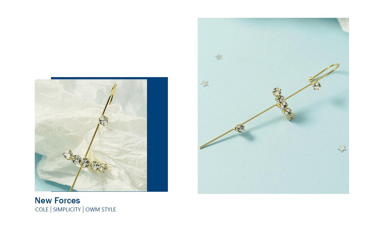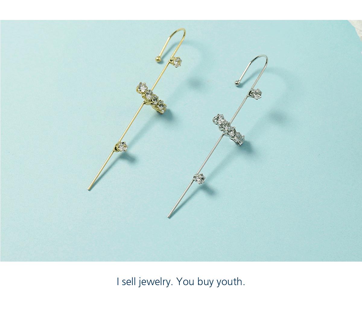 Word zircon ear hanging (gold color), One word zircon ear hanging (White Gold)