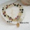 Nueva Pulsera de Turmalina de Doble Círculo para Mujer Exquisita Moda Micro-incrustada Candado de Larga Vida Pulsera Elegante Simple Personalizada Pulsera Vintage